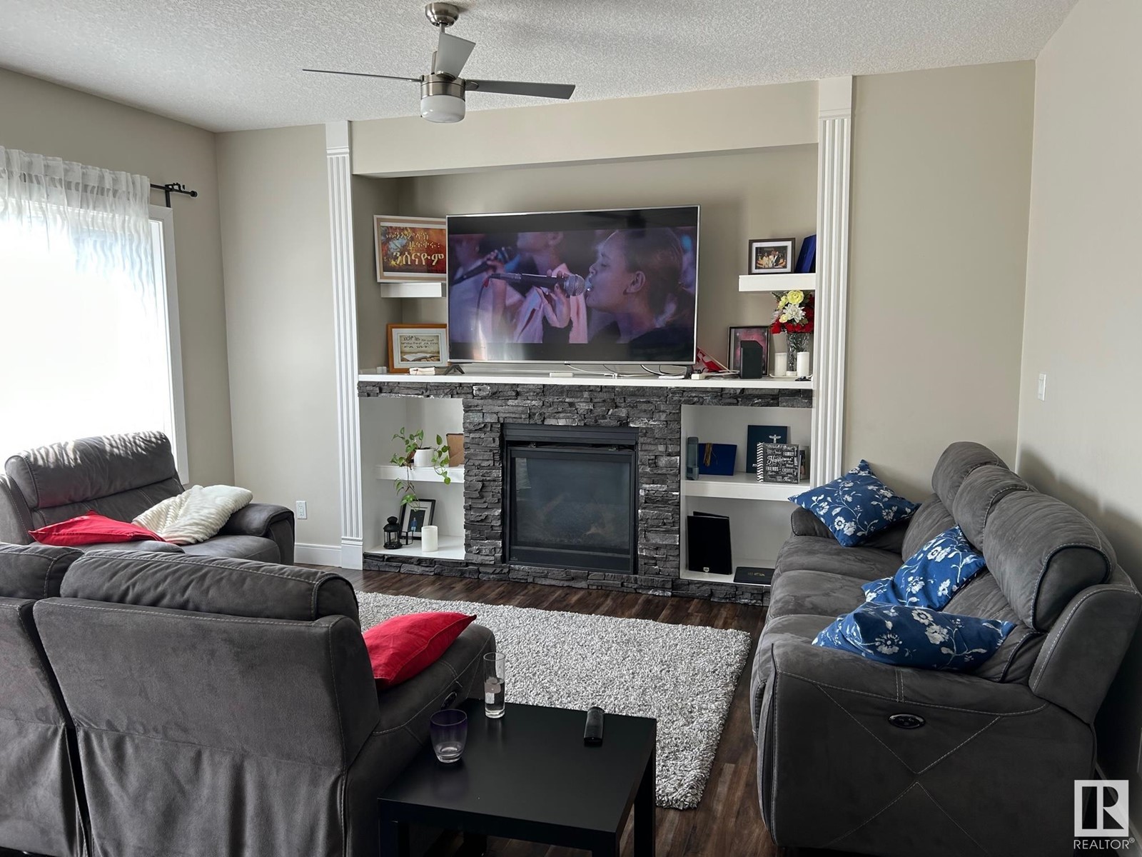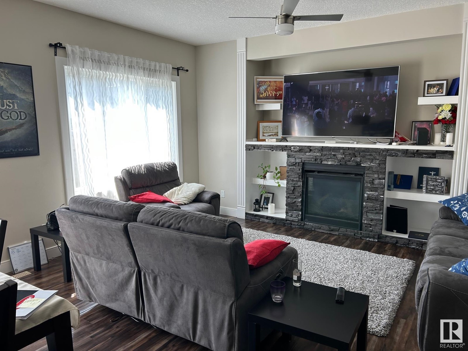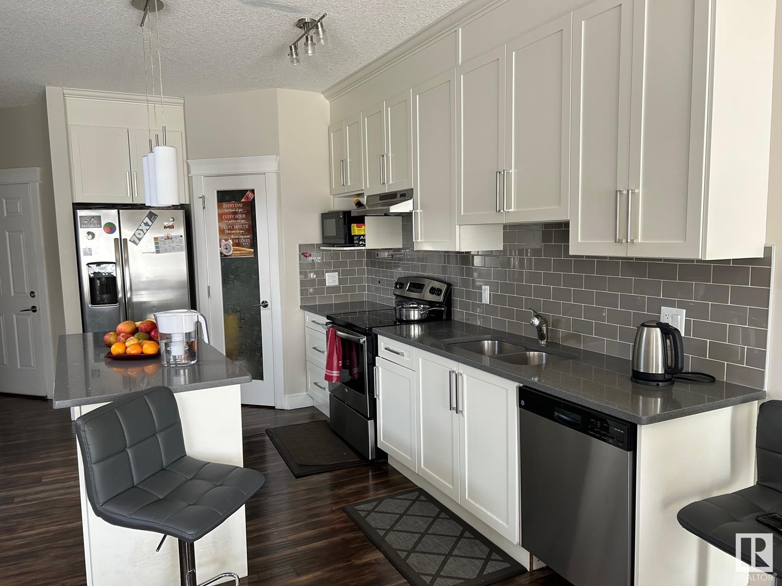 Pride of ownership in this 1588 Sq. ft. of living space in this 2 storey half duplex main level features open concept, modern kitchen, quartz countertops, and island. Appliances included. Living room with fireplace and large eating area with patio doors leading to a deck overlooking back yard. plus 2 piece bath on main level. 2nd level large master bedroom with 4 piece ensuite, plus another 4 piece bathroom and 2 more bedrooms plus bonus room, and laundry .Basement features family room ,bedroom, 3 piece bathroom ,plus laundry. kitchen area only need kitchen cabinets installed . Seperate side entrance to basement. Tandem attached garage entrance from main level. (id:22211)