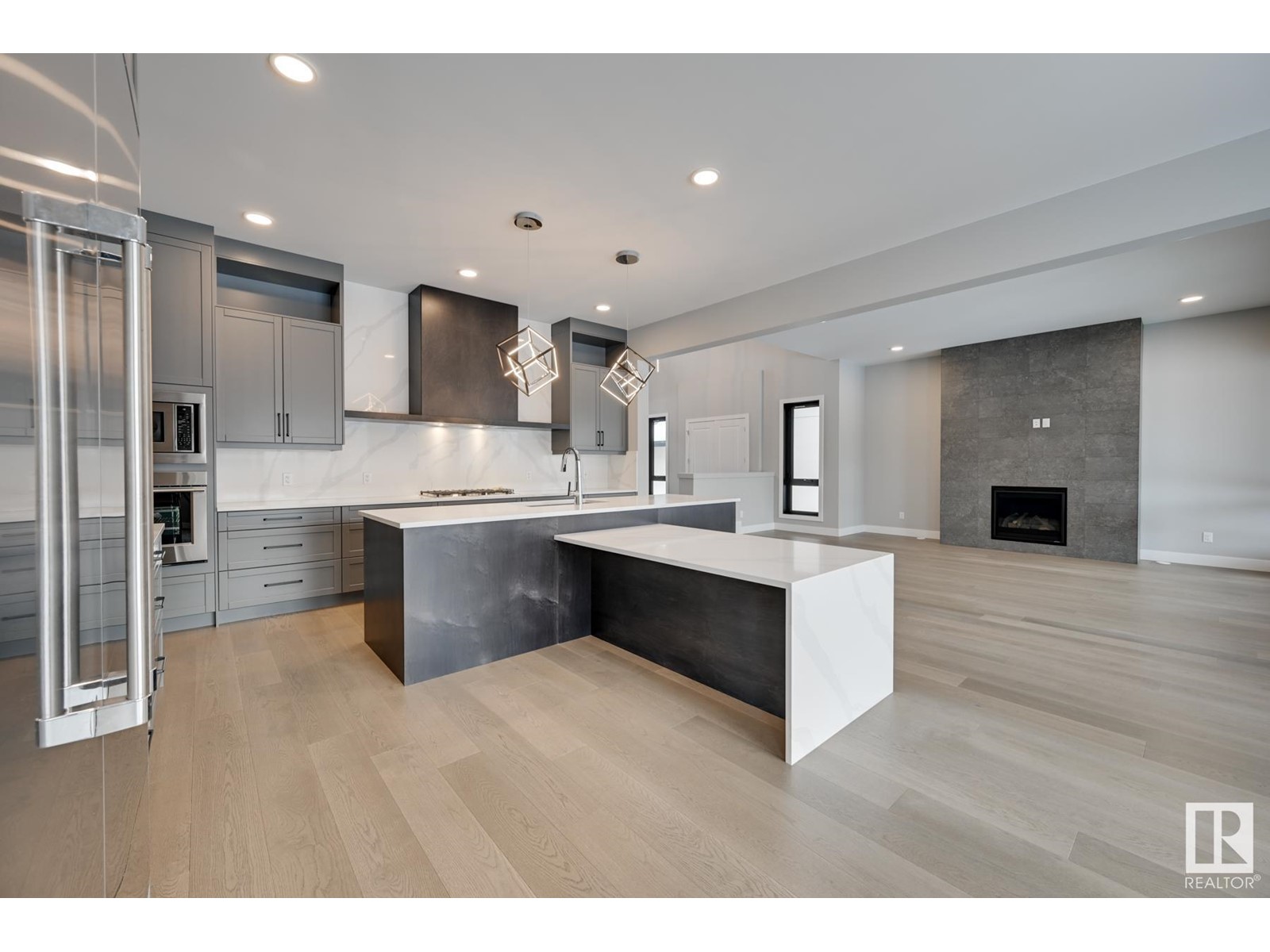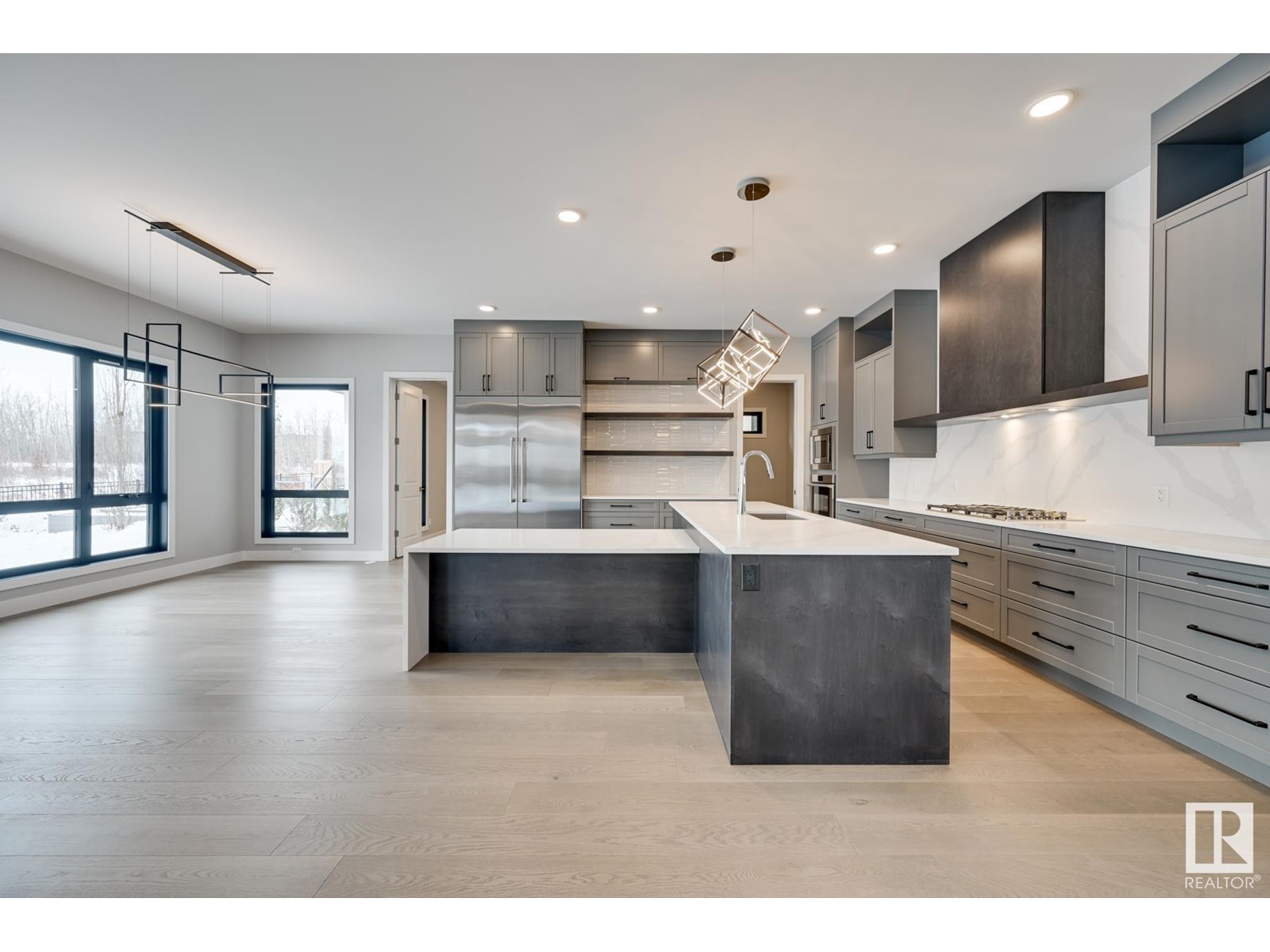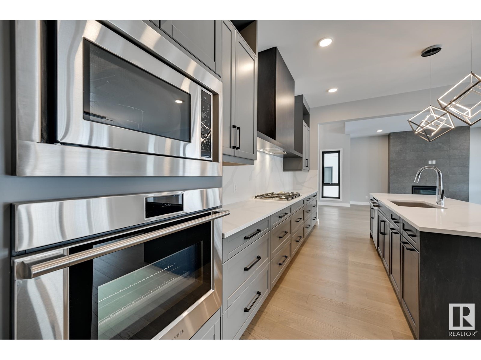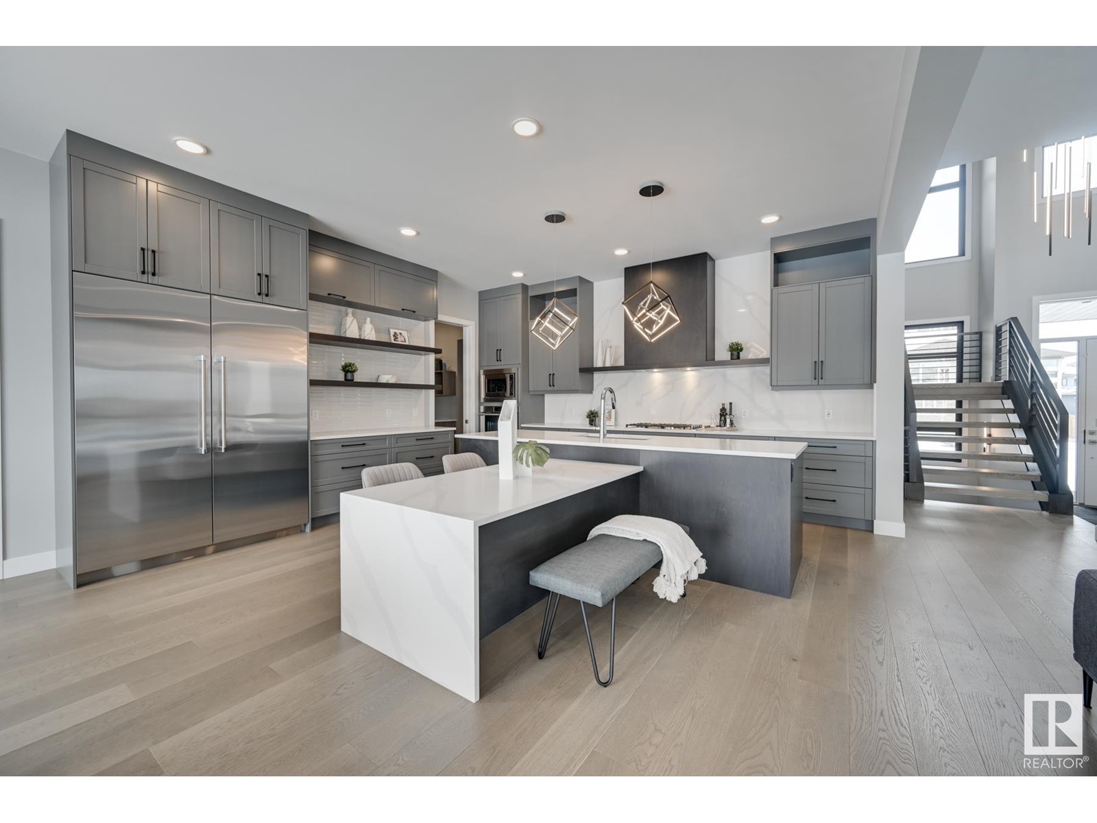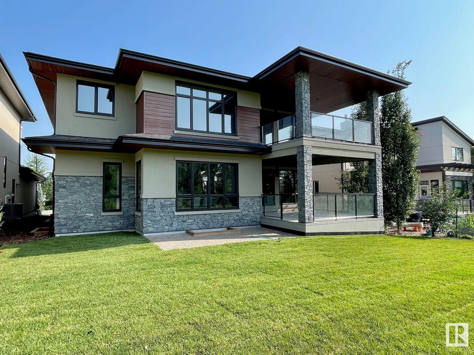 Absolutely stunning contemporary home backing south to a beautiful ravine w/no pathway for complete privacy. BRAND NEW, just completed custom 3733 sf 4 bedrm 2 sty. 20/10 & 9' ceilings, O/S windows, horizontal black metal railing, unique modern black LED fixtures, designer tiles & Engineered wide plank H/W. Curated pieces by INGEVA Design Studio truly make a statement yet are practical for every day family living. The Chefs kitchen is adorned w/sleek matt Grey cabinetry & upgraded quartz counters. Fisher Paykel S/S appliances (side by side fridge/freezer/gas cooktop). 4 upper bedrms w/access to their own bathrm. Primary suite w/a FP, dream ensuite & massive W/I closet w/island & access to the laundry rm. Upper & main level covered balconies. O/S custom window wells =extra light in the F/Fin bsmt w/2 bedrms, full bath, rec rm w/wetbar & exercise rm. 42X23.5 TRIPLE garage w/drains can accommodate car lifts. K2 Stone, acrylic stucco & long board accents. ENERGY EFFICIENT. A/C. Steps to K-9/park/pond/trails (id:22211)