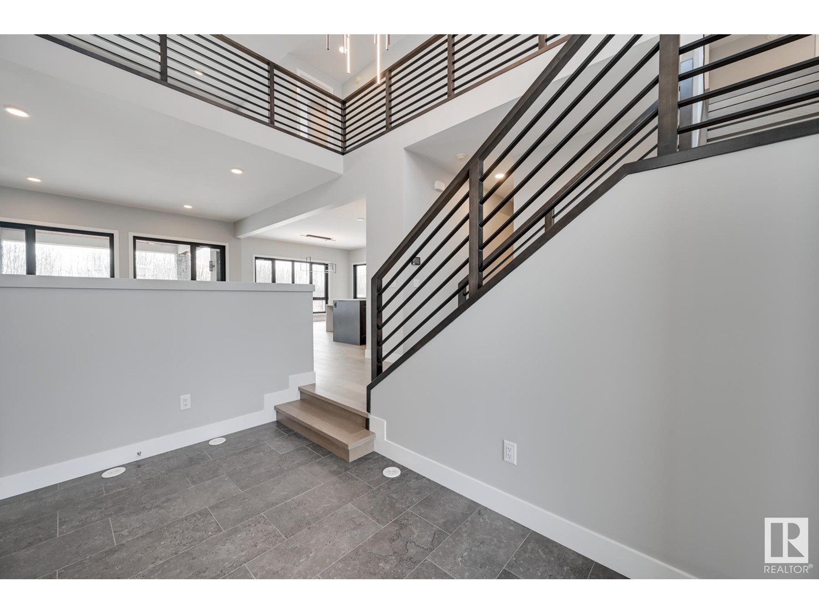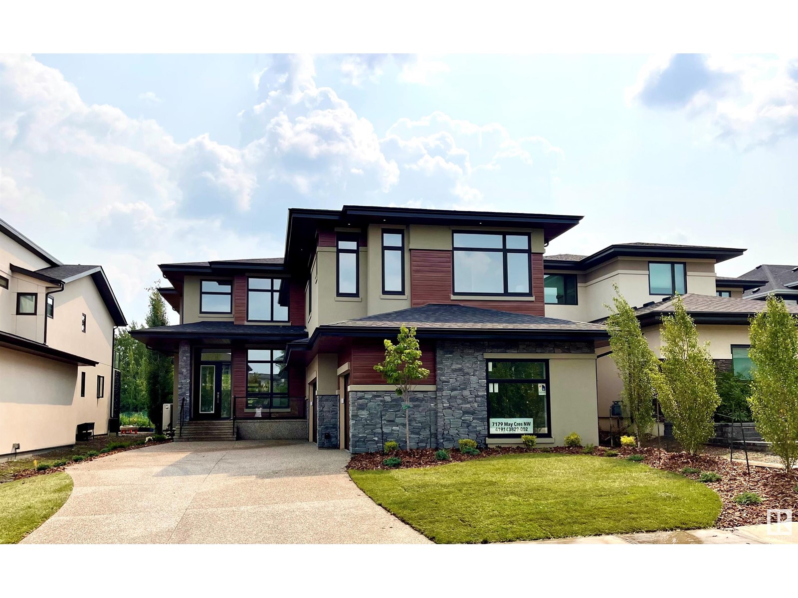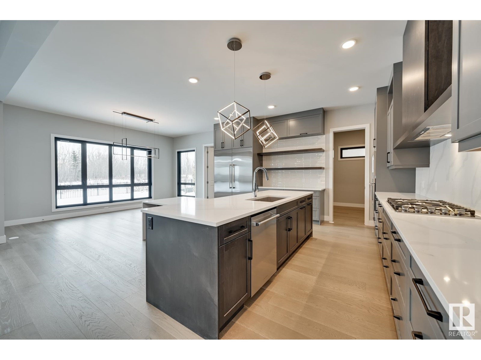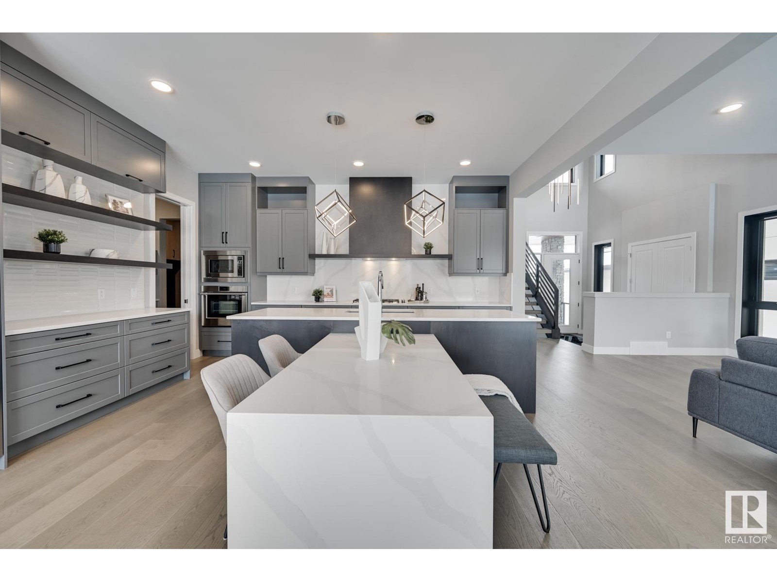 Absolutely stunning contemporary home backing south to a beautiful ravine w/no pathway for complete privacy. BRAND NEW, just completed custom 3733 sf 4 bedrm 2 sty. 20/10 & 9' ceilings, O/S windows, horizontal black metal railing, unique modern black LED fixtures, designer tiles & Engineered wide plank H/W. Curated pieces by INGEVA Design Studio truly make a statement yet are practical for every day family living. The Chefs kitchen is adorned w/sleek matt Grey cabinetry & upgraded quartz counters. Fisher Paykel S/S appliances (side by side fridge/freezer/gas cooktop). 4 upper bedrms w/access to their own bathrm. Primary suite w/a FP, dream ensuite & massive W/I closet w/island & access to the laundry rm. Upper & main level covered balconies. O/S custom window wells =extra light in the F/Fin bsmt w/2 bedrms, full bath, rec rm w/wetbar & exercise rm. 42X23.5 TRIPLE garage w/drains can accommodate car lifts. K2 Stone, acrylic stucco & long board accents. ENERGY EFFICIENT. A/C. Steps to K-9/park/pond/trails (id:22211)