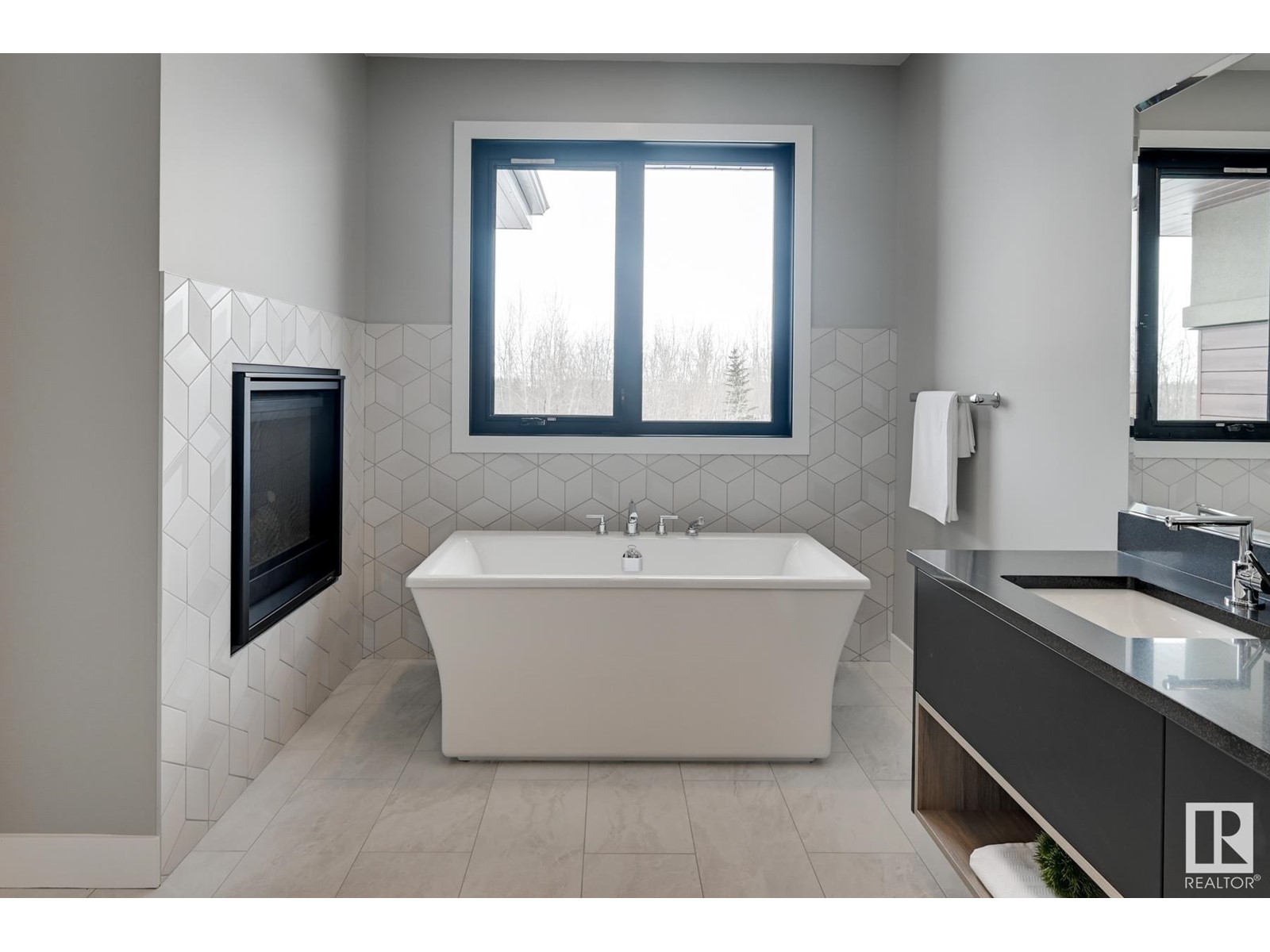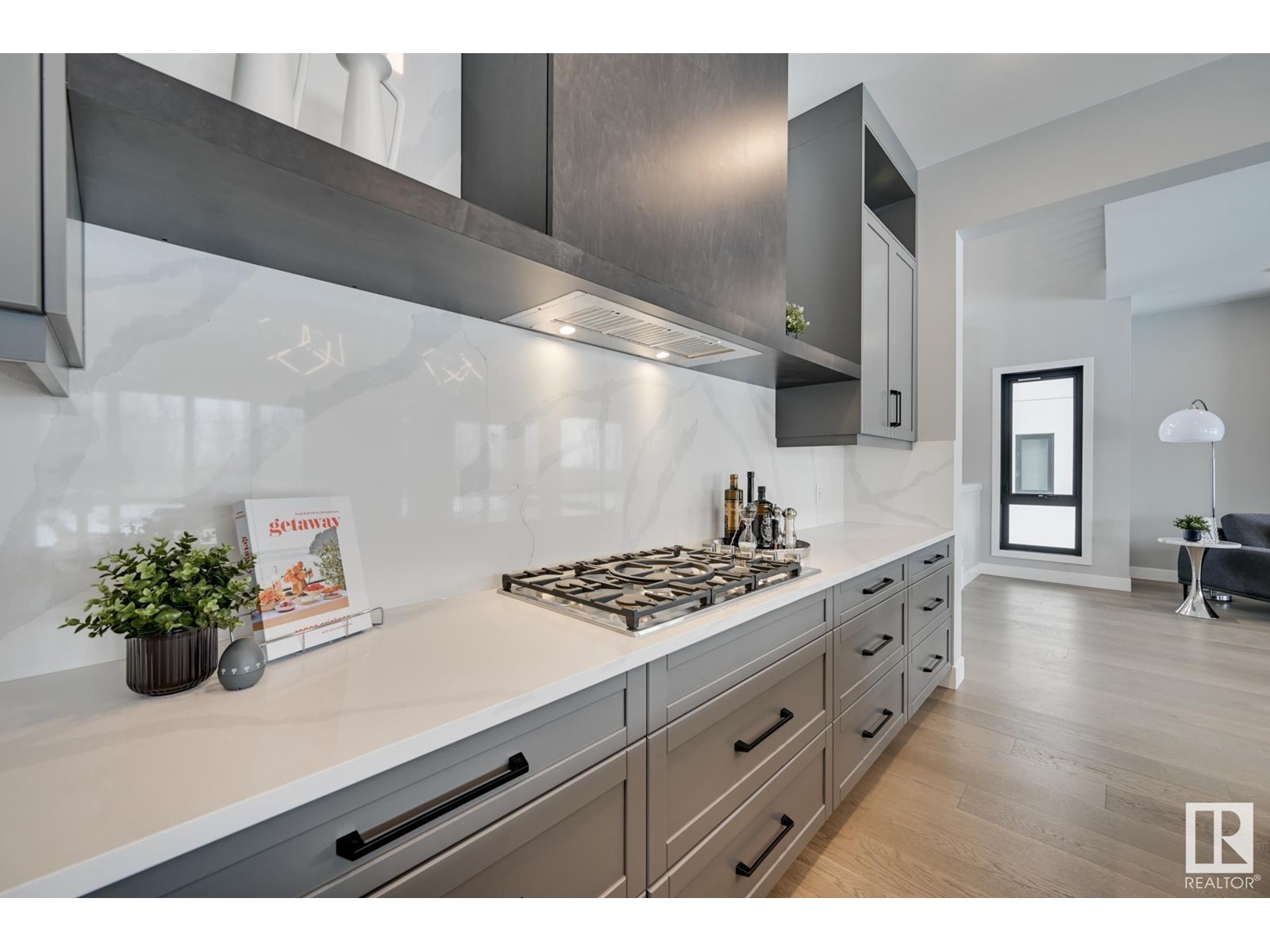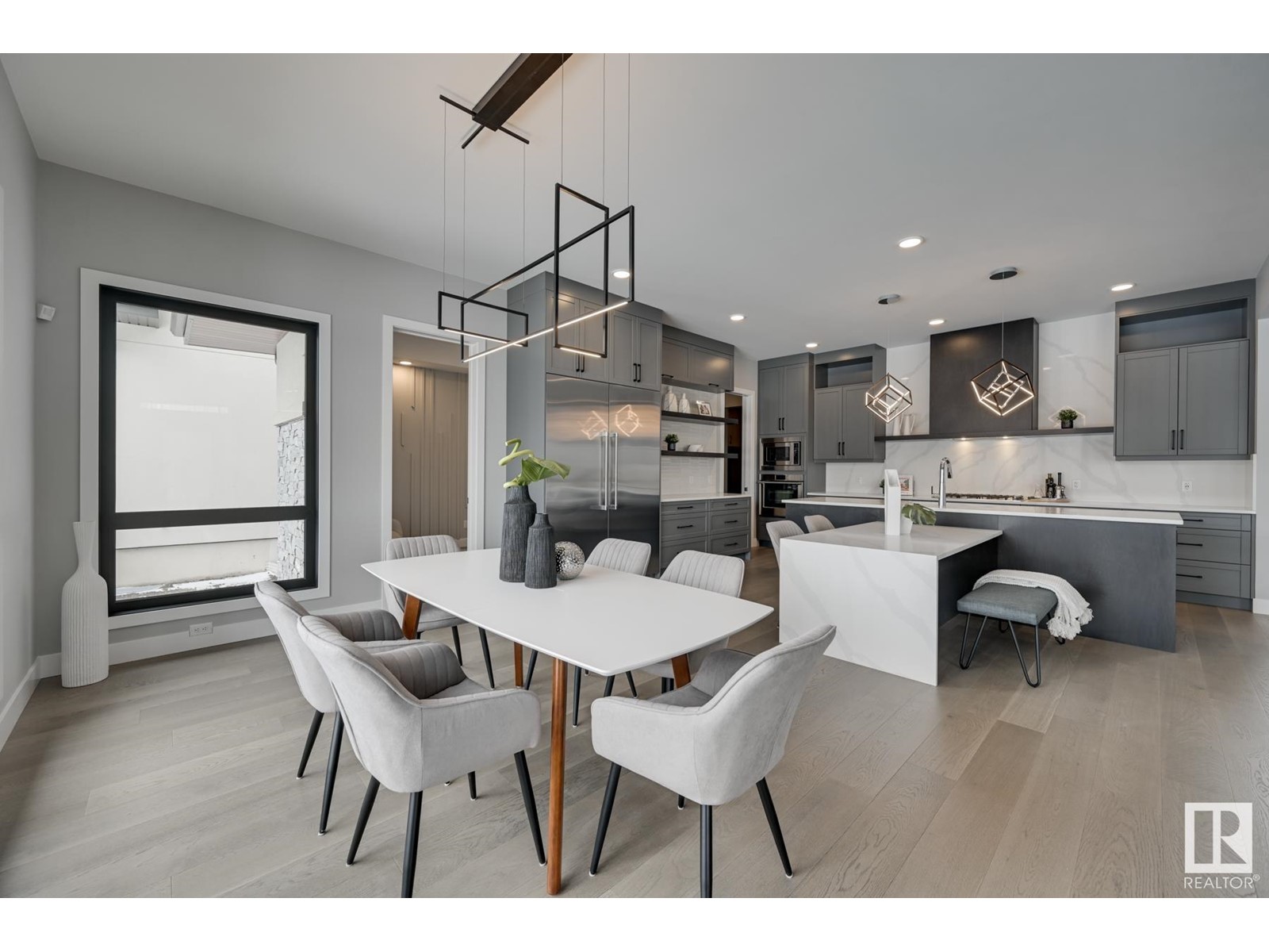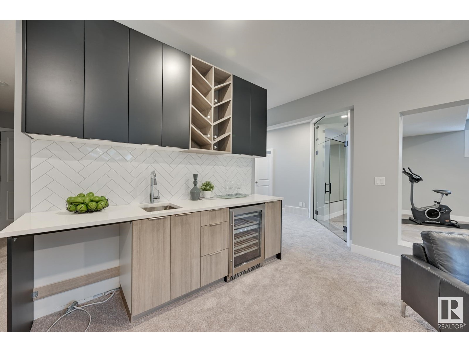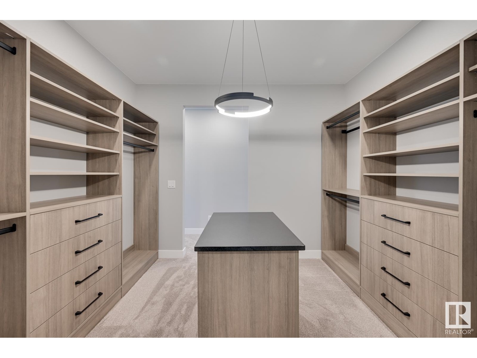 Absolutely stunning contemporary home backing south to a beautiful ravine w/no pathway for complete privacy. BRAND NEW, just completed custom 3733 sf 4 bedrm 2 sty. 20/10 & 9' ceilings, O/S windows, horizontal black metal railing, unique modern black LED fixtures, designer tiles & Engineered wide plank H/W. Curated pieces by INGEVA Design Studio truly make a statement yet are practical for every day family living. The Chefs kitchen is adorned w/sleek matt Grey cabinetry & upgraded quartz counters. Fisher Paykel S/S appliances (side by side fridge/freezer/gas cooktop). 4 upper bedrms w/access to their own bathrm. Primary suite w/a FP, dream ensuite & massive W/I closet w/island & access to the laundry rm. Upper & main level covered balconies. O/S custom window wells =extra light in the F/Fin bsmt w/2 bedrms, full bath, rec rm w/wetbar & exercise rm. 42X23.5 TRIPLE garage w/drains can accommodate car lifts. K2 Stone, acrylic stucco & long board accents. ENERGY EFFICIENT. A/C. Steps to K-9/park/pond/trails (id:22211)