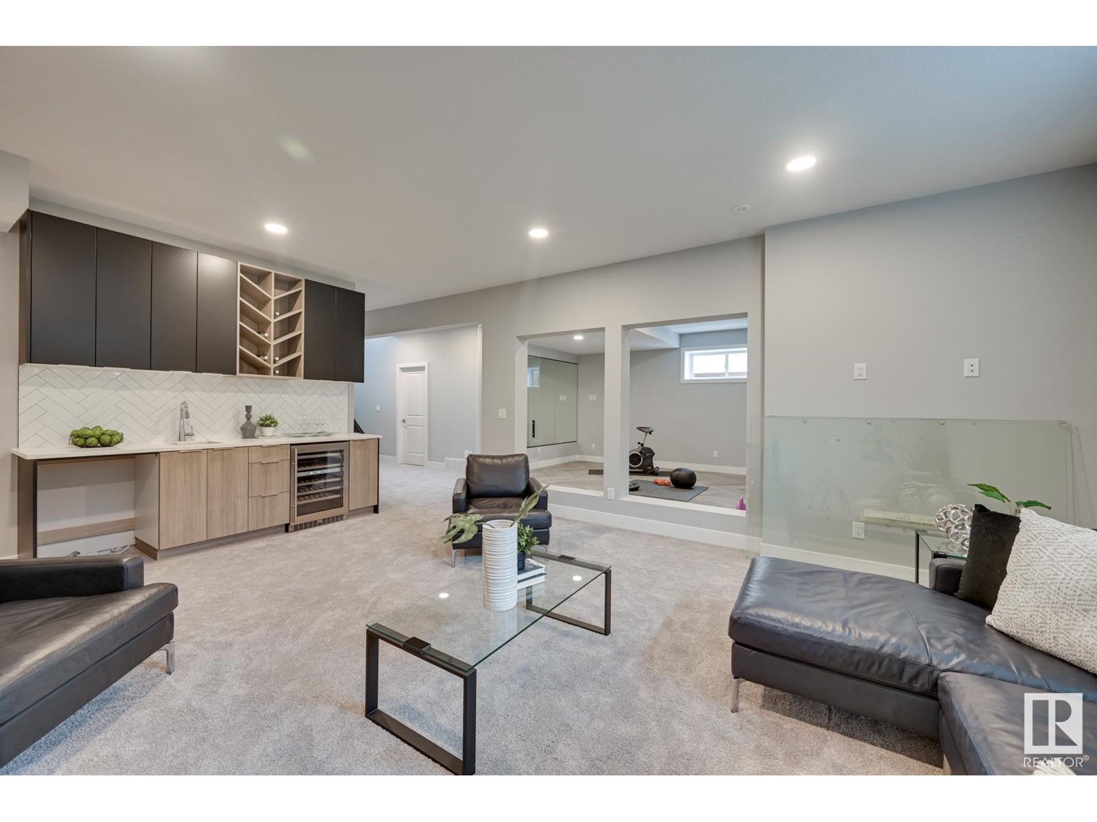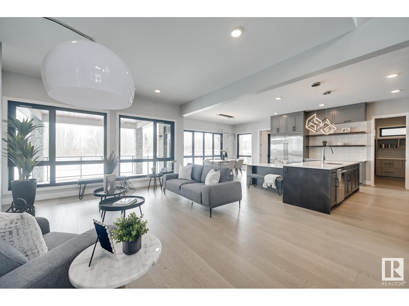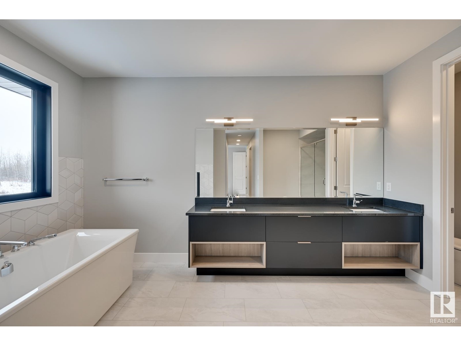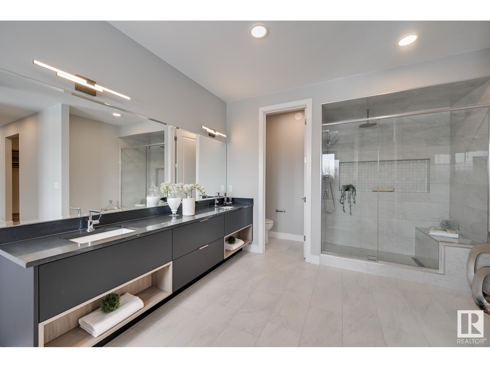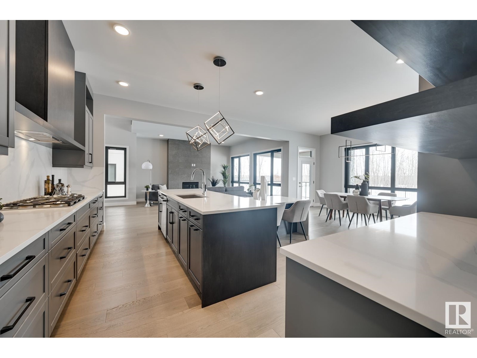 Absolutely stunning contemporary home backing south to a beautiful ravine w/no pathway for complete privacy. BRAND NEW, just completed custom 3733 sf 4 bedrm 2 sty. 20/10 & 9' ceilings, O/S windows, horizontal black metal railing, unique modern black LED fixtures, designer tiles & Engineered wide plank H/W. Curated pieces by INGEVA Design Studio truly make a statement yet are practical for every day family living. The Chefs kitchen is adorned w/sleek matt Grey cabinetry & upgraded quartz counters. Fisher Paykel S/S appliances (side by side fridge/freezer/gas cooktop). 4 upper bedrms w/access to their own bathrm. Primary suite w/a FP, dream ensuite & massive W/I closet w/island & access to the laundry rm. Upper & main level covered balconies. O/S custom window wells =extra light in the F/Fin bsmt w/2 bedrms, full bath, rec rm w/wetbar & exercise rm. 42X23.5 TRIPLE garage w/drains can accommodate car lifts. K2 Stone, acrylic stucco & long board accents. ENERGY EFFICIENT. A/C. Steps to K-9/park/pond/trails (id:22211)