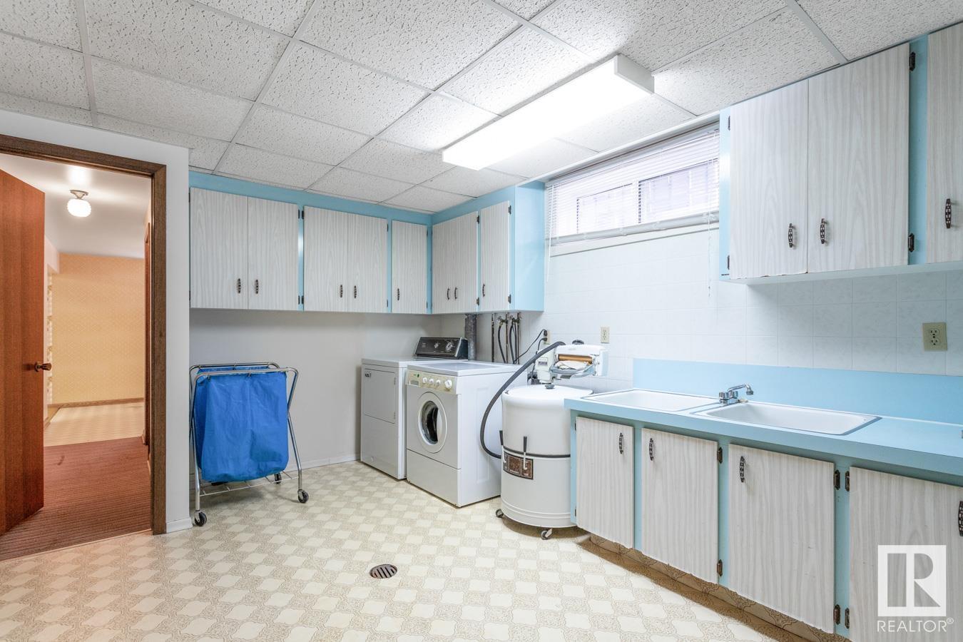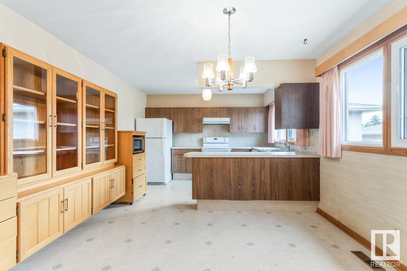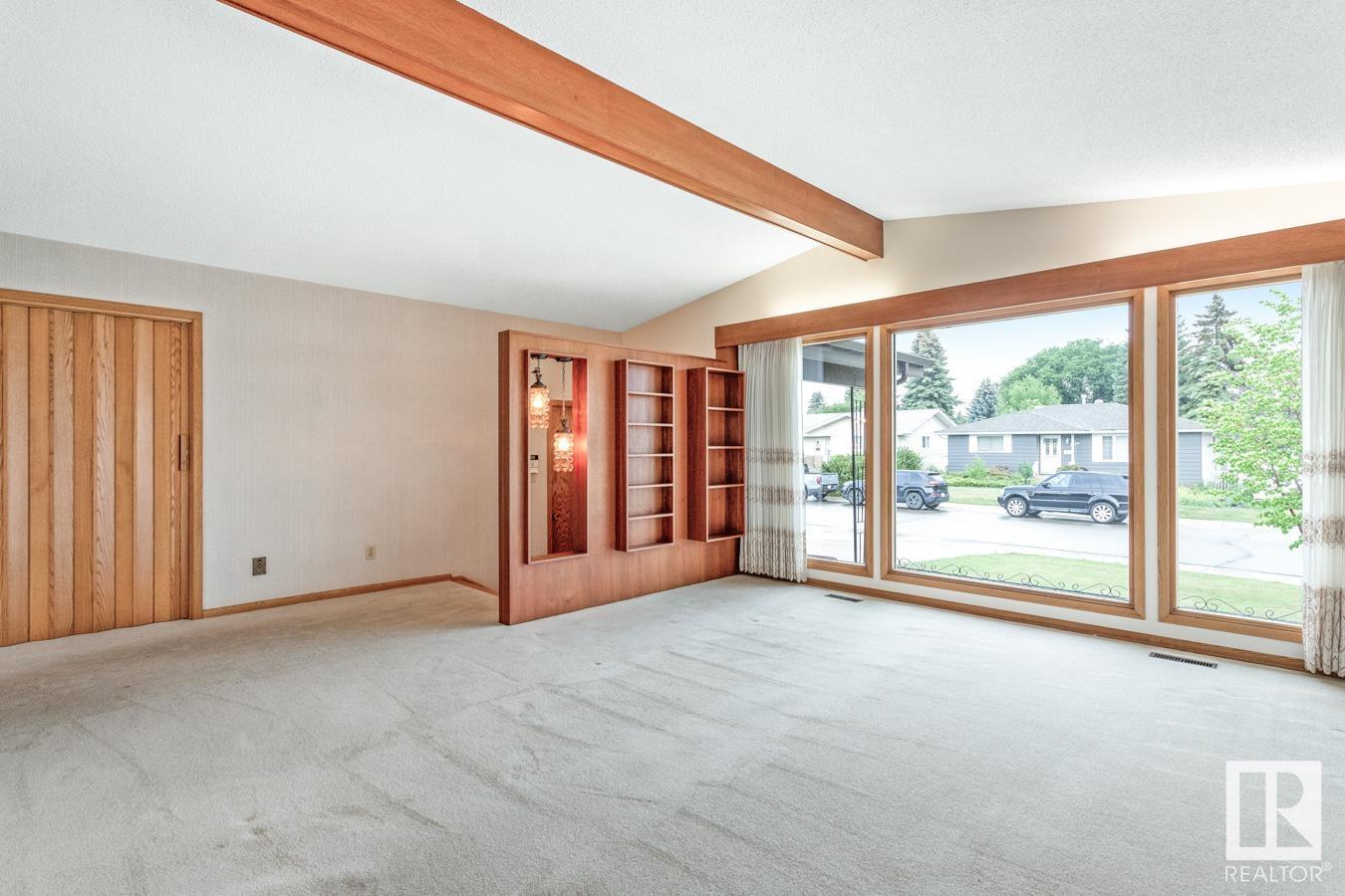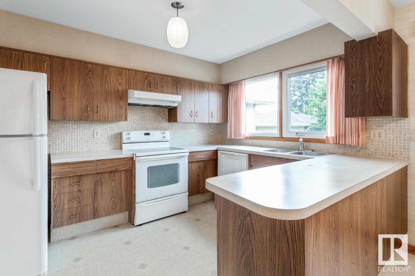 Spacious original owner home with over 1399 sq/ft of developed living space above grade with an oversized double attached front drive garage as well! This open beam bungalow features a inviting living room overlooking the quiet street, super sized country kitchen with views of the south back yard & a great dining space. The primary bedroom offers ample closets space & a 2 piece en-suite bath. There are 2 more well sized bedrooms & a 4-piece bath rounding off the main floor. The full developed basement with separate furnace offers a 2nd kitchen (nanny or care giver suite?) 3 piece bath & a Den, large family room & a huge laundry room. The area under the garage is fully open & is ideal for storage. The property is fully fenced, landscaped & has a concrete patio. Recent improvements include new shingles in 2023, 2 x furnaces 2005, epoxy floor in garage & all windows with energy efficient PVC. Ideal location within the community walking distance to schools, shopping, transit, parks & so much more! (id:22211)