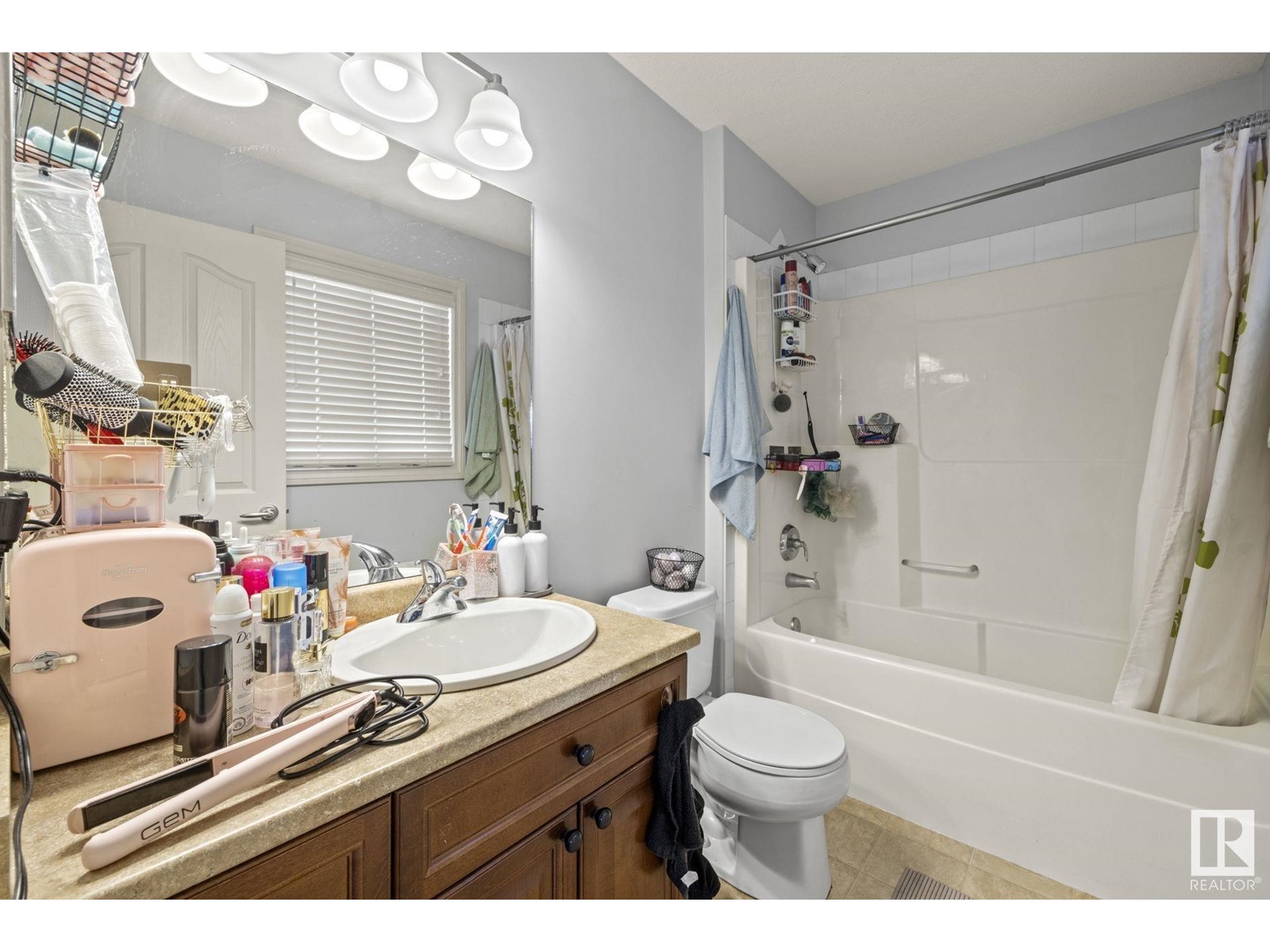 The perfect match of CONVENIENCE, COMFORT and AFFORDABILITY! At 1384.40 sqft / 128.61 m2, this 3 BED, 2.5 BATH, 2 Storey, Half Duplex with a DOUBLE ATTACHED GARAGE in ELLERSLIE is ready for you just in time for summer! Recently painted, this great home include open living from the Living Room to your Kitchen and Dining room, huge windows throughout, Living Room feat. 9ft ceilings, corner gas fireplace with tile surround and windows overlooking South facing backyard. Eating bar with dual sinks, pantry with easy access to from the garage for offloading groceries. 3 Bedroom upstairs with 2 full baths, Laundry and Linen closet. Master feat. His & Her Closets, Ensuite and lots of space for desk or wardrobe set. Full Basement is unfinished awaiting for your personal touch. Out back, deck is complete with Gas line hookup for BBQ. Take a look today and get ready to move right in! (id:22211)