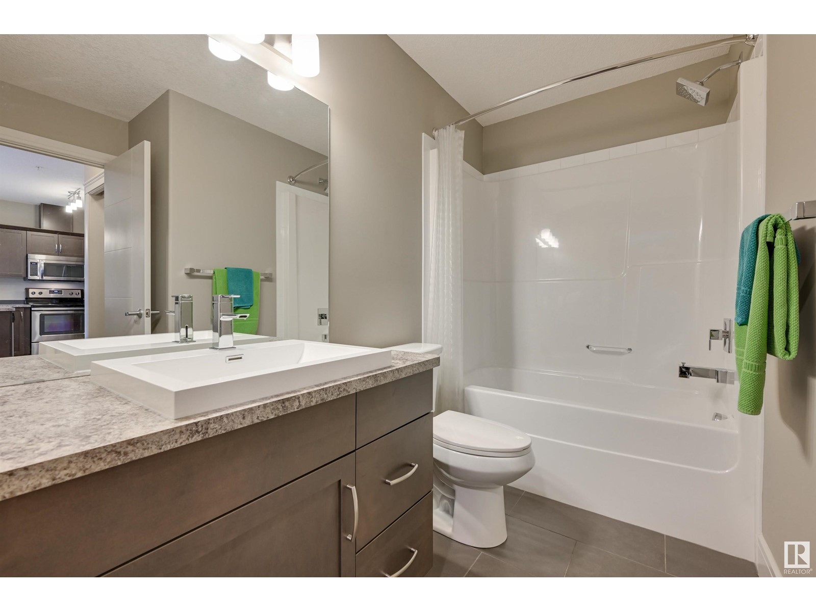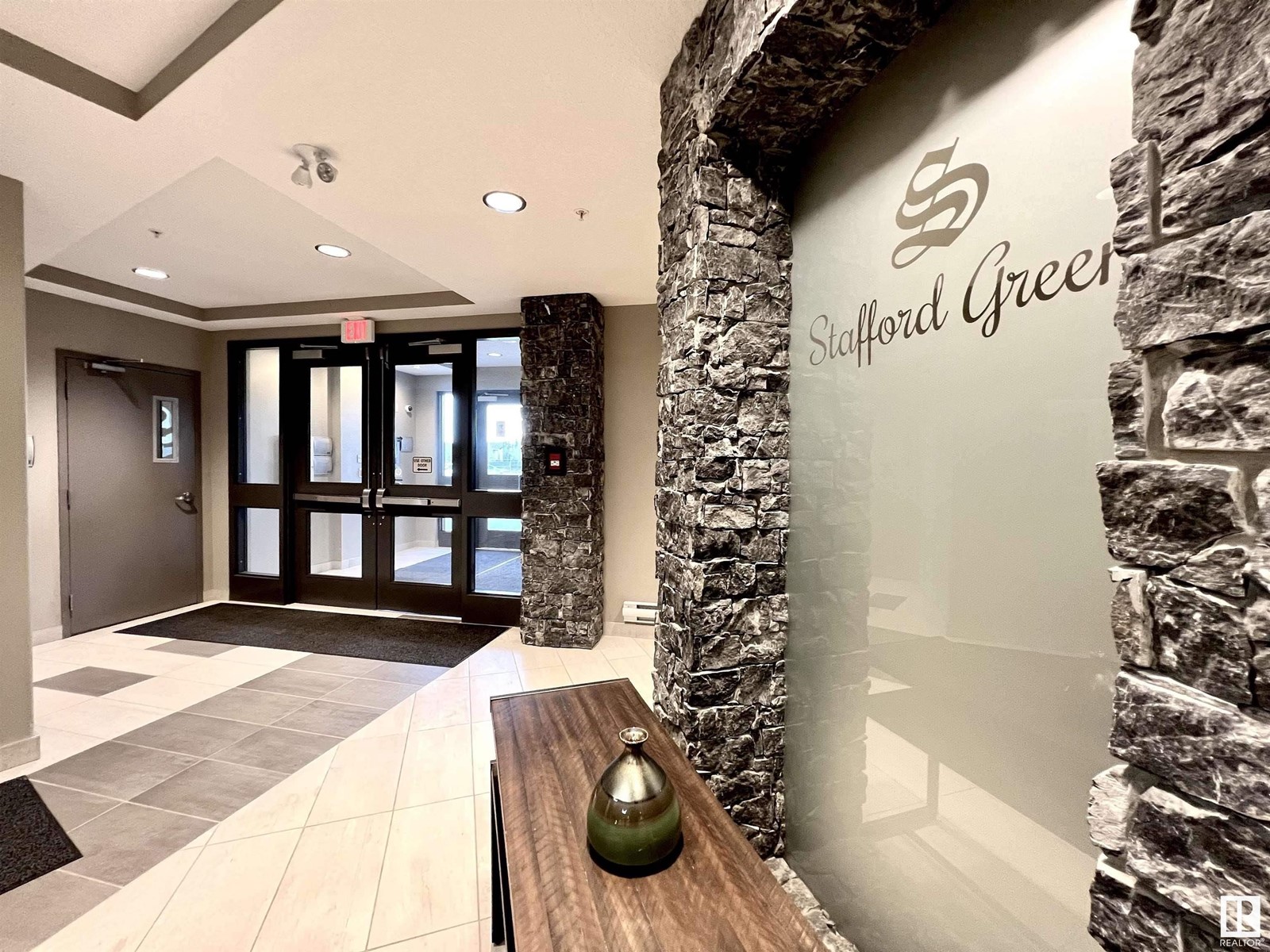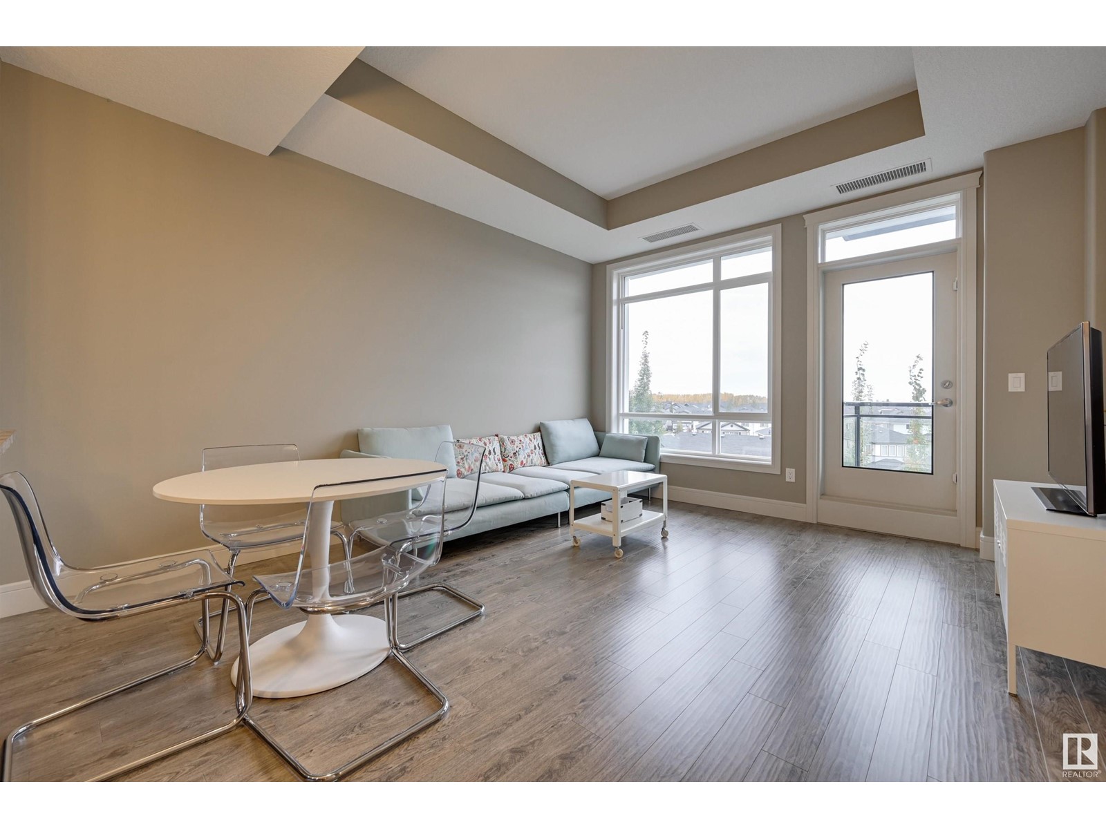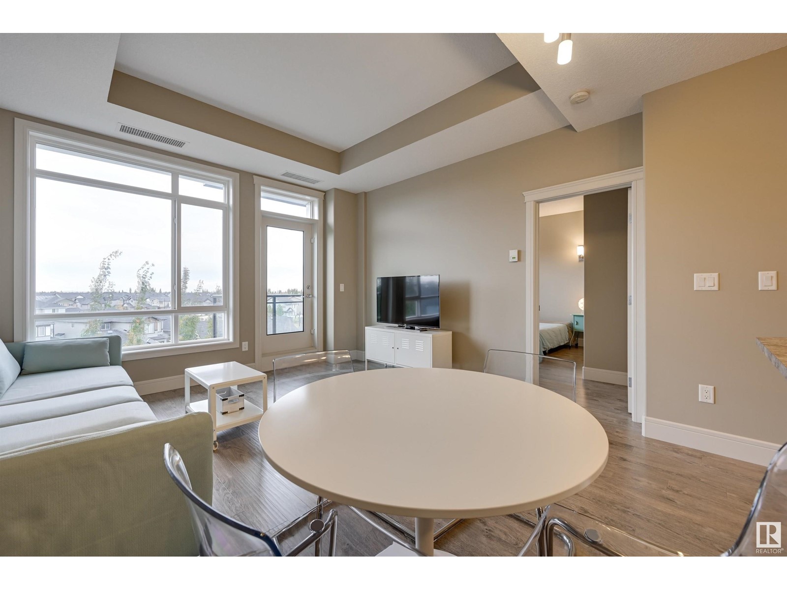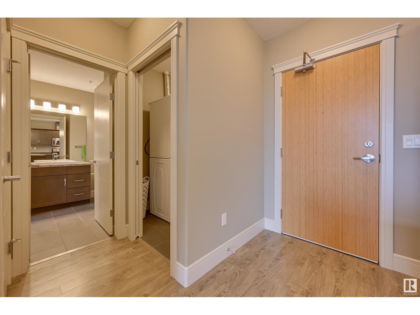 Concrete and Steel with superb style and function in this premium building. Enjoy the higher ceilings and windows in this top floor one bedroom executive home with much to offer including excellent sound proofing. Close to all amenities, with Central Air Conditioning, open plan, in-suite Laundry and plenty of storage, Flooring is durable Laminate throughout with the exception of Tile in the bath. The spacious kitchen offers tall Cabinets, plenty of counter space, and SS Appliances. The abundance of large windows throughout ensures plenty of natural light. The Living room has access to the Balcony which features a Gas Hook up and Tempered Glass Railings. Enjoy the quiet view over the neighborhood, trees, and in the distance the evening illumination of downtown. Topping this is secure underground heated parking. Very reasonable Condo Fees at $334.28. Granville Community provides parks, ponds, schools, walking trails, grocery stores, Costco, and easy access to Henday & Whitemud Drive. Excellent choice. (id:22211)