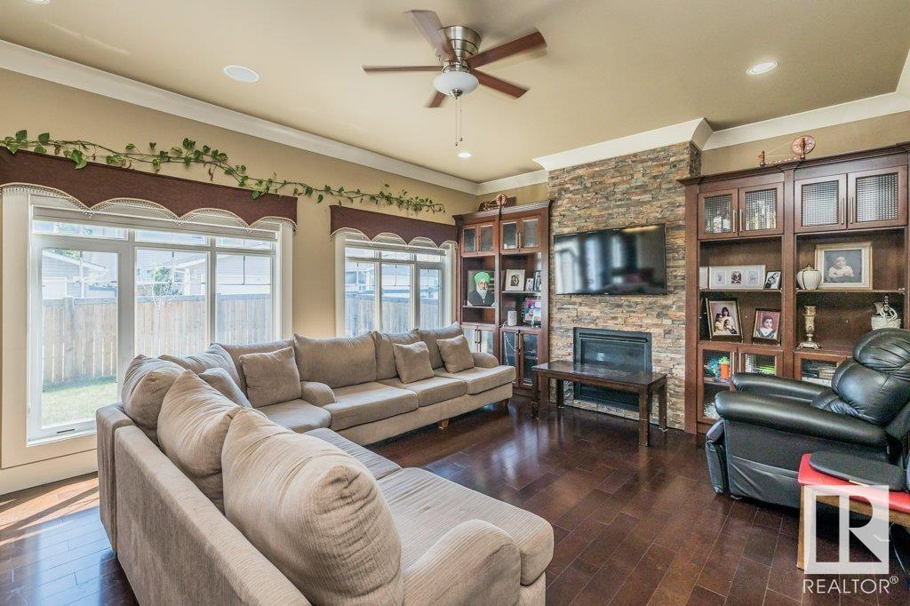 Welcome to Summerside! This stunning home boasts over 3358+1343 sqft living space with FULLY-FINISHED BSMT with separate access door! Featuring a spacious foyer, living room & formal dining area leading you to the family room with fireplace & large windows+open concept kitchen/dinette perfect for entertaining your friends & family! Save time by doing double duty food prep in the spice kitchen! Enjoy the sun in the spacious, fully fenced backyard & lake privileges! The grand stairs lead to a bonus living space for quiet family nights, TWO PRIMARY BEDROOMS, both featuring BATWING DOUBLE DOORS, SPACIOUS WALK-IN CLOSETS & ENSUITE BATHS! 2 additional bedrooms have a shared 3-pc Ensuite! A bonus room can be used as a guest room, office or flex room! The WALKOUT BSMT features 2 bedrooms, a 4-pc bath and laundry area. Lake access, transportation nearby, beach club member privileges, shopping nearby, lots of upscale restaurants, this home HAS IT ALL! (id:22211)