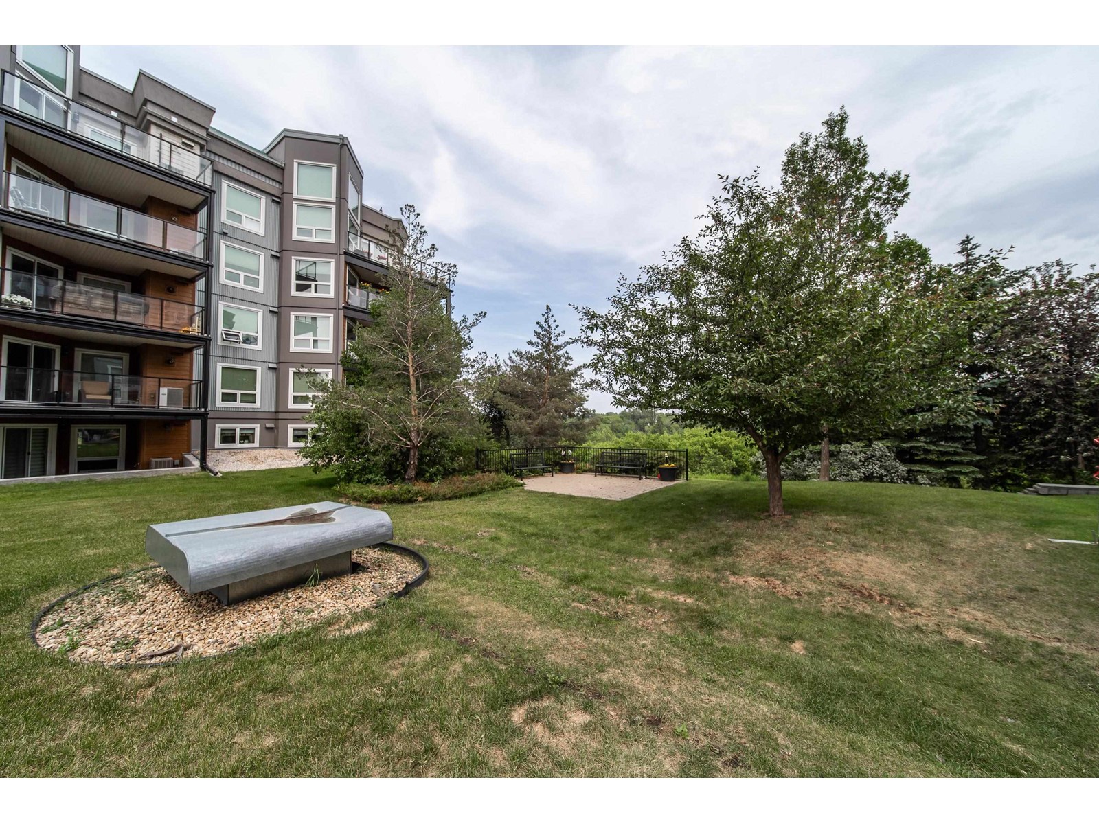 This beautifully designed main floor apartment condo exudes comfort with its open concept layout and neutral finishes. The spacious living room features large windows that flood the space with natural light, creating a warm and welcoming ambiance. The kitchen is spacious and does not leave the chef out of the party as ample counter space is open to the main area. The dining area is perfect for entertaining guests or enjoying a cozy dinner with family. The master bedroom is a peaceful retreat, complete with a luxurious ensuite bathroom and ample closet space. Other highlights of this main floor apartment condo includes in-unit laundry and a private outdoor patio area perfect for relaxing and soaking up the sun. The suite faces onto open space with Mill Creek Ravine literally steps away! This unit also has 2 Titled Parking Stalls and Storage Units! Located in a desirable neighborhood, this condo is close to top-rated schools, shopping and entertainment options, making it the ideal place to call home. (id:22211)