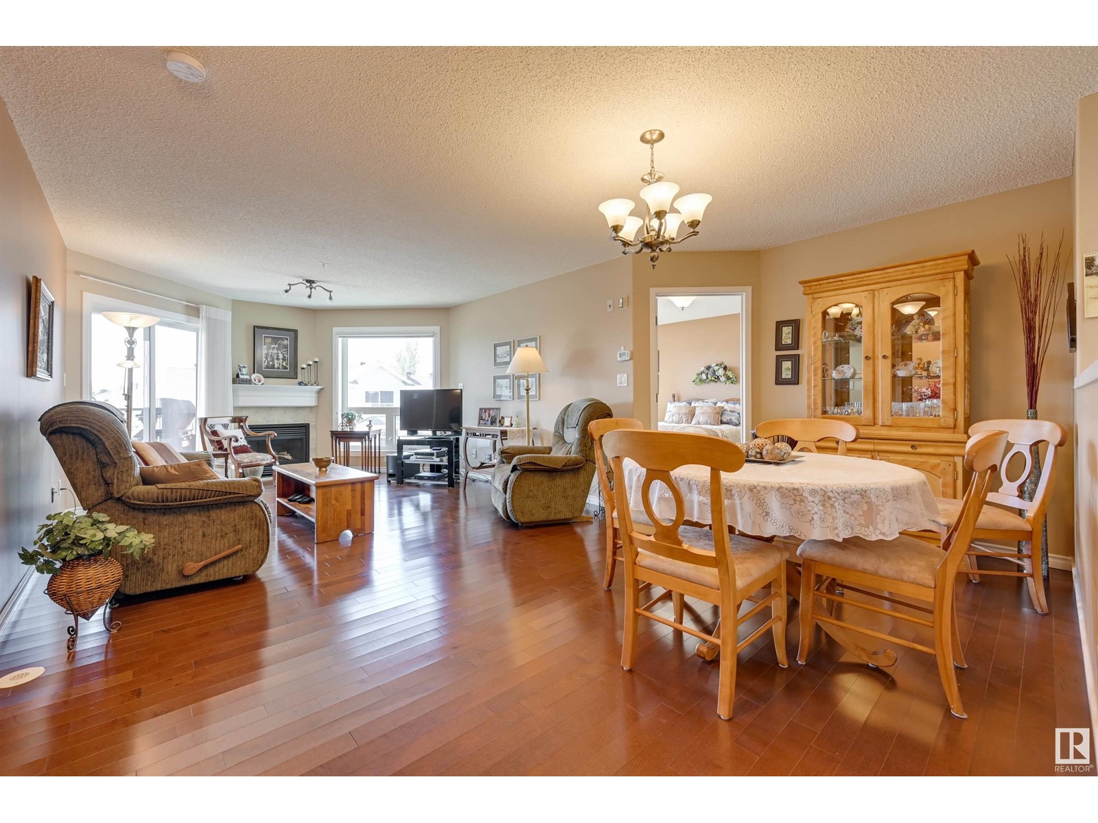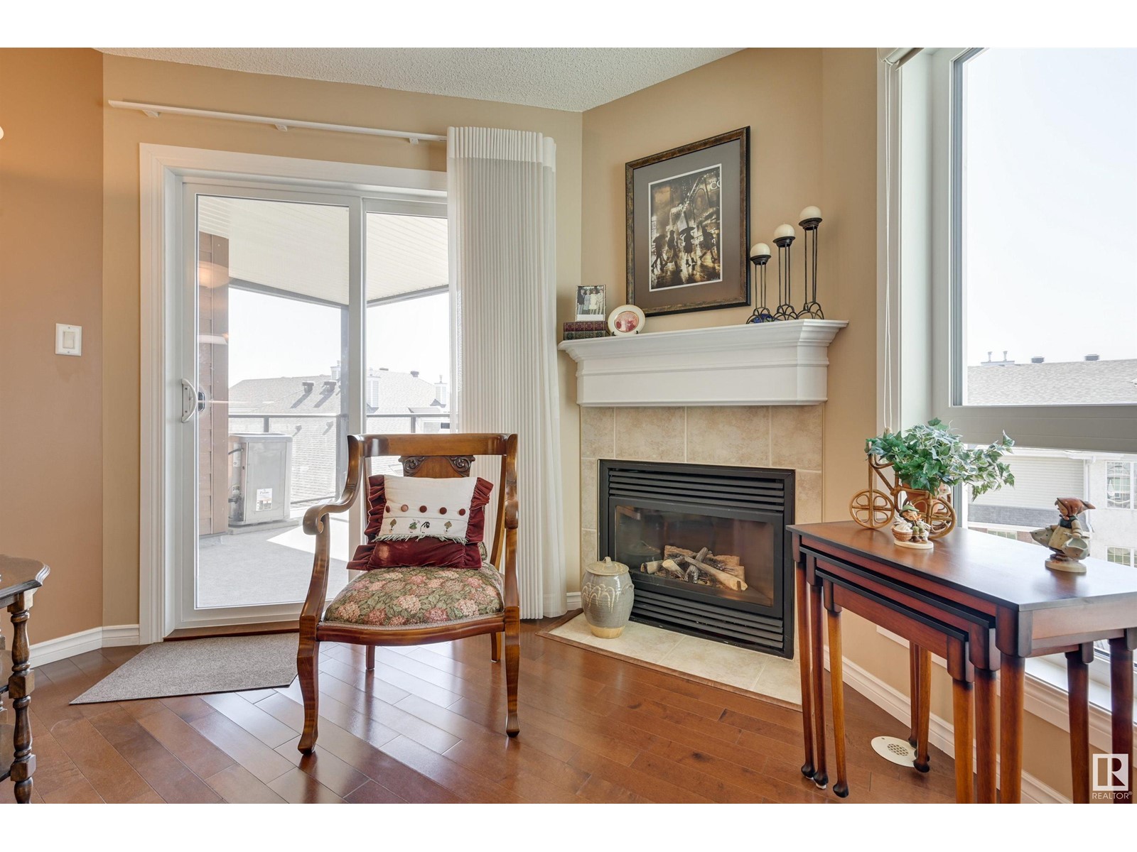 Welcome to Creek Side! This stunning 2-bed, 2-bath condo boasts 1015 sq.ft. of living space. Upon entering the unit, you immediately notice the natural light that floods the space. The kitchen is a chef's dream, featuring S/S appliances, oak cabinetry, and pantry. The adjacent dining room is spacious for hosting family and friends. The living room is cozy and comfortable w/ gas fireplace. Upgraded hardwood flooring and high-end blinds add a touch of luxury to the space. Two bedrooms each featuring an ensuite bath for convenience and privacy. Insuite laundry w/ storage. Large south-facing deck offers a peaceful retreat with beautiful views & gas hookup. This condo comes with an underground titled parking stall w/ storage cage. The building offers a social and fitness room for residents to enjoy. With Mill Creek Ravine at your doorstep, you have easy access to nature trails and green spaces. Shopping and public transportation are also nearby. The building is 18+ ensuring a peaceful and quiet environment. (id:22211)
