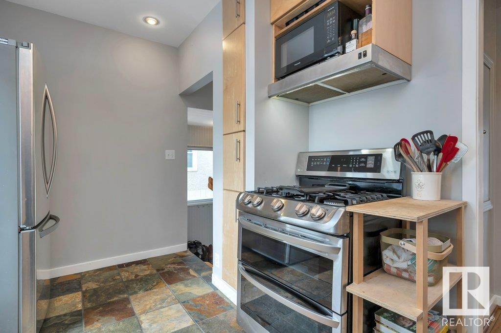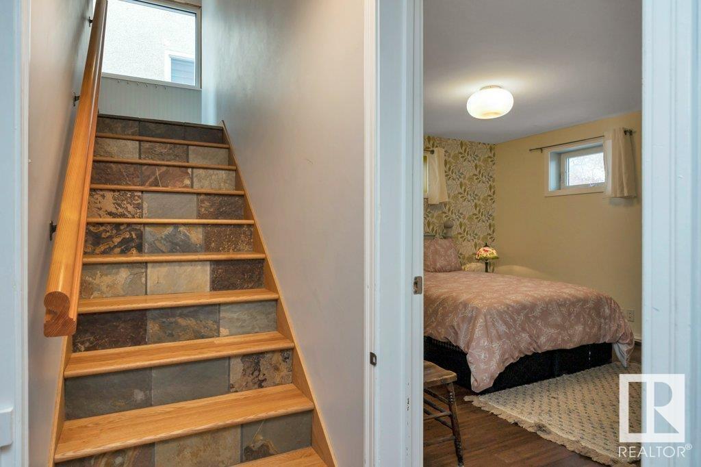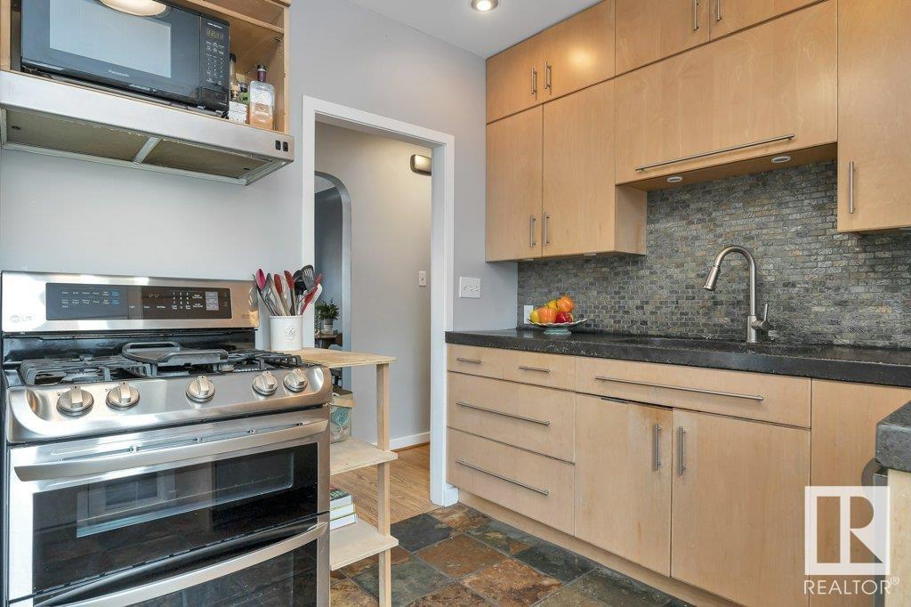 RENOVATED MOVE-IN READY DOUBLE OVERSIZED GARAGE! This charming bungalow is set to impress: Updated & upgraded to provide modern comforts & preserve the homes classic charm. Featuring curved archways, original hardwood, slate flooring (NO CARPETS!) & an upgraded kitchen with custom birch cabinetry, gas stove, and unique concrete countertops. A great master suite with dressing area can easily convert back to 2-bedrooms if needed. Many improvements through including newer shingles, vinyl windows, hot water tank, new furnace (2020), and mudroom! Enjoy outdoor living in the south-facing backyard with impressive exposed aggregate deck & built-in gas bbq area! The finished basement includes a large living room, an additional bedroom, and a bathroom with character cast iron bathtub & mosaic floors. Heated & oversized double detached garage with paved driveway & its own electrical panel! An exceptional find on the peaceful tree-lined streets of King Edward Park. RF3 Zoning. Quick Possession Available! (id:22211)