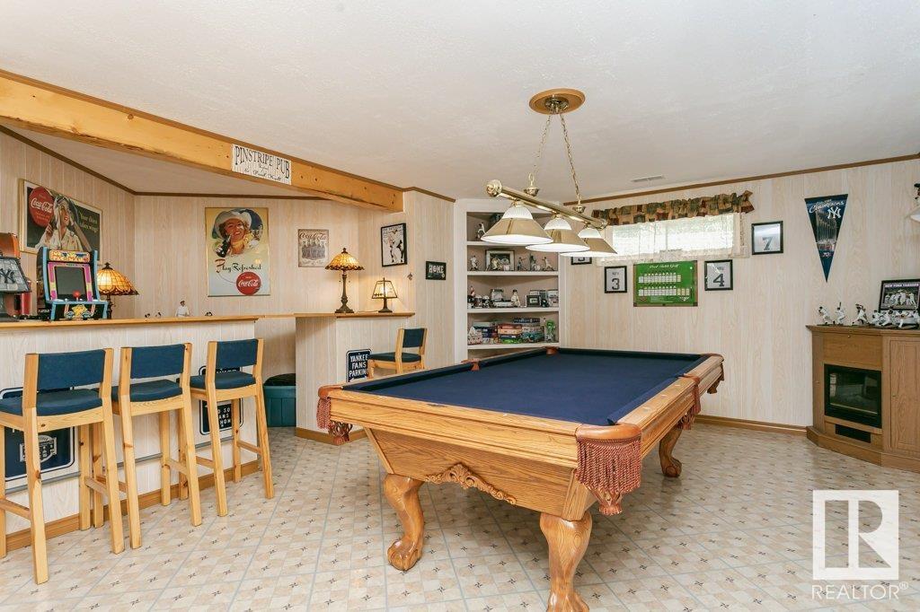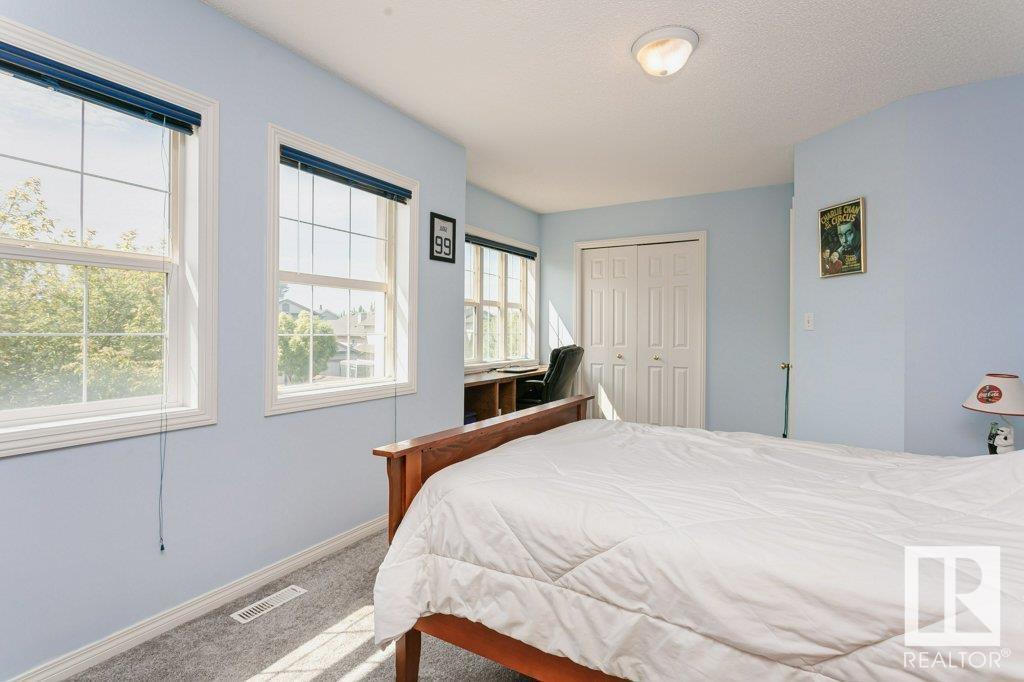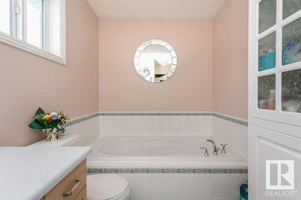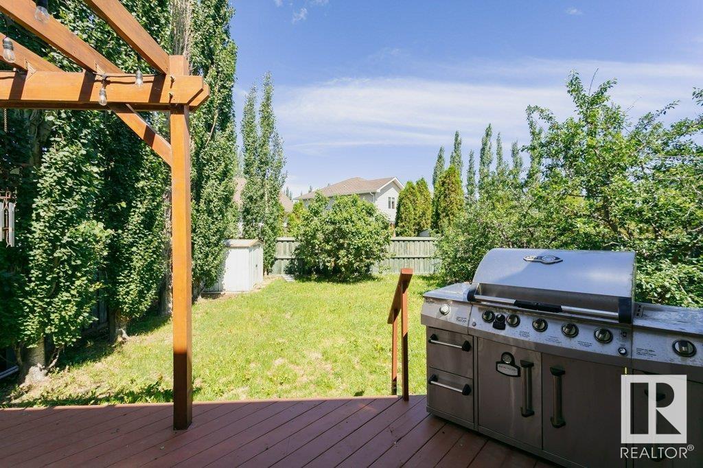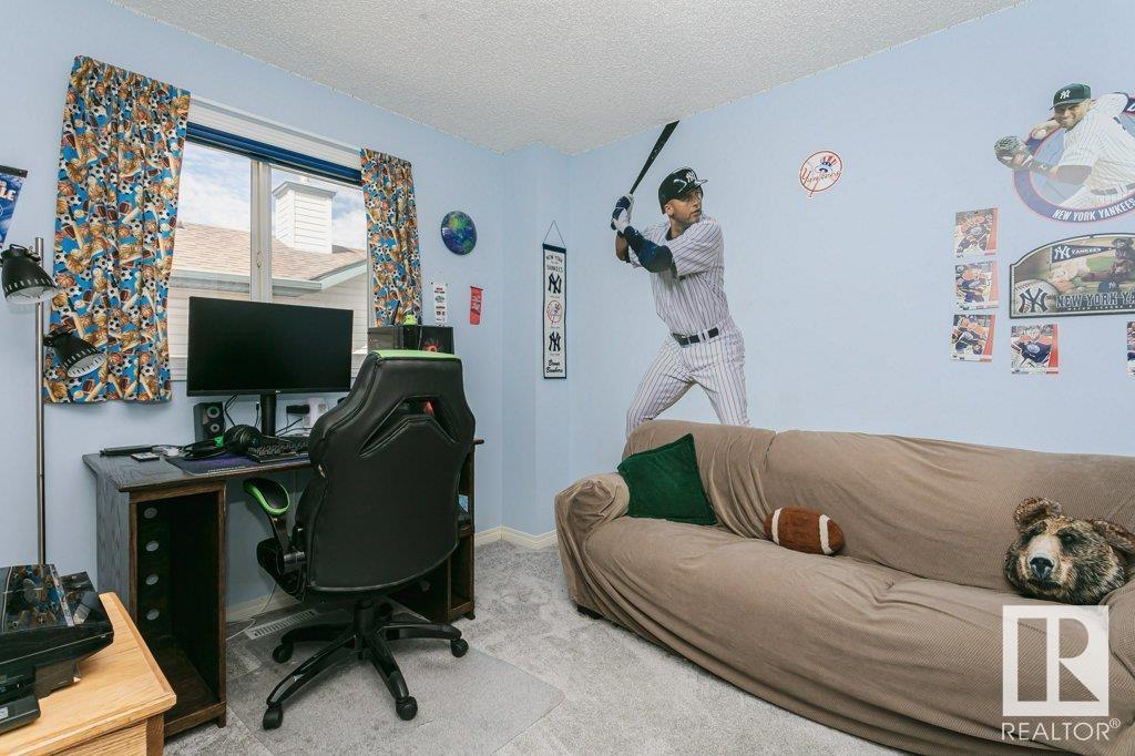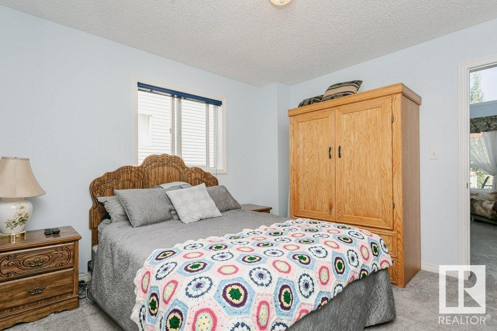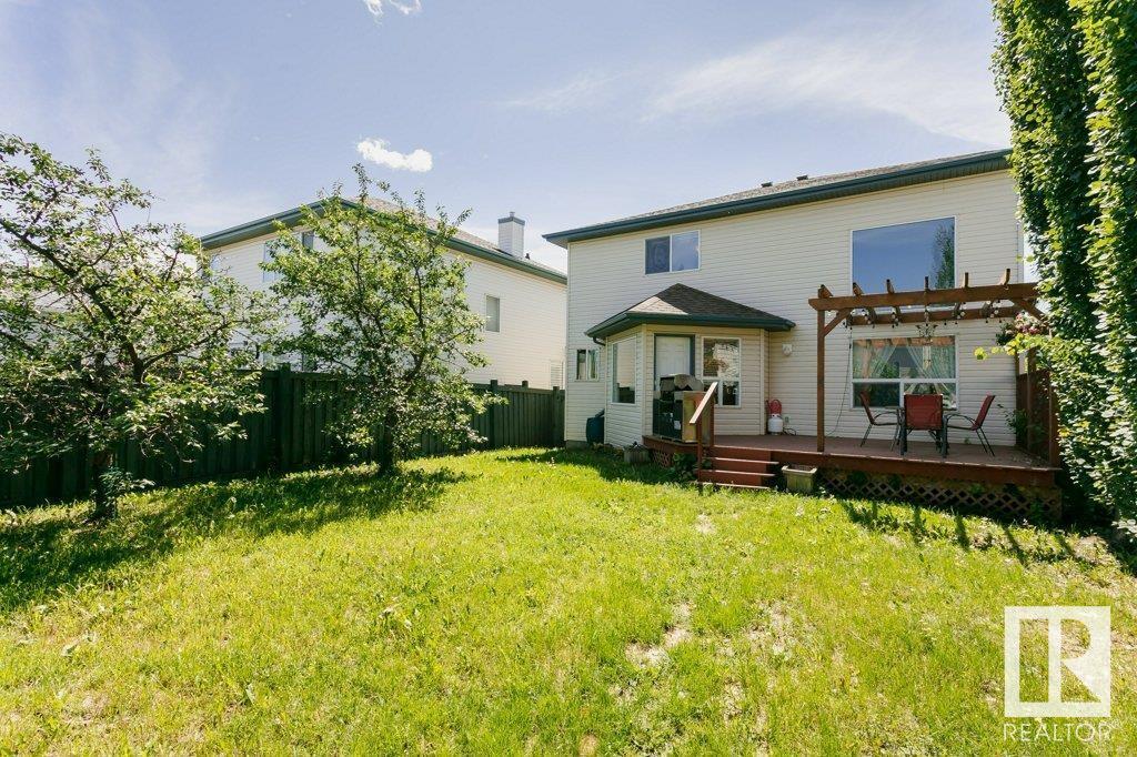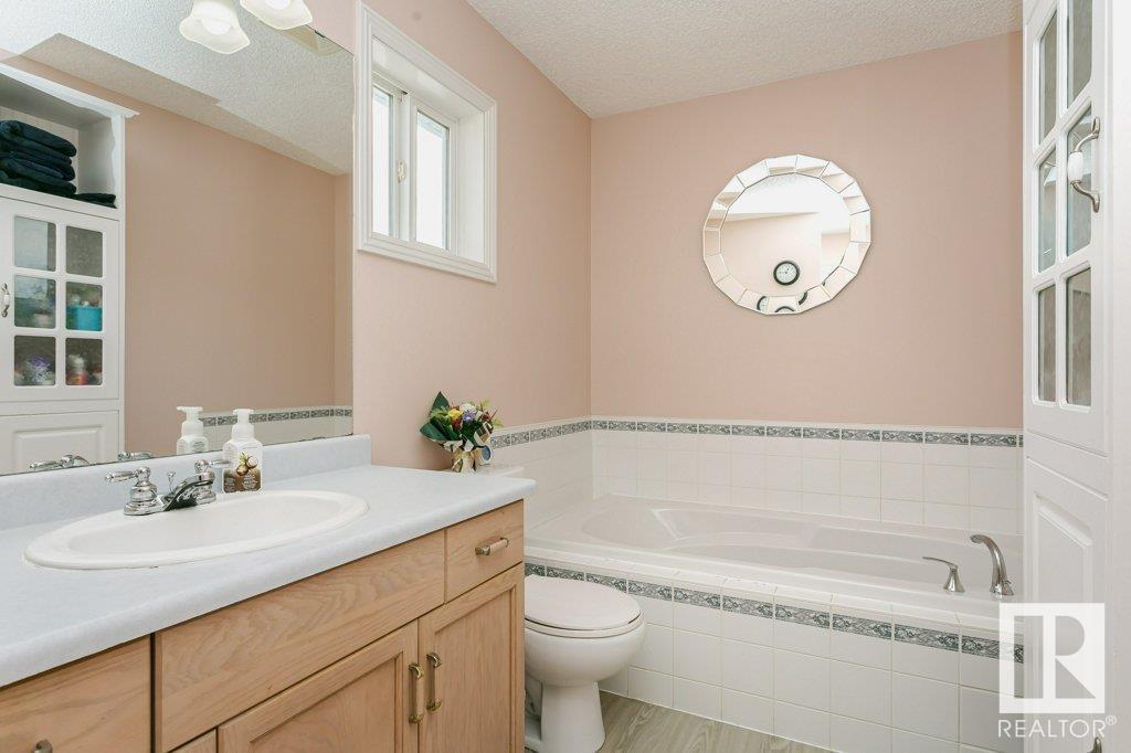 Extremely well maintained & spacious 2,200 sq.ft. 2 storey home nestled in a quiet cul-de-sac. Upstairs features 4 bedrooms with an oversized master bedroom with 4 piece ensuite. Three more bedrooms & updated full bathroom complete the upstairs. Main floor features hardwood floor, living room w/ cozy gas fireplace & large kitchen/dining area plus a versatile office/den with 3 piece bathroom, which could serve as an additional bedroom. This design offers a flexible living arrangement for family members to reside comfortably without the need for stairs. Fully finished basement boasts a huge rec room providing ample space for leisure & entertainment with Brunswick slate pool table + accessories included! Woodworking shop area complete the basement. Treed back yard with larger than avg lot for the area provides more space & privacy. Extra features include central A/C & new shingles (2020). Conveniently located close to shopping, schools + major transportation routes such as Whitemud Drive and Anthony Henday. (id:22211)