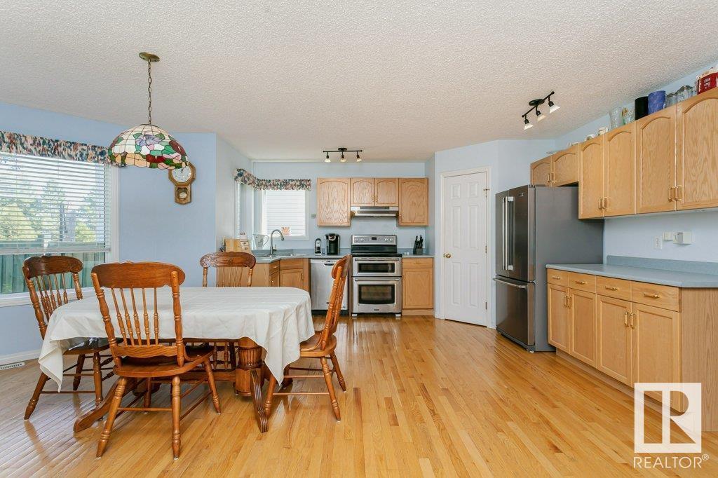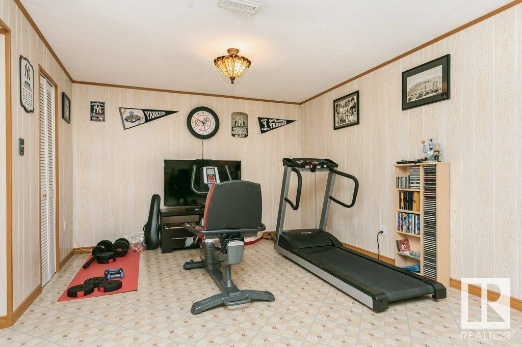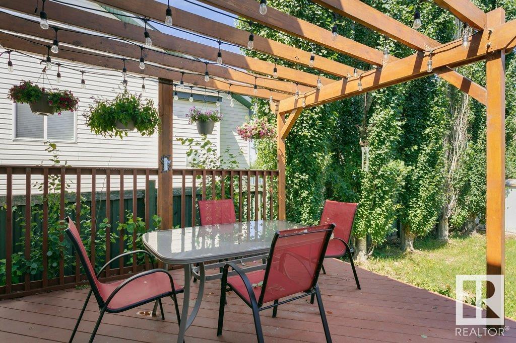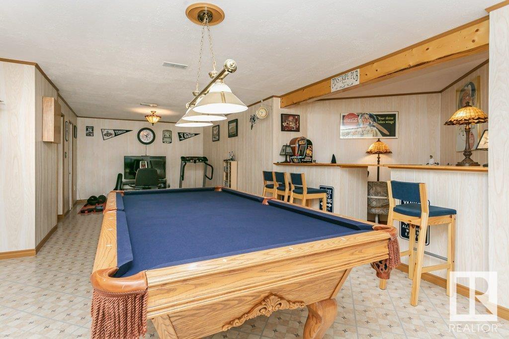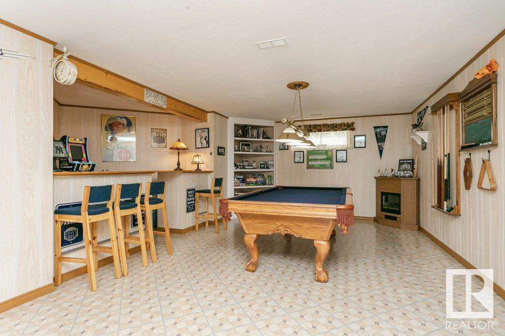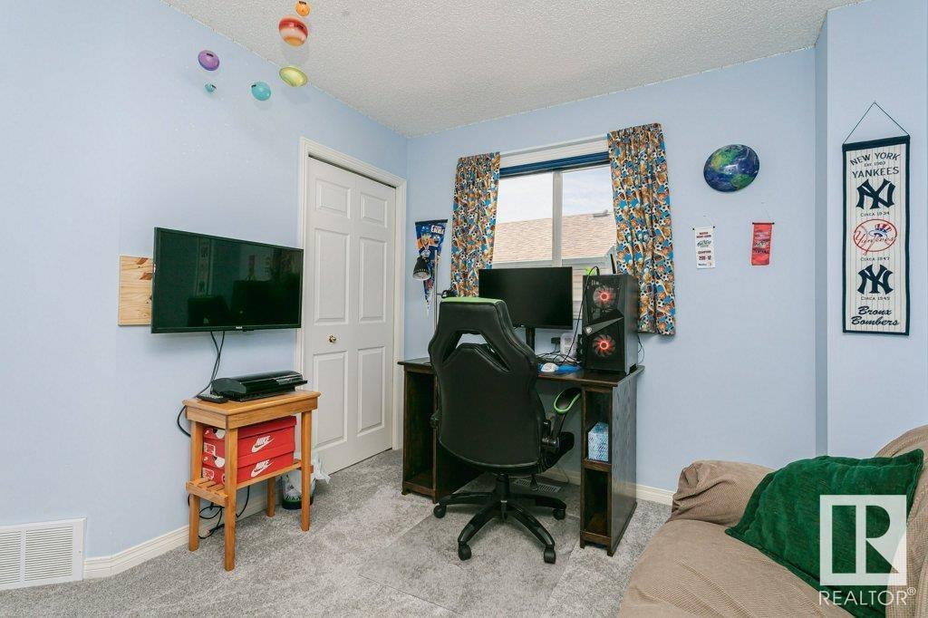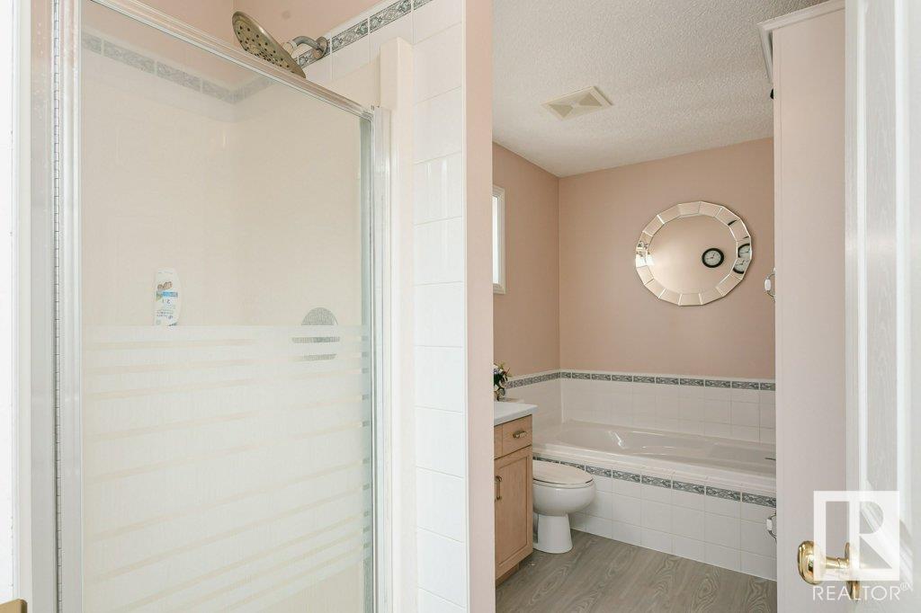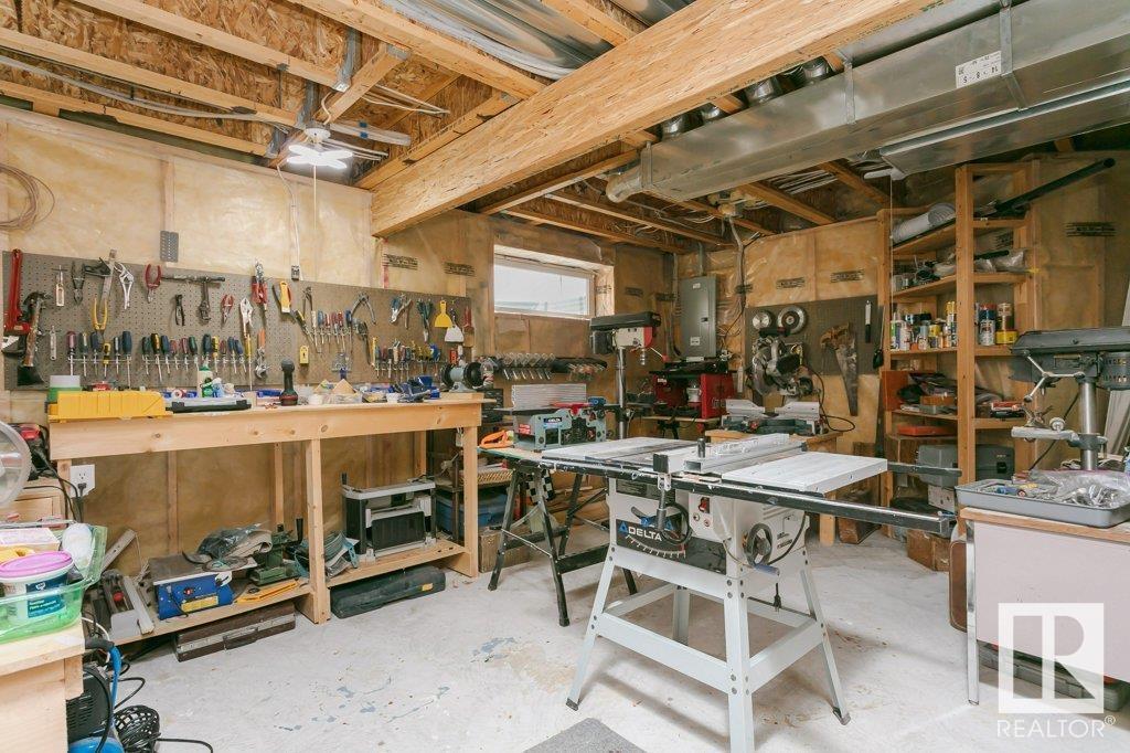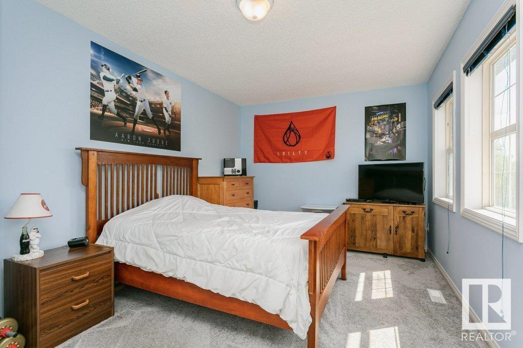 Extremely well maintained & spacious 2,200 sq.ft. 2 storey home nestled in a quiet cul-de-sac. Upstairs features 4 bedrooms with an oversized master bedroom with 4 piece ensuite. Three more bedrooms & updated full bathroom complete the upstairs. Main floor features hardwood floor, living room w/ cozy gas fireplace & large kitchen/dining area plus a versatile office/den with 3 piece bathroom, which could serve as an additional bedroom. This design offers a flexible living arrangement for family members to reside comfortably without the need for stairs. Fully finished basement boasts a huge rec room providing ample space for leisure & entertainment with Brunswick slate pool table + accessories included! Woodworking shop area complete the basement. Treed back yard with larger than avg lot for the area provides more space & privacy. Extra features include central A/C & new shingles (2020). Conveniently located close to shopping, schools + major transportation routes such as Whitemud Drive and Anthony Henday. (id:22211)