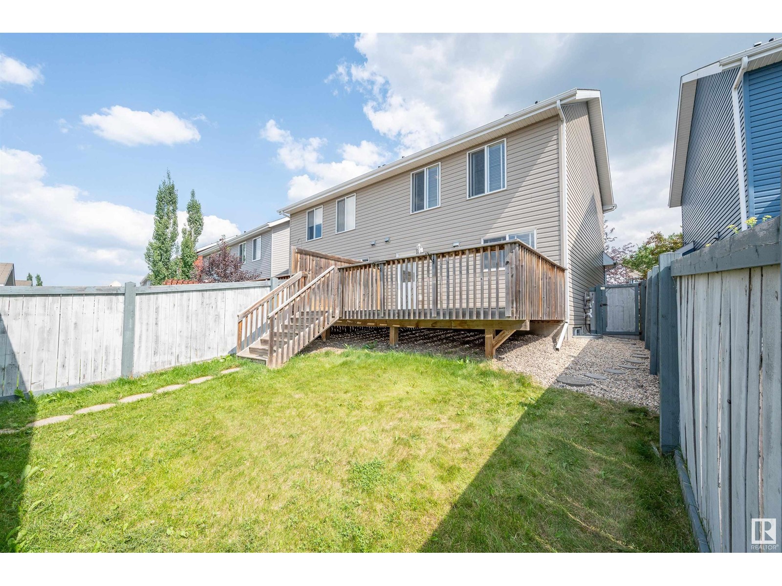 NO CONDO FEES! Check out this fantastic 3 bedroom, 2.5 bath, 1113sf, half duplex with double detached garage in the desirable community of Lake Summerside. This lovely starter home has recently been upgraded with all new paint, subway tile backsplash & vinyl plank flooring on the main floor plus a new fridge & dishwasher in the spacious island kitchen. Walk in from the cozy front porch to a bright open concept living space & a 2pc bath. Upstairs there is a nice sized primary bedroom with 3pc ensuite & WI closet plus the 4pc main bath & two additional bedrooms. The unfinished basement has laundry & RI for a bathroom so you can build equity by developing it however you like. Theres also a huge deck in the fenced backyard where you can host BBQs with friends or enjoy a quiet evening after a busy day at the Summerside Beach Club where you have exclusive beach access including playground, tennis, watersports, beach activities & more. Perfect for first time buyers... make this one your new home & enjoy! (id:22211)