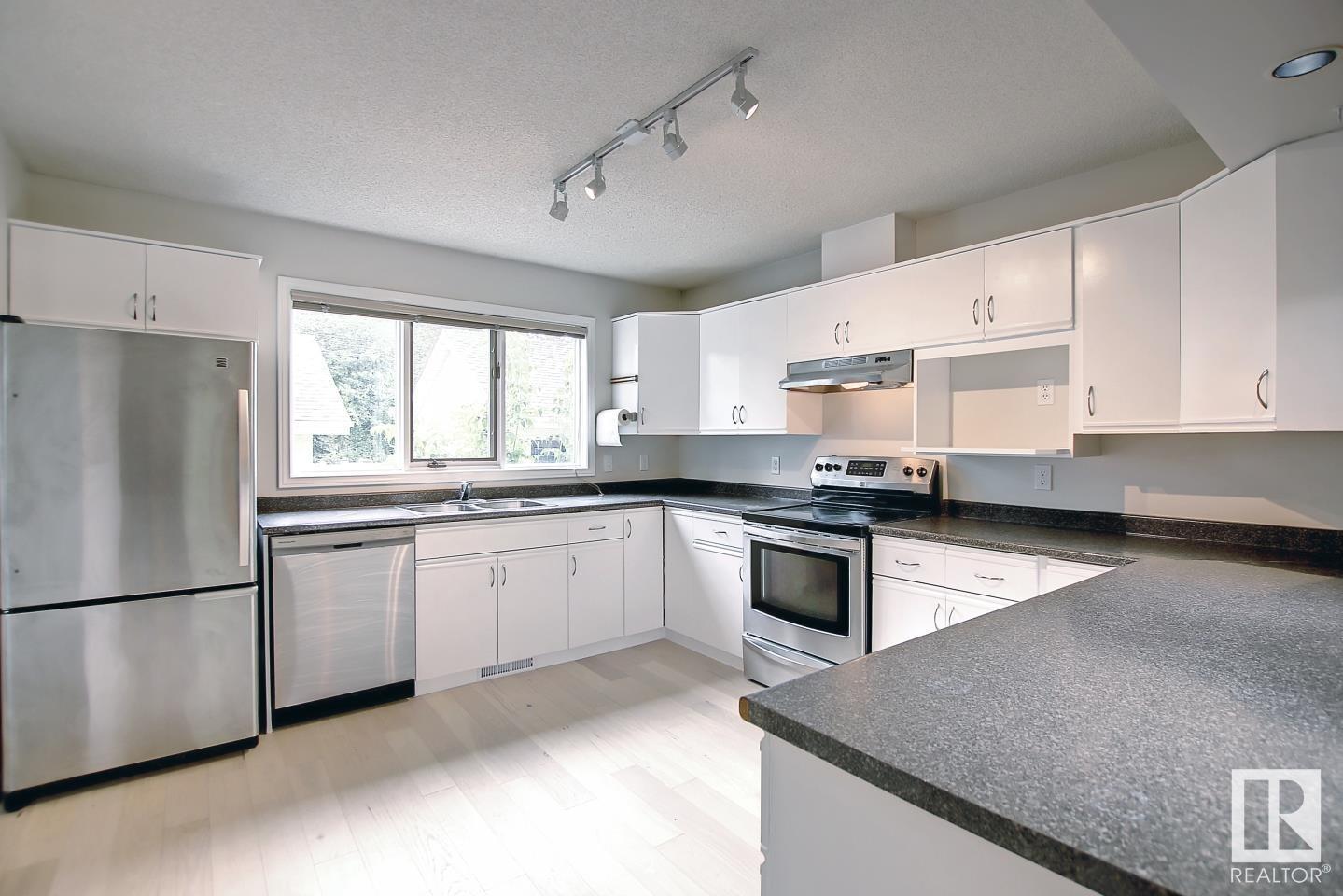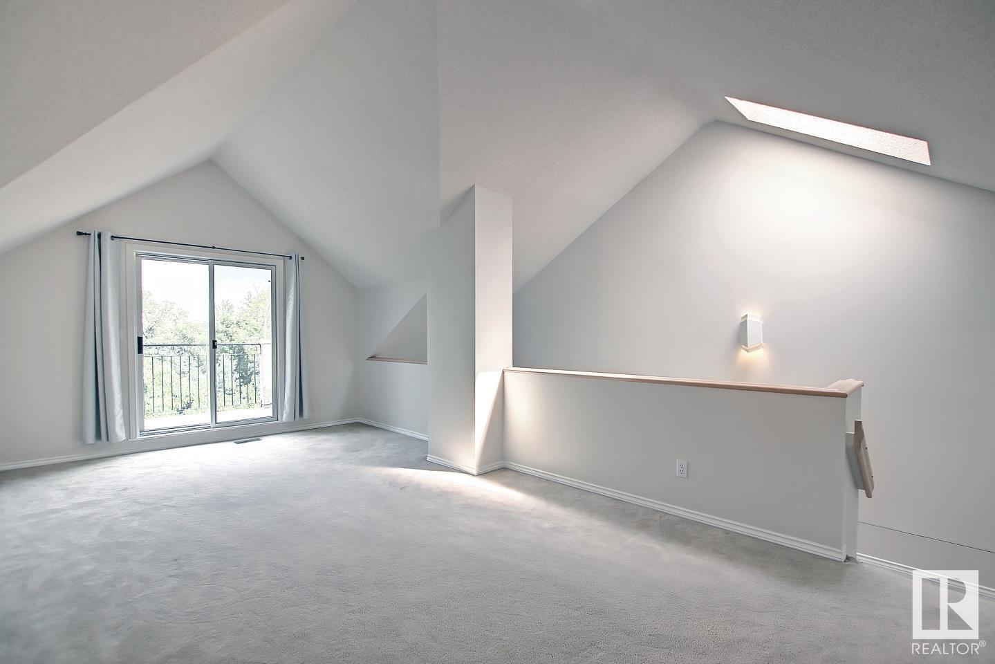 NOT A CONDO! this beautiful townhouse looking into the river valley from its top floor balcony has everything you could ask for! From the location, in the river valley, the well landscaped oasis low maintenance backyard, the garage and parking pad... Inside is even better with a well sized kitchen and dining area,madiea room in the basement with surround sound, projector wiring and screen, the other basement room has a rough in for additional bathroom, and la large space for storage. The 2nd level has a 4pc bathroom and 2 generous sized bedrooms, one with double closets and the primary suite with a walk through closet and 3 pc ensuite. The top floor is the best part, a large family room with vaulted ceilings and with a balcony looking out on the river and downtown views. (id:22211)