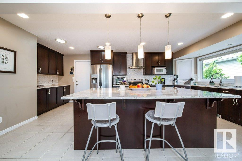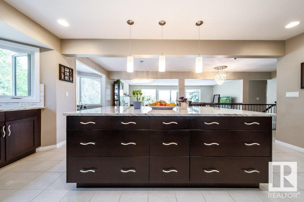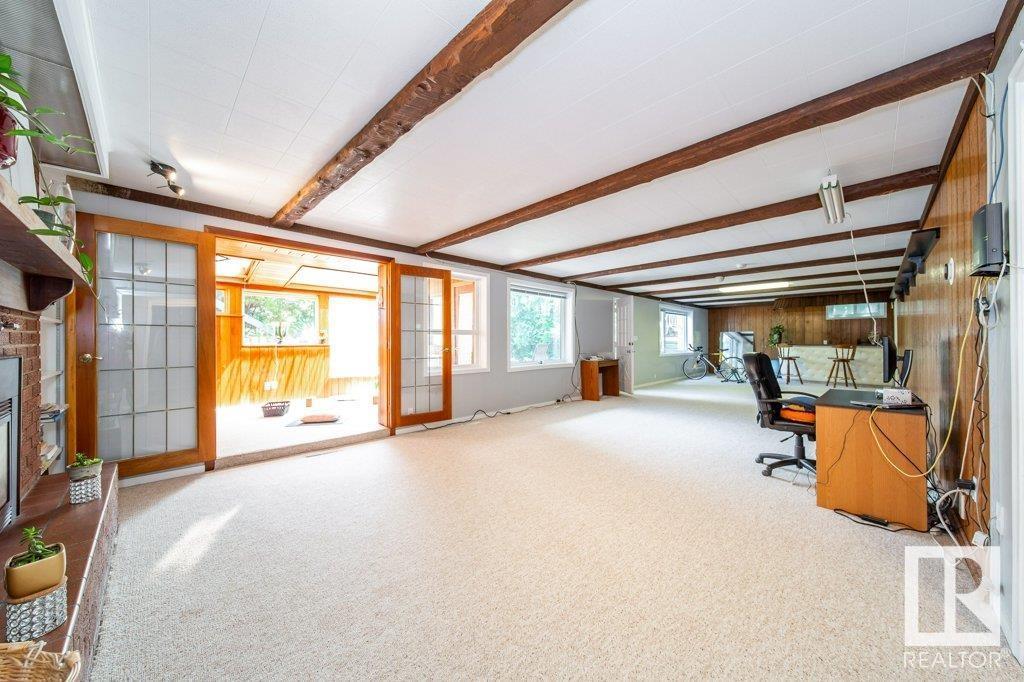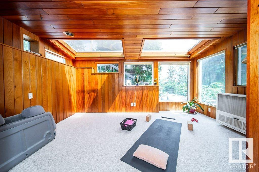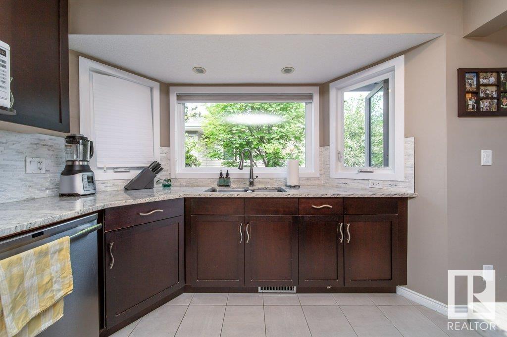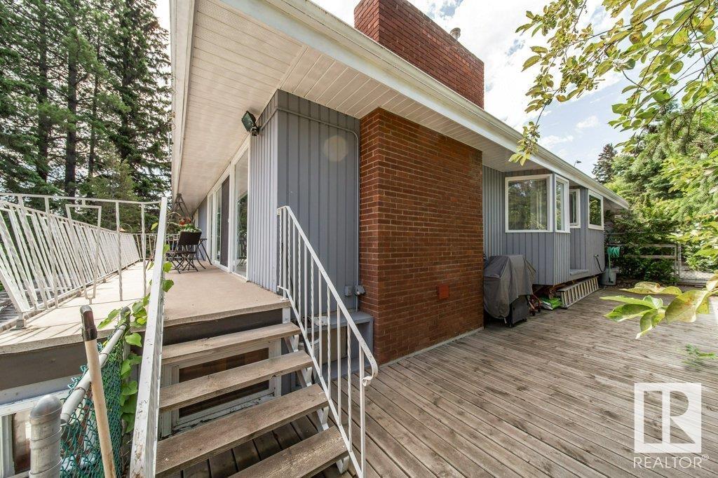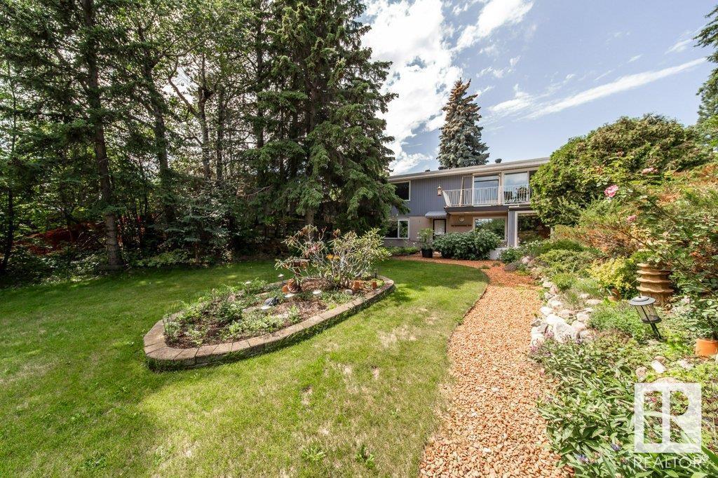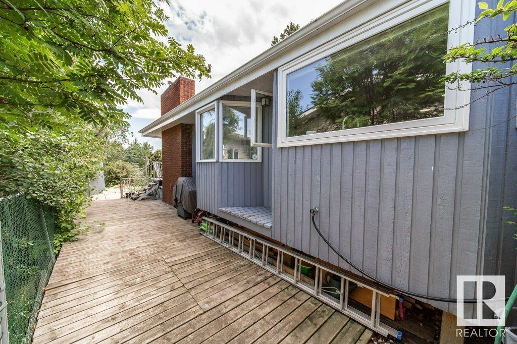 Prestigious Location In East Crestwood! Solid Walkout Bungalow. Enjoy the view of William Hawrelak Park and the City skyline from your full balcony and backyard. Renovate or build your dream home. Almost 1/4 Acre. 73' x 143' ravine lot. Bright and open with a walkout basement. A backyard oasis on MacKenzie Ravine. Main floor with over 1,716 sf plus another 1,700 sf of fully finished basement. Bright and airy on all levels. Home was renovated by award-winning Aquarian. Huge island kitchen with beautiful River White granite countertops, pot lights, solatubes and new chandeliers. Many newer windows 2011, Shingles 2013, Hot water tank 2020, New electrical panel and cables, fiber optics in 2021. Master with new 4 piece ensuite. 2 more spacious bedrooms. Basement has fireplace, wet bar and heated sunroom and Den. Front drive with double garage and breezeway. Quick access to Downtown and River Valley. Short walks to trendy neighborhood amenities. Surrounded by some of the best schools in Edmonton! (id:22211)