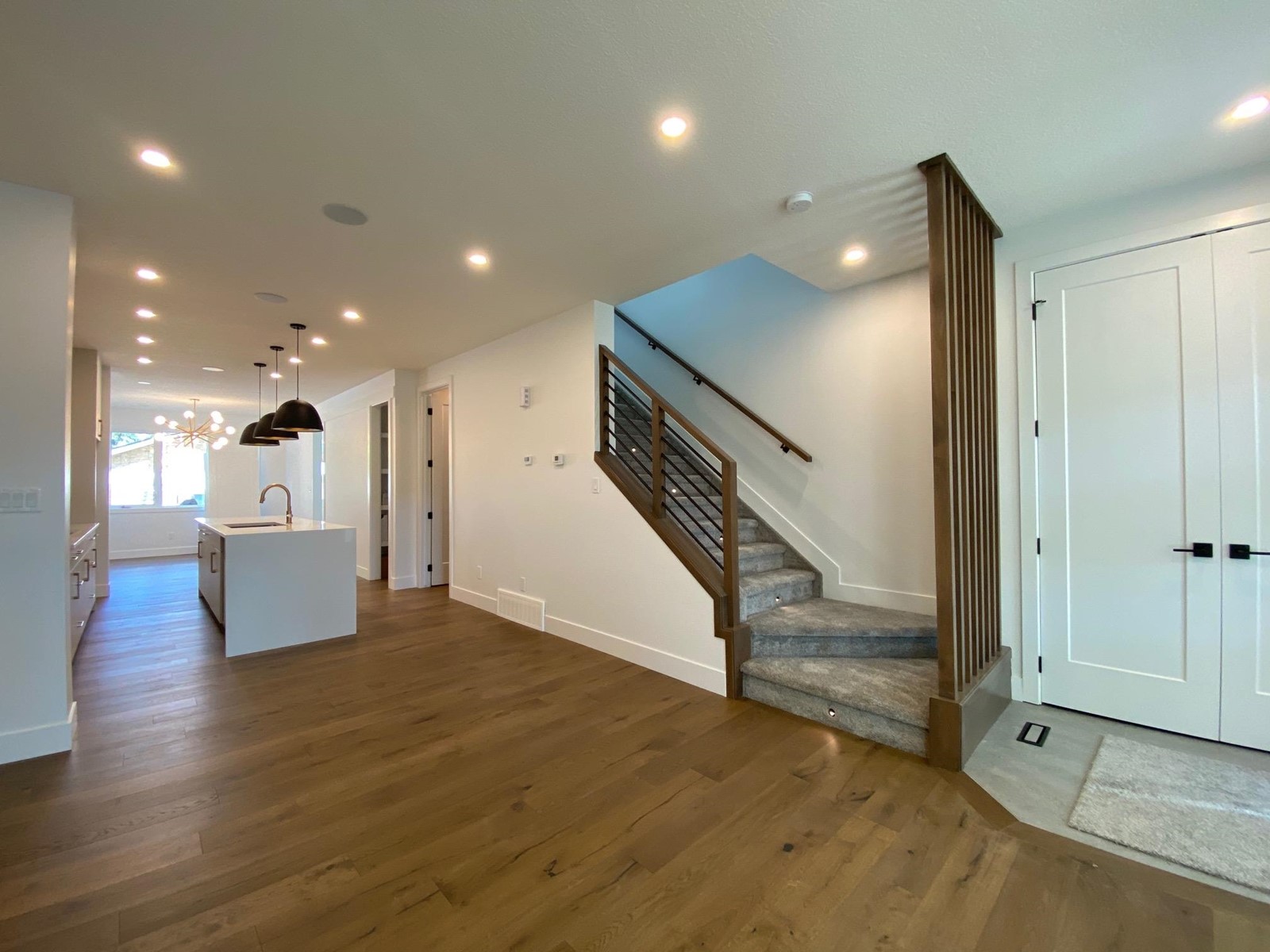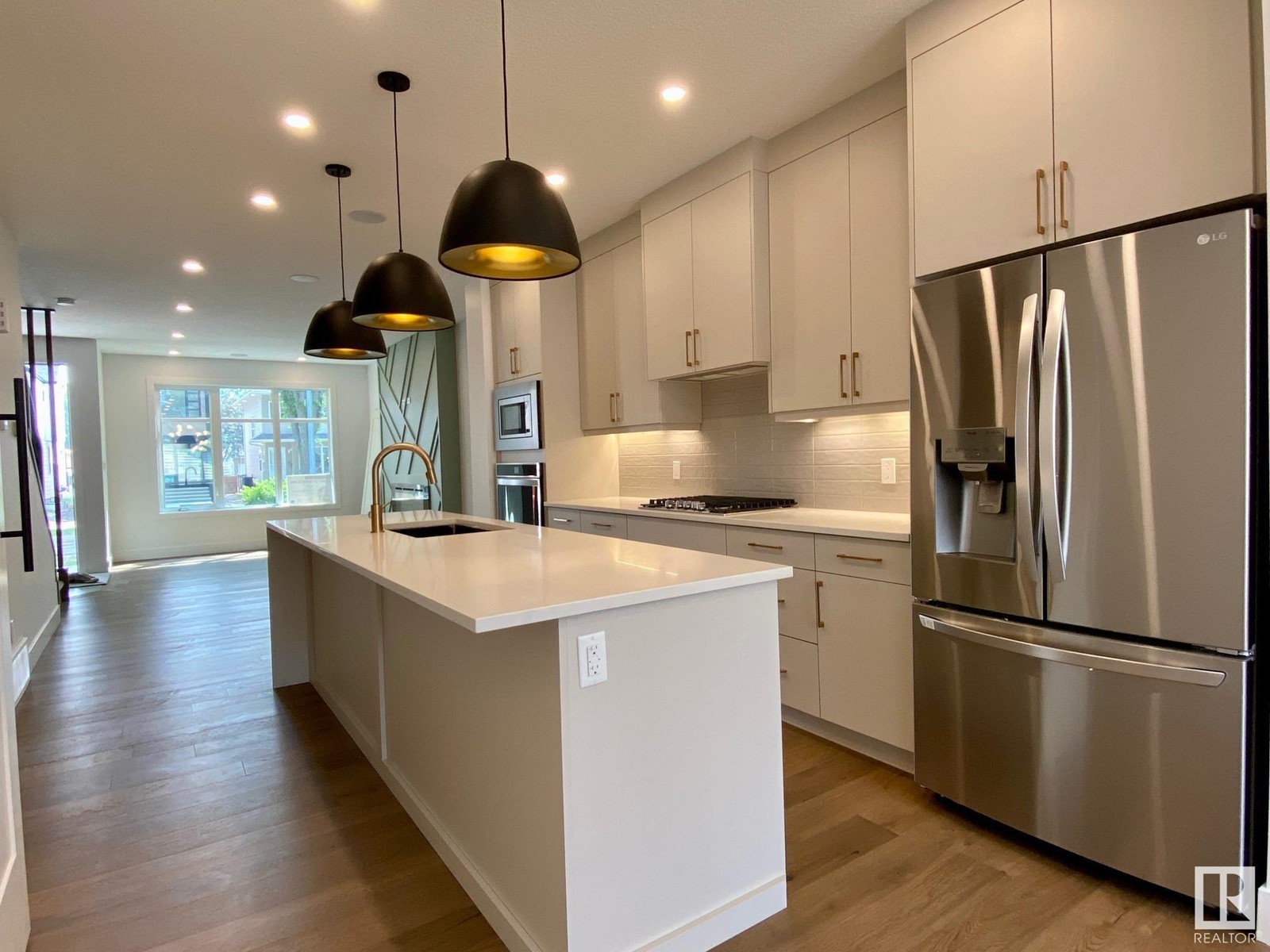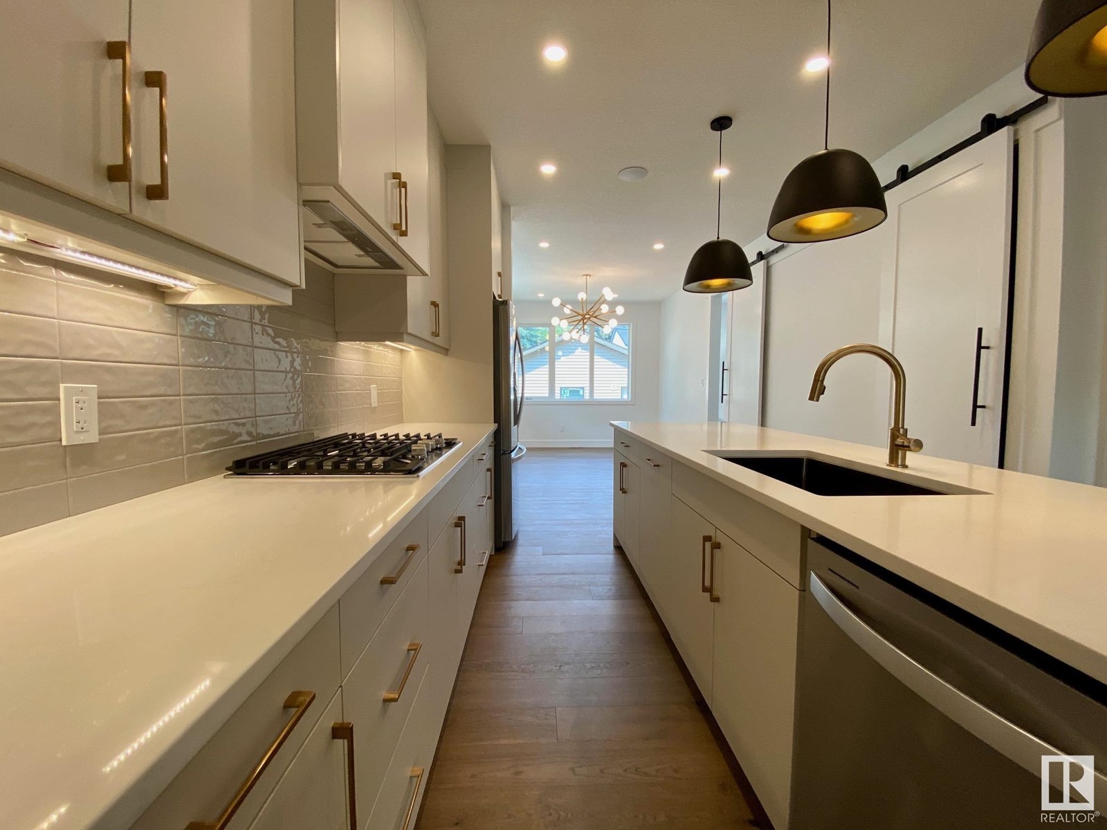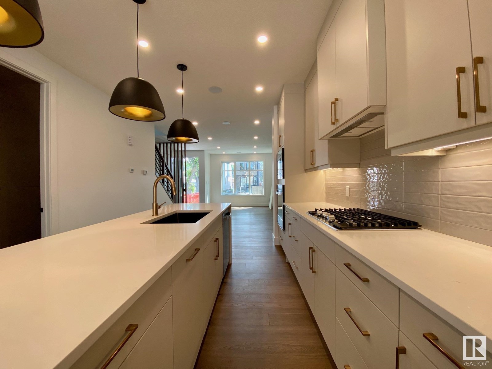 Quick possession available on this stunning new infill on a quiet street in desirable Hazeldean! This 2-storey home boasts over 1750 sq.ft., an open plan and walking distance to the Mill Creek Ravine and Ritchie Market area. The spacious kitchen has a large island, quartz with waterfall and Whirlpool appliances with gas cooktop. The living room and dining areas have great natural light with amazing windows, fireplace with Venetian plaster and access out to the deck and yard. The main floor boasts wide-plank engineered hardwood flooring, 9' ceilings, r/in speakers, 2-piece bath and pot lighting. The large master bedroom has great views, walk-in closet and a 5-piece ensuite with freestanding tub + shower with glass enclosure. There are also two more spacious bedrooms on this level, full 4-piece bath and laundry room. Complete the package with a Hardie facade ,HRV, tankless hot water, separate entrance to basement and insulated double detached garage. Close to schools, shopping, transportation and more! (id:22211)