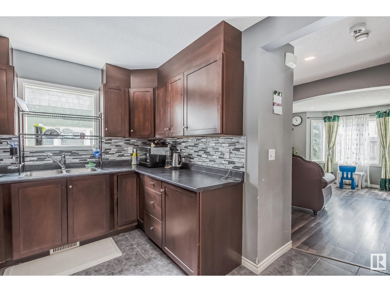 Spacious 4 bedroom front unit half duplex! NO CONDO FEES! Like new, bright and sunny south facing living room with bay window, large kitchen with plenty of cabinetry and dining area. 3 1/2 baths. 3 large bedrooms on upper level, primary has FULL BATH en-suite and WALK IN CLOSET. FULLY DEVELOPED BASEMENT with SEPARATE SIDE ENTRANCE! Basement has another bedroom/second family room, full bath and kitchenette! Centrally located, close to LRT, BUS ROUTE, DOWNTOWN, KINGSWAY SHOPPING and NAIT. (id:22211)