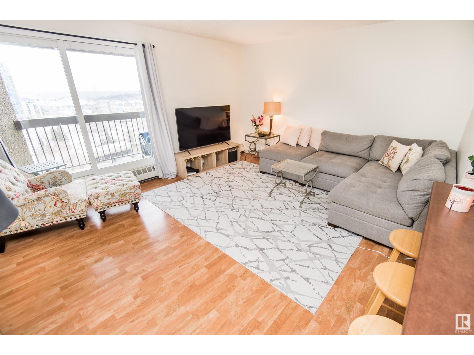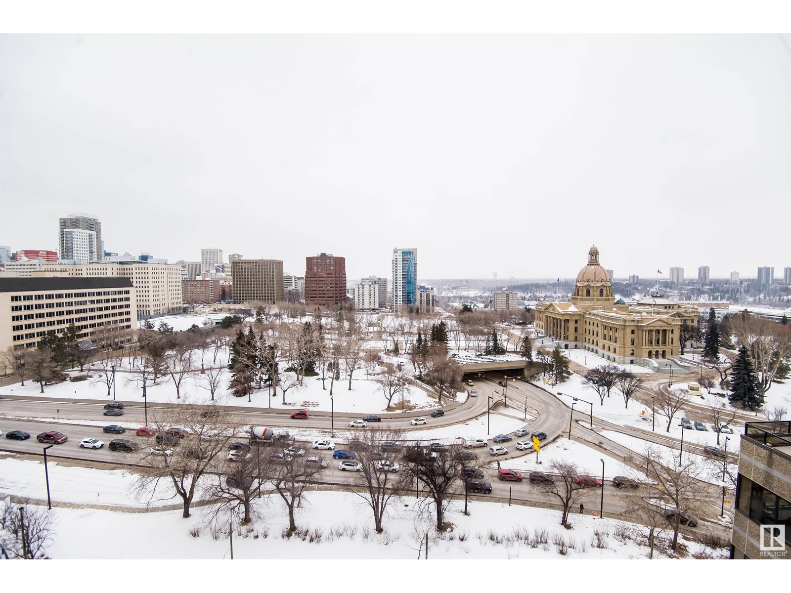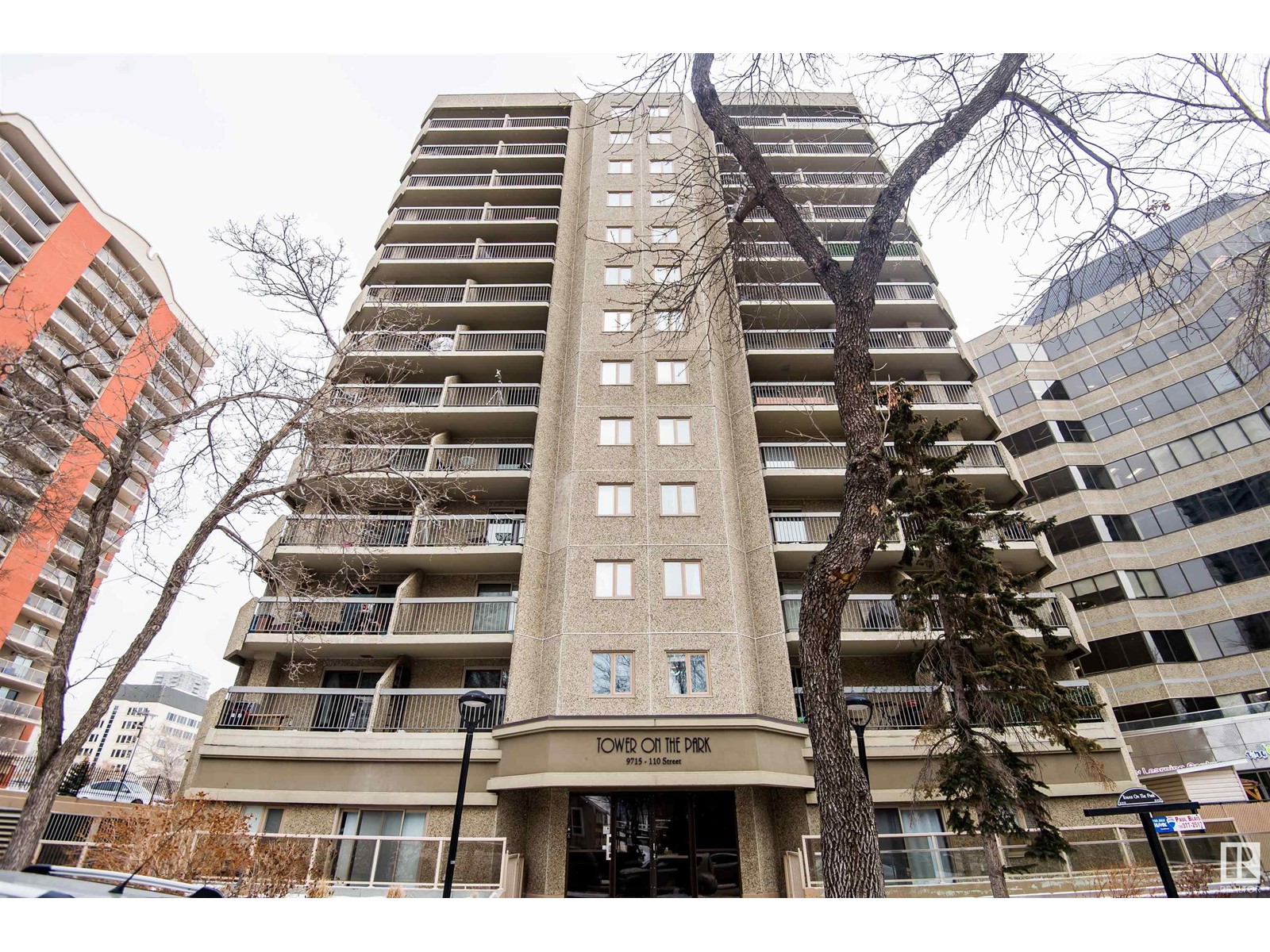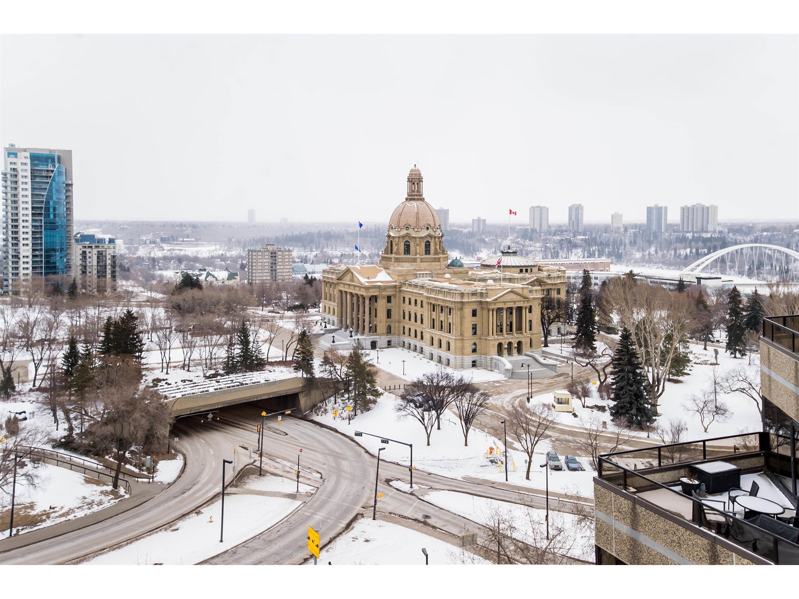 WALKABLE, TOP FLOOR, RIVER VALLEY VIEWS. Welcome to #1403 a stunning condo in the heart of downtown Edmonton. This beautiful one bedroom/one bathroom unit is located at the top of the Tower on the Park, a well-maintained building, offering breathtaking views of the Legislature grounds & river valley. Enter to a spacious and open living area, perfect for entertaining guests or relaxing after a long day. The large windows flood the space with natural light and offer access to the spacious, covered balcony. The modern kitchen offers plenty of storage and counter space with convenient breakfast bar seating and matching sleek, black appliances. Relax in the large bedroom with ample closet space. This unit comes with convenient in-suite laundry/storage and an assigned underground parking stall. Fantastic location, quick access to vibrant Jasper Avenue, with its array of restaurants, cafes, shops, and entertainment. Just steps away from the Legislature grounds and our gorgeous river valley. Welcome Home! (id:22211)