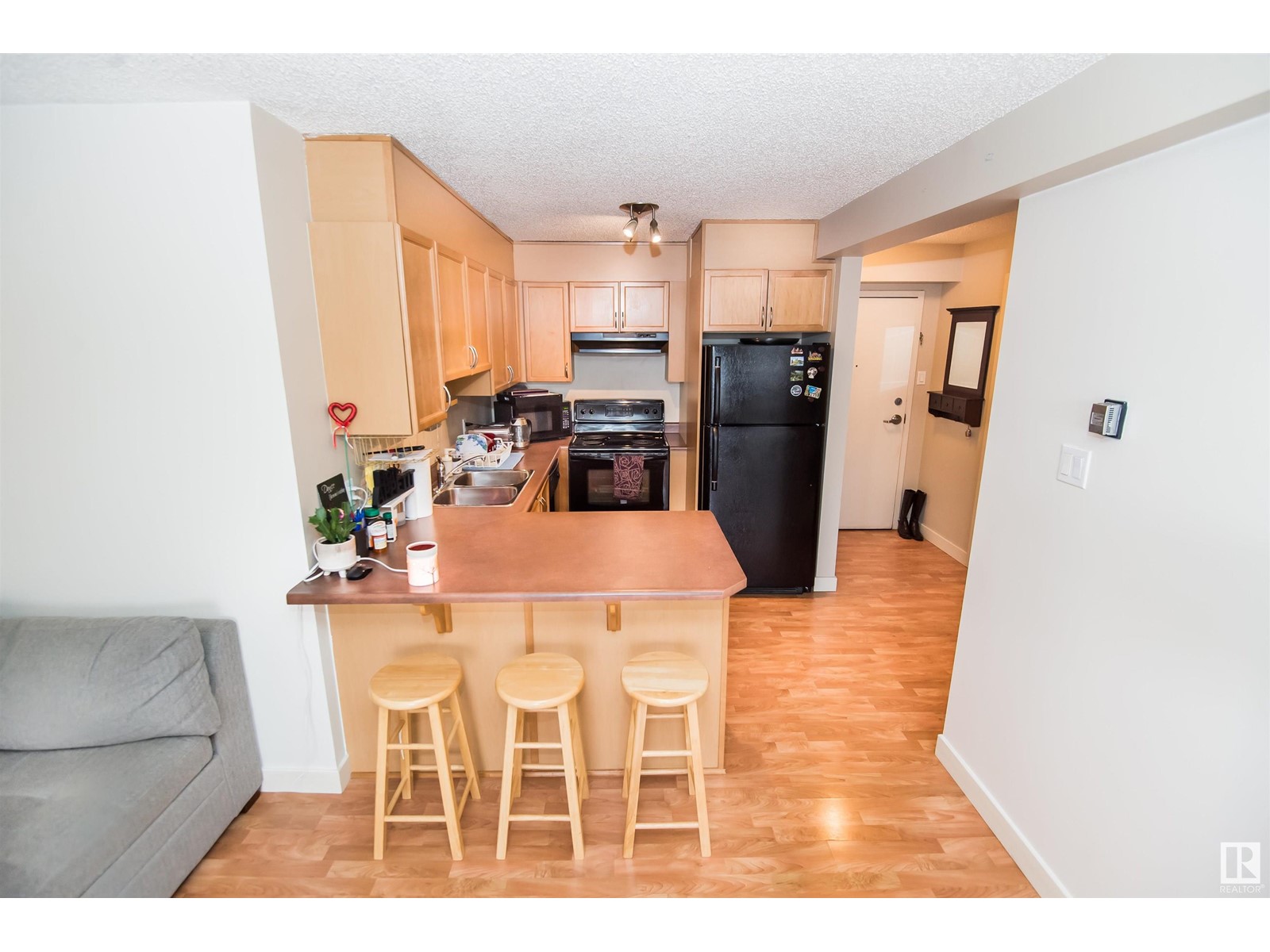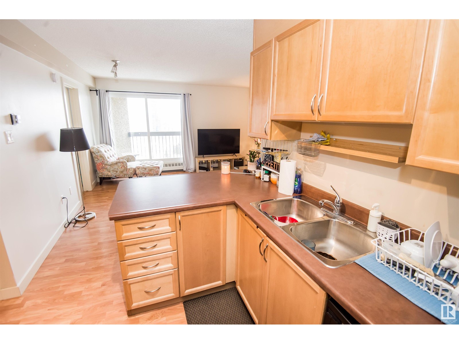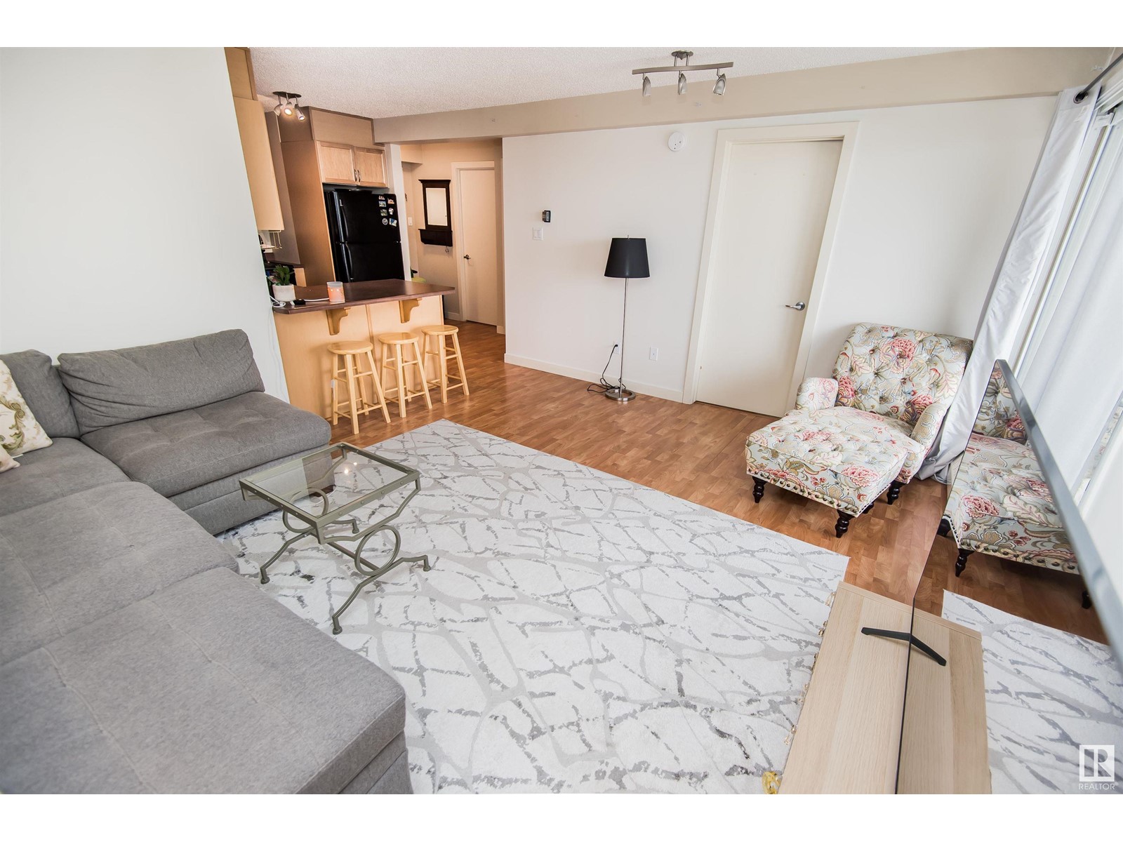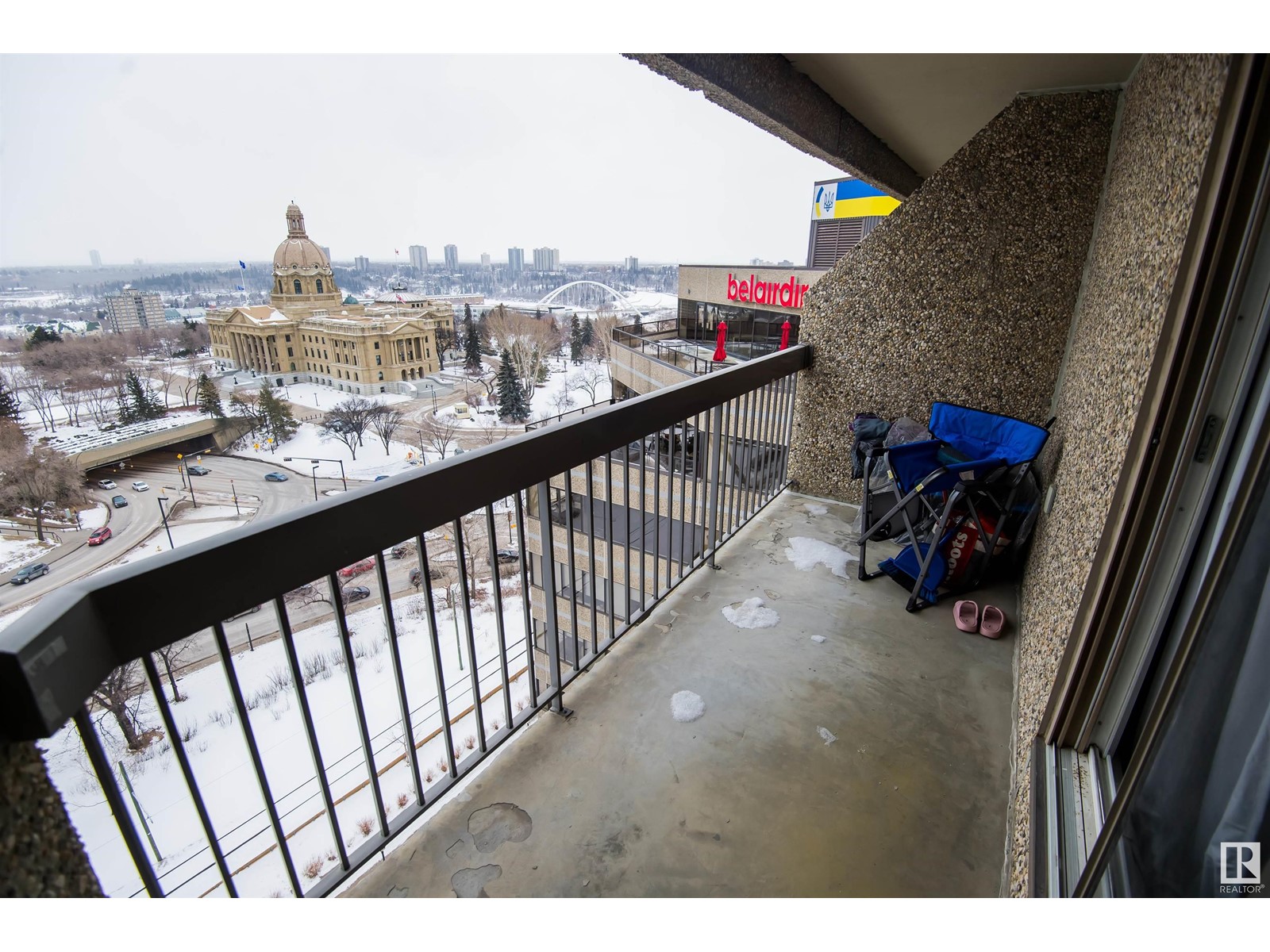 WALKABLE, TOP FLOOR, RIVER VALLEY VIEWS. Welcome to #1403 a stunning condo in the heart of downtown Edmonton. This beautiful one bedroom/one bathroom unit is located at the top of the Tower on the Park, a well-maintained building, offering breathtaking views of the Legislature grounds & river valley. Enter to a spacious and open living area, perfect for entertaining guests or relaxing after a long day. The large windows flood the space with natural light and offer access to the spacious, covered balcony. The modern kitchen offers plenty of storage and counter space with convenient breakfast bar seating and matching sleek, black appliances. Relax in the large bedroom with ample closet space. This unit comes with convenient in-suite laundry/storage and an assigned underground parking stall. Fantastic location, quick access to vibrant Jasper Avenue, with its array of restaurants, cafes, shops, and entertainment. Just steps away from the Legislature grounds and our gorgeous river valley. Welcome Home! (id:22211)