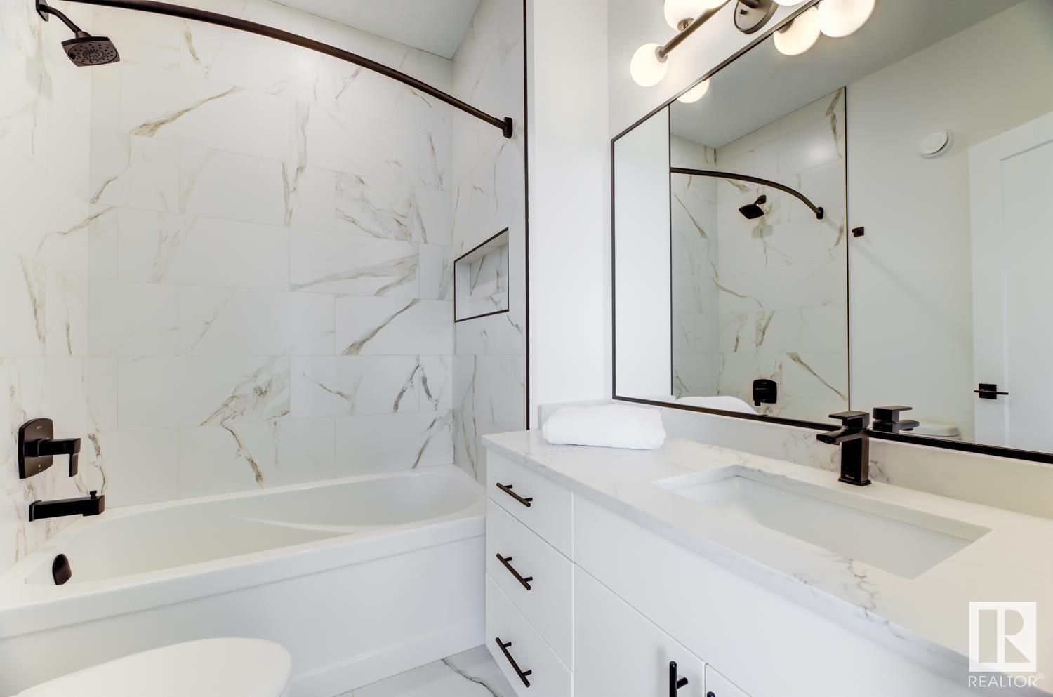 Stunning Home located in Crestwood. The front entrance nook is perfect to place your attire. The living room invites w/ a modern fireplace. The gorgeous kitchen is perfect for hosting family & friends for special occasions & holidays. The high-end appliances feel & show extremely well. The cabinetry is soft close & dovetailed equipped. There is a designated Cafe Section is perfect for your morning coffee &/or party beverages! The dining area can fit a large dining table. Plus a Huge Pantry! The floor to ceiling rear sliding doors allow plenty of sunlight. Outback is a read deck, fully landscaped & fenced yard. The double det garage is drywalled, set up for electric cars & it's roughed in for heat. The Primary has a vaulted ceiling, an ensuite & a massive W.I.C. The Dream Laundry Room is a MUST see! There are 2 spare rooms & a stunning main bathroom. The b/m has a sep entrance, ready for a legal suite (builder can complete). All Landscaping will be completed. The garage is drywalled & has 220 outlet. (id:22211)