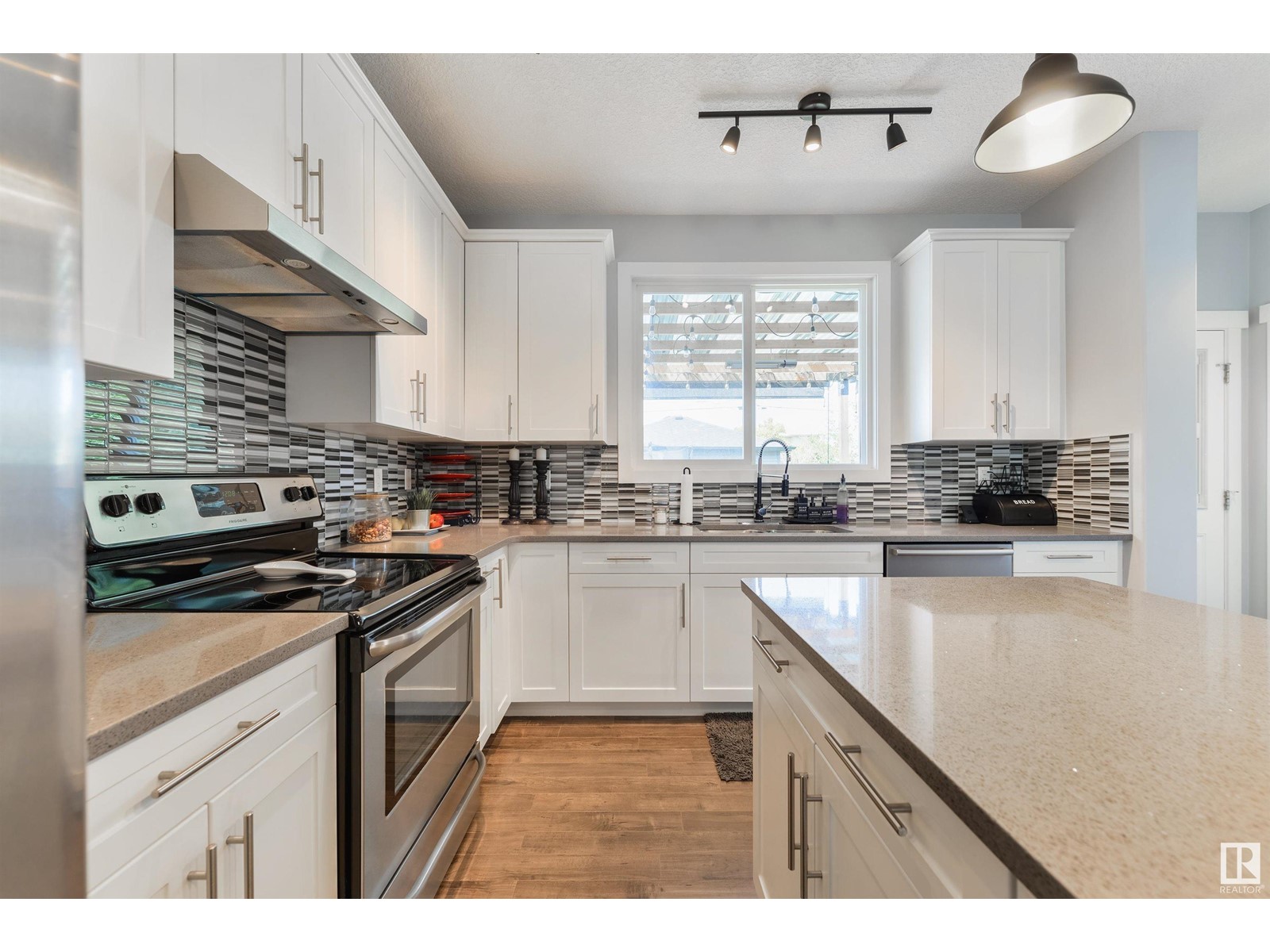 Just like new, this 2-storey home in serene Glenwood boasts over 1,800 sqft. The open-concept main floor showcases engineered wood floors and modern lighting, leading to a spacious dining area ideal for family dinners. The kitchen dazzles with white cabinetry, granite countertops, and stainless steel appliances, centered by a large island with seating. Upstairs, find 3 generous bedrooms, a handy bonus area, and a sleek 4pc bathroom. The master bedroom is a sanctuary with a large walk-in closet and a contemporary ensuite featuring an oversized shower and double sinks. The partially finished basement has a separate side entrance. Enjoy the landscaped backyard with a private deck, stone patio, lush green space, and double car garage. A truly wonderful home that has it all! (id:22211)