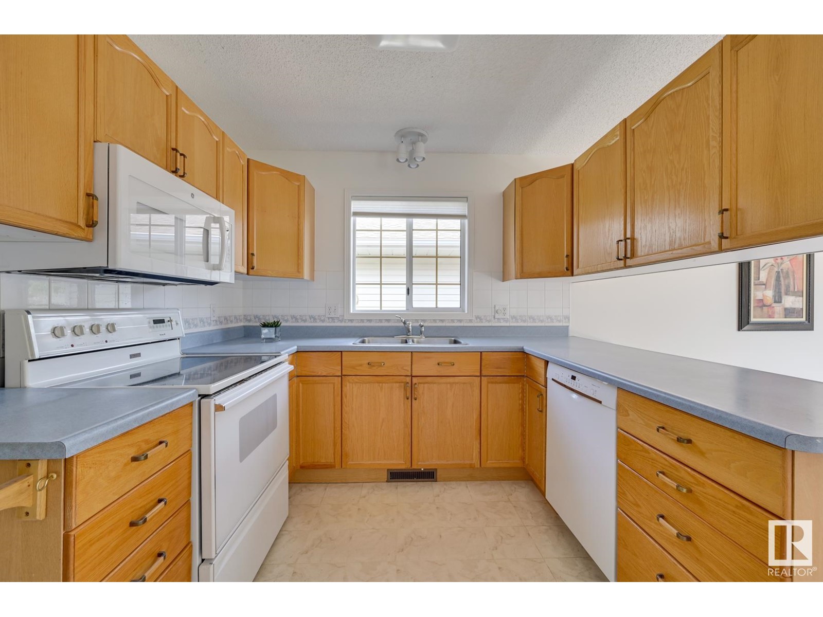 Welcome the GATED COMMUNITY of Sunrise Village! GREAT LOCATION, 55 plus Half Duplex Bungalow - walking distance to Grey Nuns Hospital, shopping, new LRT station, and close to Millwoods Golf Course! Walk into spacious foyer with access to double attached garage. Spacious kitchen layout, with tons of cabinetry, peninsula overlooking huge dining room area that overlooks front. Huge living room at back, with gas fireplace. CONVENIENT MAIN FLOOR LAUNDRY. Primary bedroom is massive, with spacious ensuite that has oversized shower. Other bedroom on main is also a great size. FULLY FINISHED basement boasts a 3 pce bath, another bedroom, huge recreation area, and lots of storage spaces. Enjoy sitting out on the peaceful deck/sunroom, overlooking a beautifully landscaped and well maintained complex. Don't miss out on this well managed, well kept, private and peaceful condo complex! (id:22211)