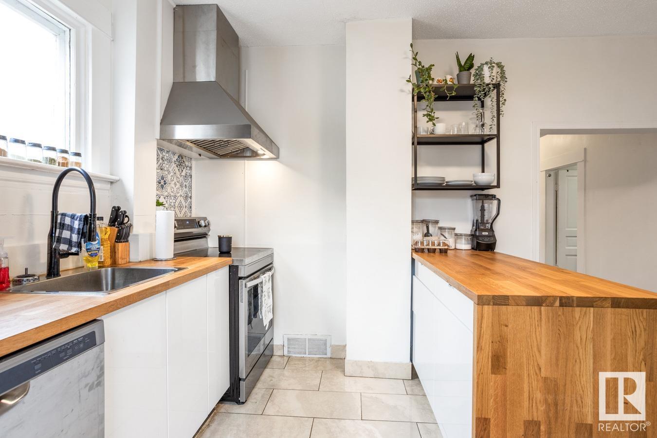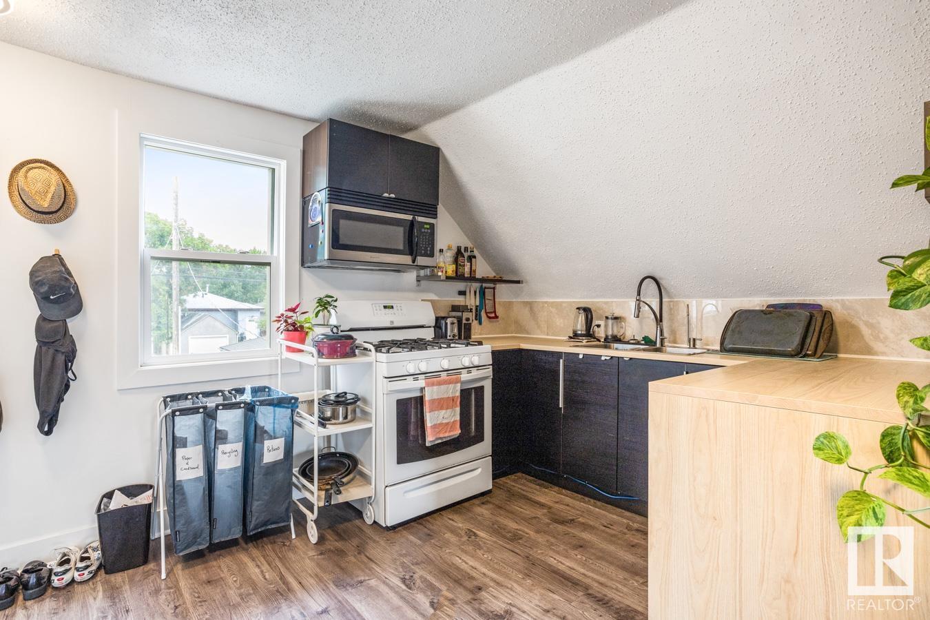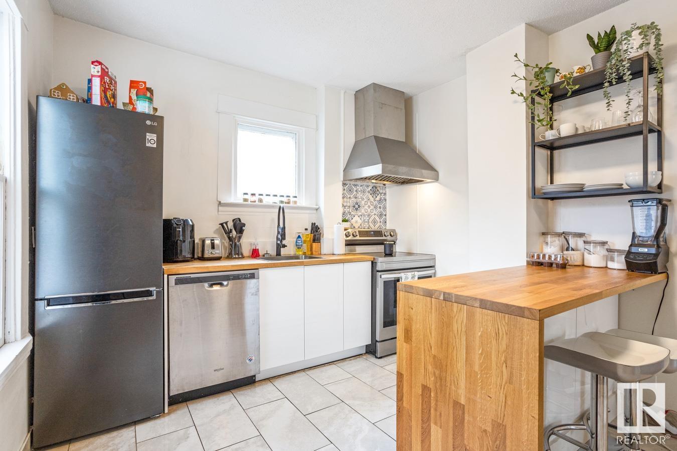 Unique opportunity with this 2 storey in Ritchie! The main floor is brightly laid out with a spacious entrance that leads to the open living room, dining room and kitchen with stainless steel appliances, open shelves, white cabinets and butcher block countertops. 2 bedrooms and a 5-piece bathroom complete this level. The huge mud room serves as the laundry room and separate entrance to the upper level which contains a second living room, second kitchen, and an additional bedroom with a 4-piece ensuite. The kitchen is open to the dining area and living room. The bedroom is a nice size and offers a 4-piece ensuite. South facing back yard with a deck, fenced off garden area, garage and plenty of parking. Great Ritchie location just down the street from trendy cafes, restaurant, ice cream shop and shopping. A short walk to the Mill Creek Ravine where you can enjoy the beautiful trail system year-round. Near schools and minutes to the University of Alberta and Downtown. (id:22211)