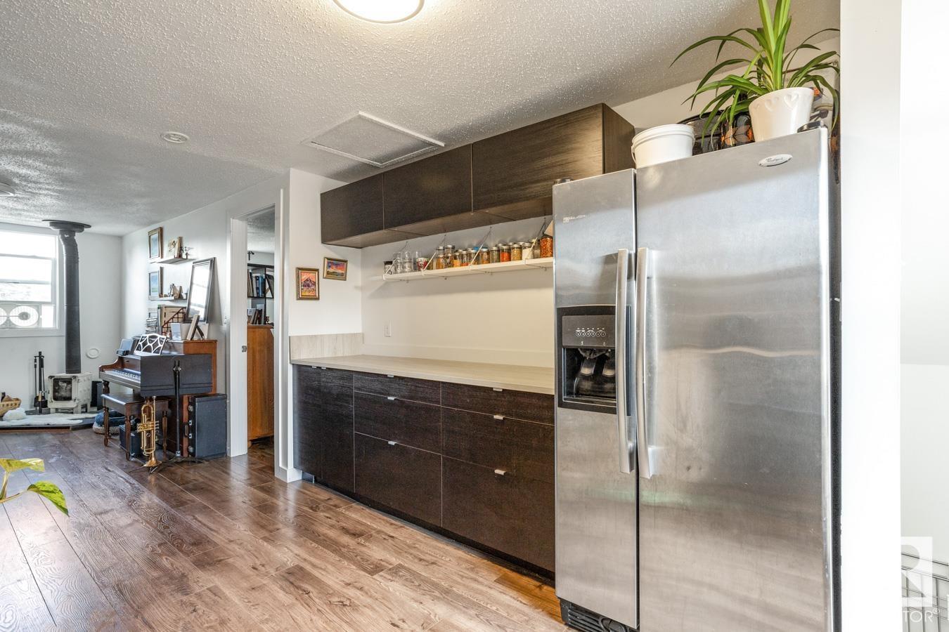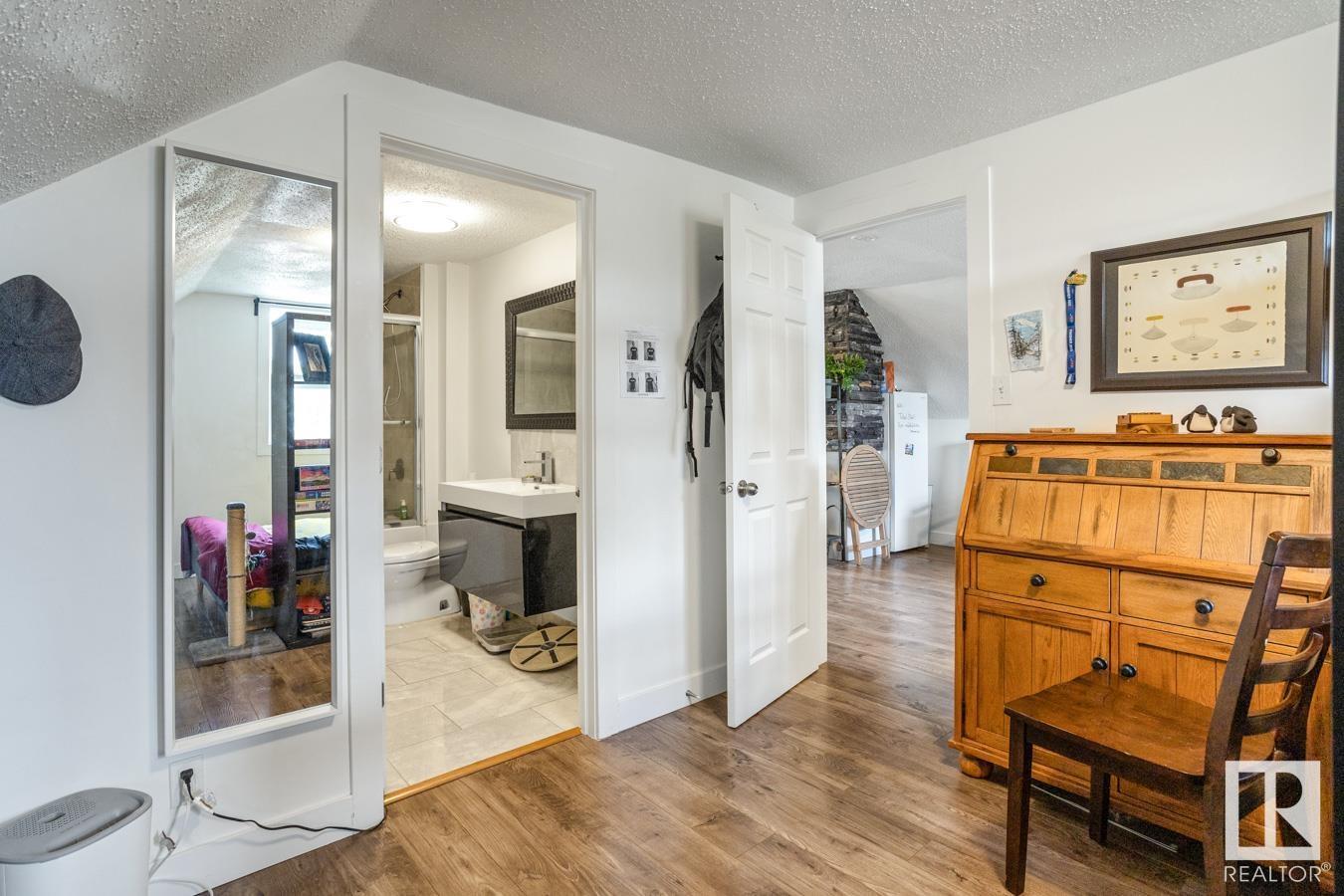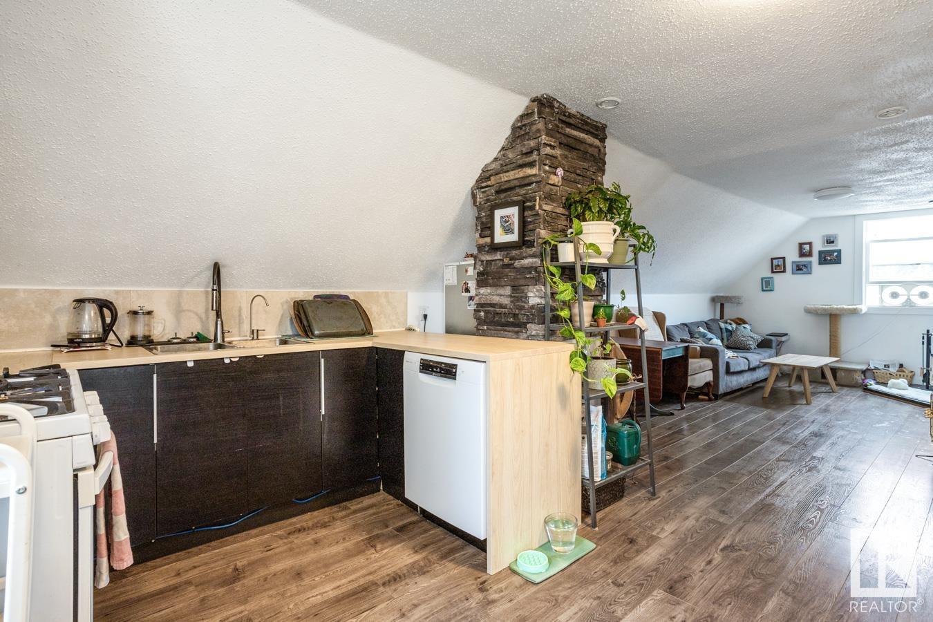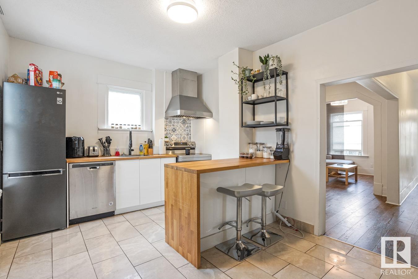 Unique opportunity with this 2 storey in Ritchie! The main floor is brightly laid out with a spacious entrance that leads to the open living room, dining room and kitchen with stainless steel appliances, open shelves, white cabinets and butcher block countertops. 2 bedrooms and a 5-piece bathroom complete this level. The huge mud room serves as the laundry room and separate entrance to the upper level which contains a second living room, second kitchen, and an additional bedroom with a 4-piece ensuite. The kitchen is open to the dining area and living room. The bedroom is a nice size and offers a 4-piece ensuite. South facing back yard with a deck, fenced off garden area, garage and plenty of parking. Great Ritchie location just down the street from trendy cafes, restaurant, ice cream shop and shopping. A short walk to the Mill Creek Ravine where you can enjoy the beautiful trail system year-round. Near schools and minutes to the University of Alberta and Downtown. (id:22211)
