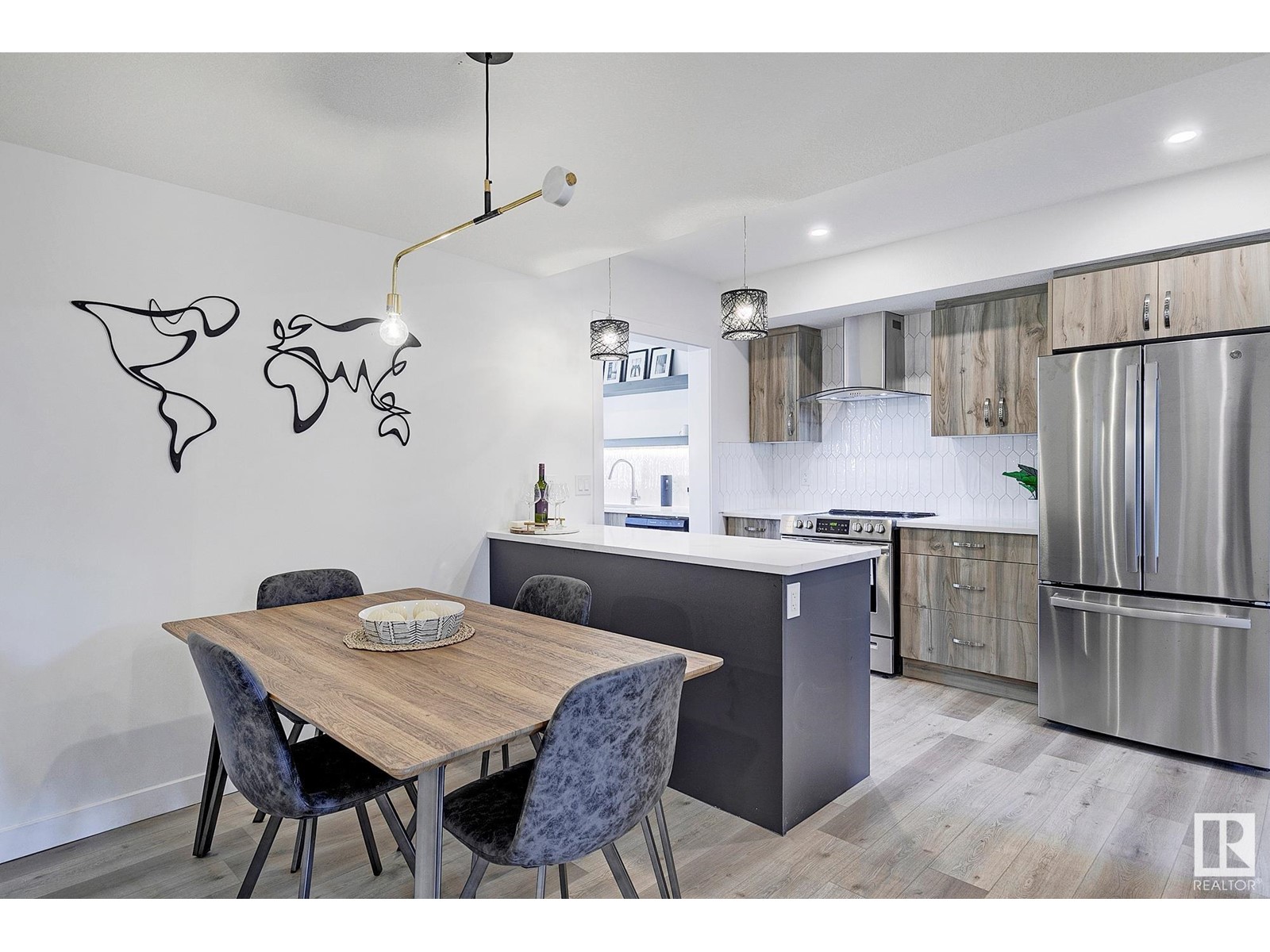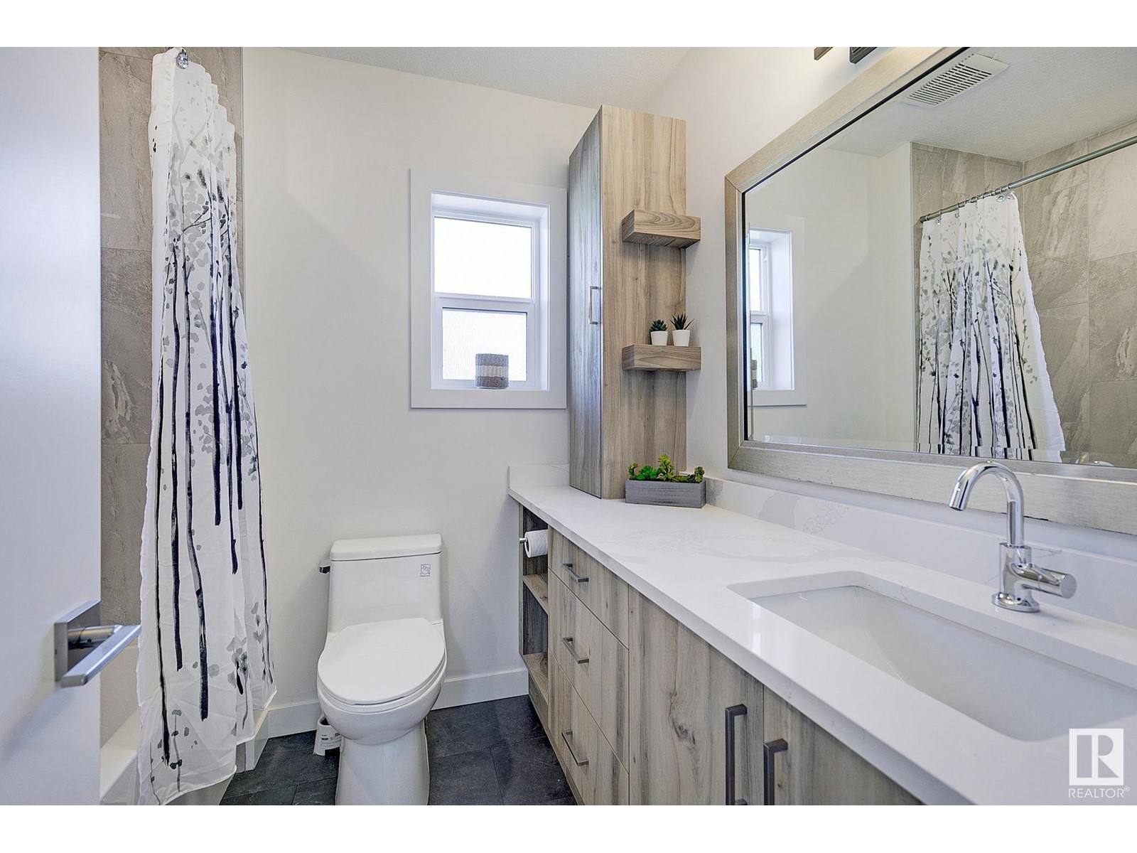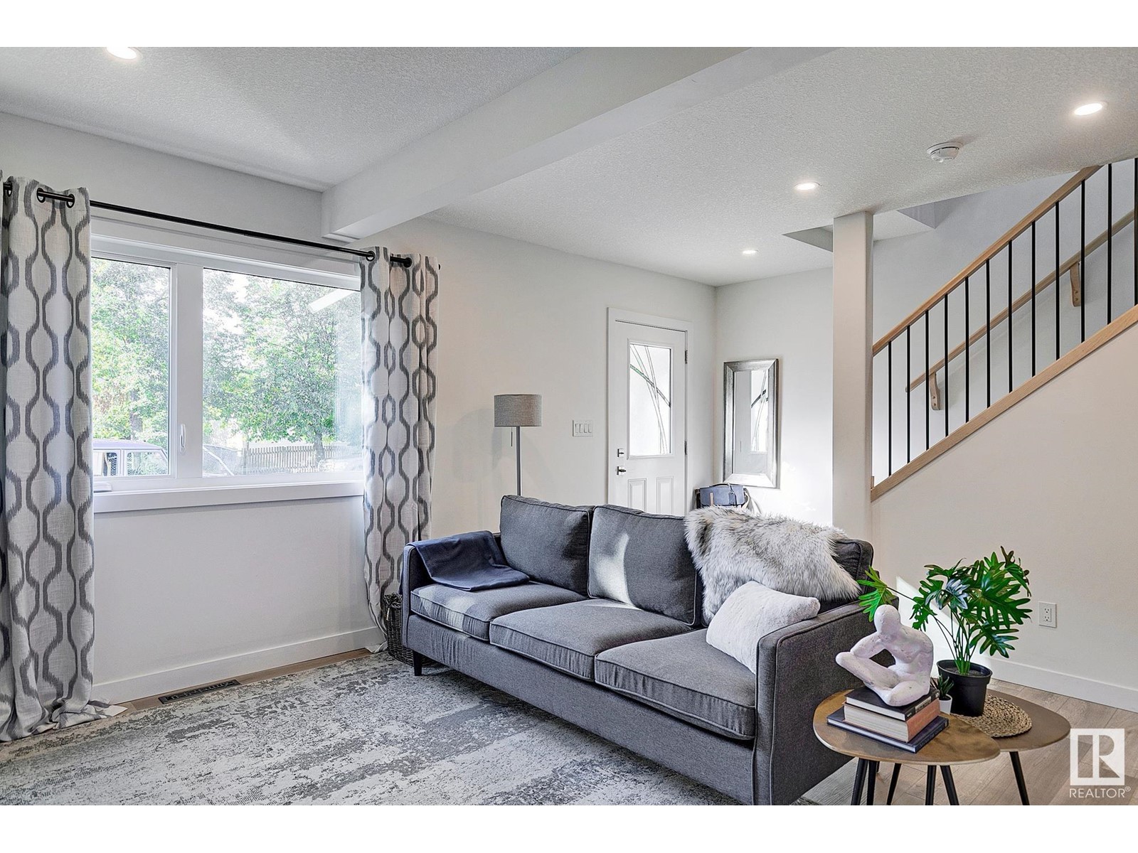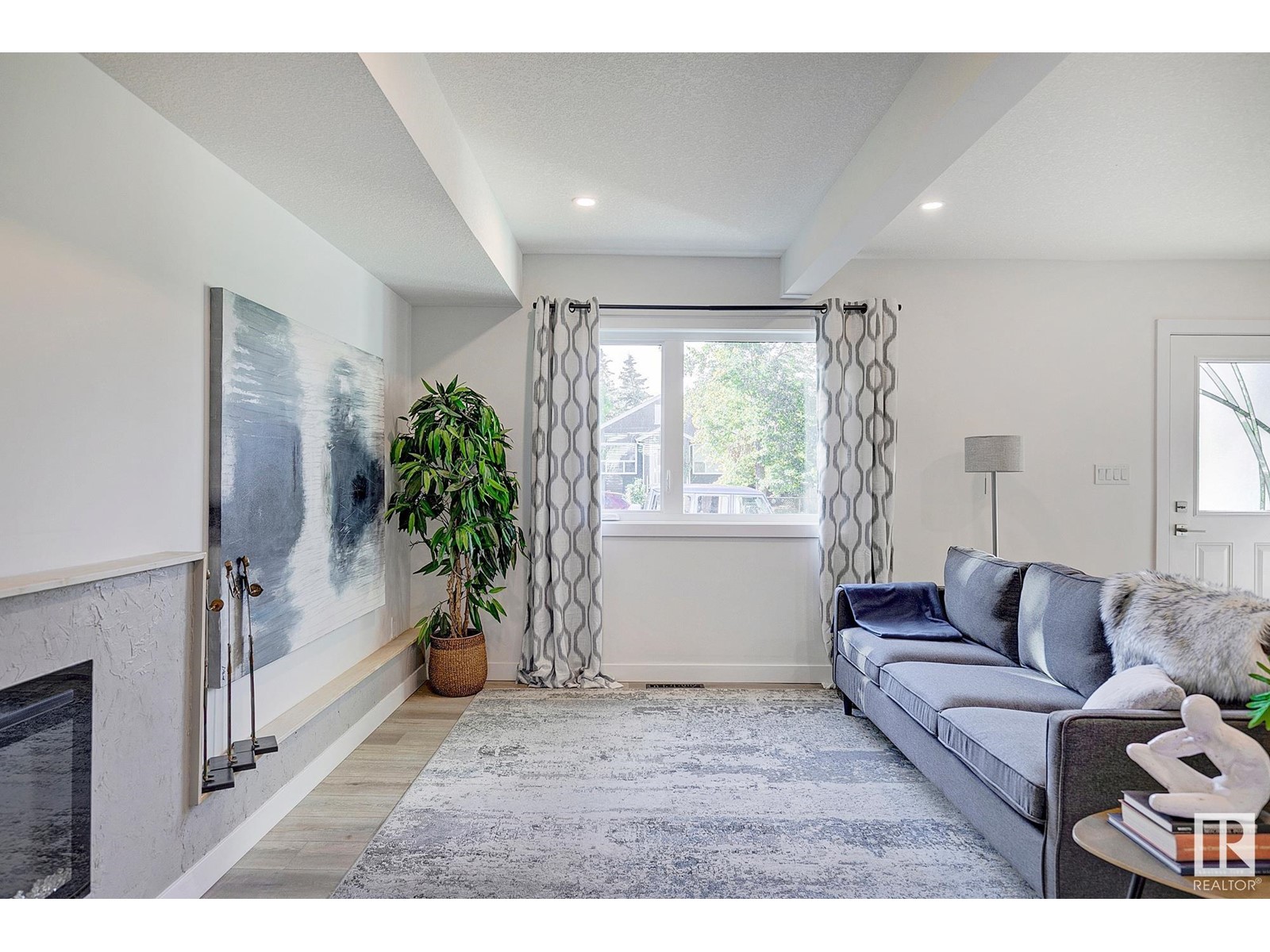 BEAUTIFULLY RENOVATED! Charming 2 storey perfect for living & entertaining! Enjoy hosting company in your contemporary kitchen with stainless appliances, quartz counters, an expansive peninsula & formal dining room. Spend quiet mornings in the cozy breakfast nook w/built in bench. Bright living room has large picture window allowing tons of natural light into the home plus convenient yet stylish electric fireplace. Upstairs houses 3 bedrooms including a generous size master w/private balcony. Second bedroom has a unique built-in bed. This level is complete w/modern 4pce bath. Finished basement offers a comfortable family room, an additional bedroom/den, 3pce bath, laundry & storage. Featuring a ton of upgrades including new shingles'23, upgraded windows, furnace & hot H2O tank, new double car garage, mud room with built-in cabinetry & sunny south facing front deck. Come live in this mature neighbourhood close to river valley & trails! Minutes from Ritchie Market & vibrant Whyte Avenue. HOME SWEET HOME! (id:22211)