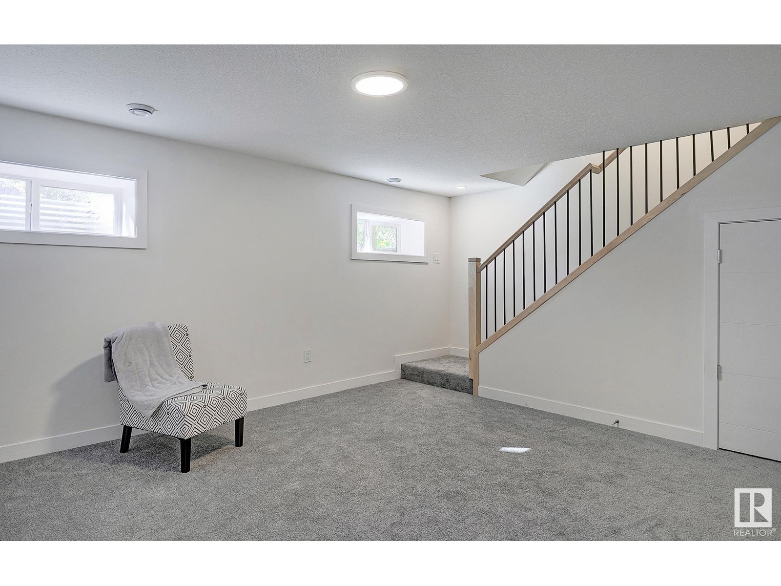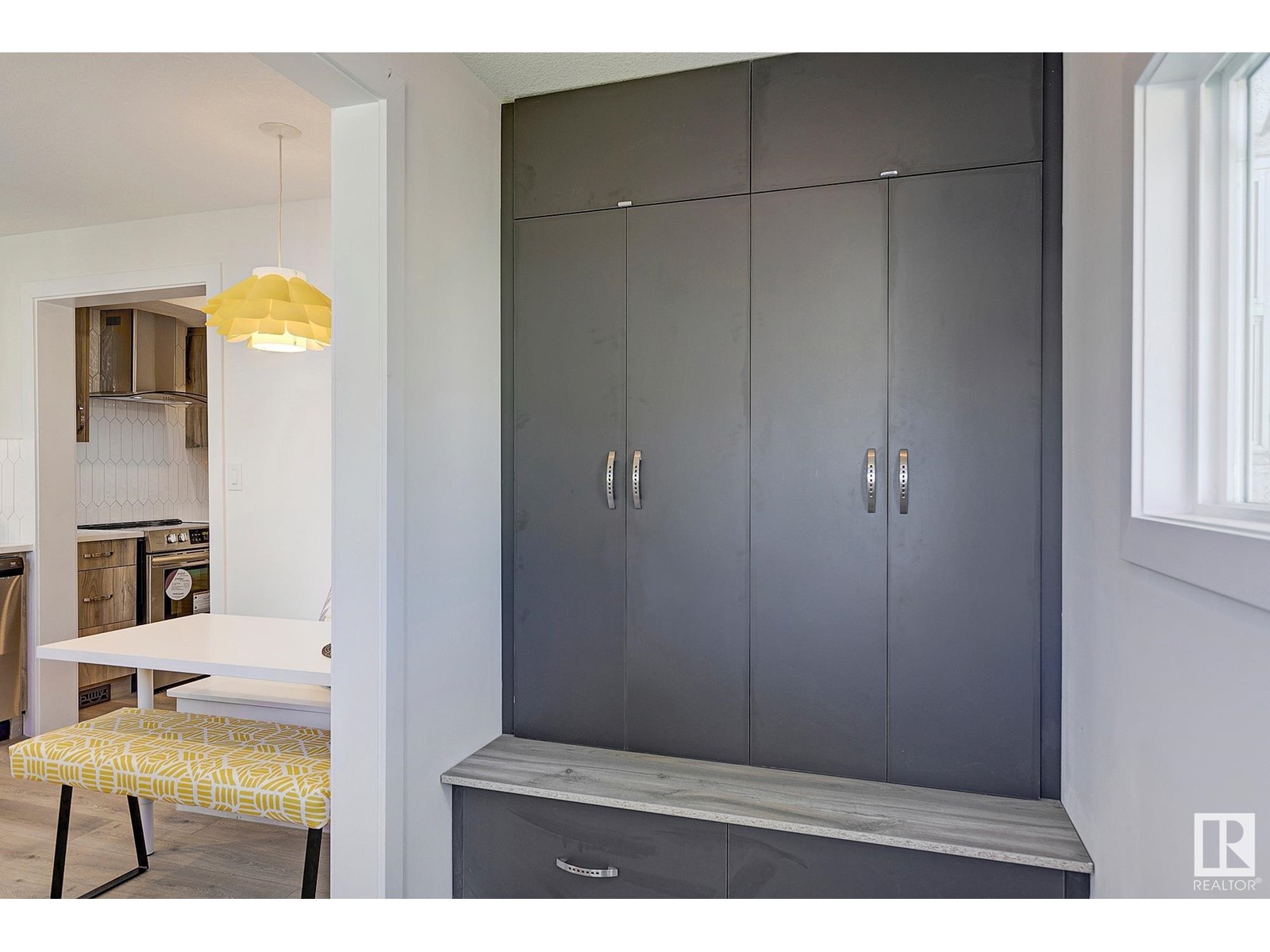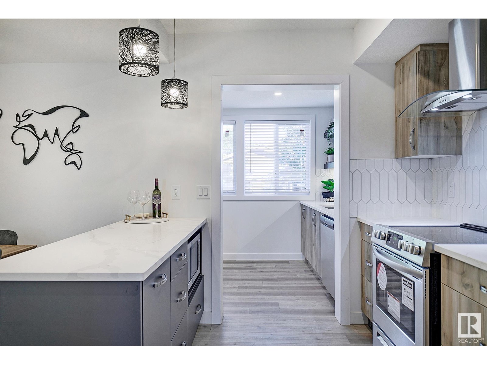 BEAUTIFULLY RENOVATED! Charming 2 storey perfect for living & entertaining! Enjoy hosting company in your contemporary kitchen with stainless appliances, quartz counters, an expansive peninsula & formal dining room. Spend quiet mornings in the cozy breakfast nook w/built in bench. Bright living room has large picture window allowing tons of natural light into the home plus convenient yet stylish electric fireplace. Upstairs houses 3 bedrooms including a generous size master w/private balcony. Second bedroom has a unique built-in bed. This level is complete w/modern 4pce bath. Finished basement offers a comfortable family room, an additional bedroom/den, 3pce bath, laundry & storage. Featuring a ton of upgrades including new shingles'23, upgraded windows, furnace & hot H2O tank, new double car garage, mud room with built-in cabinetry & sunny south facing front deck. Come live in this mature neighbourhood close to river valley & trails! Minutes from Ritchie Market & vibrant Whyte Avenue. HOME SWEET HOME! (id:22211)