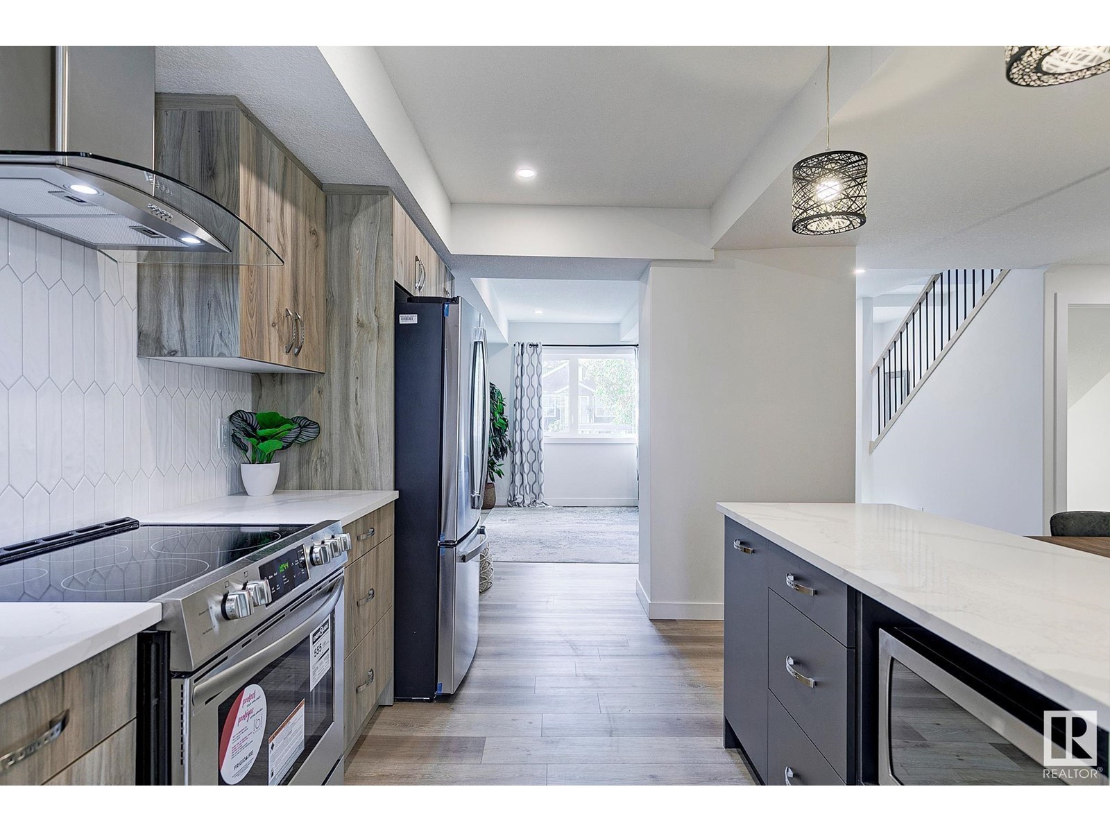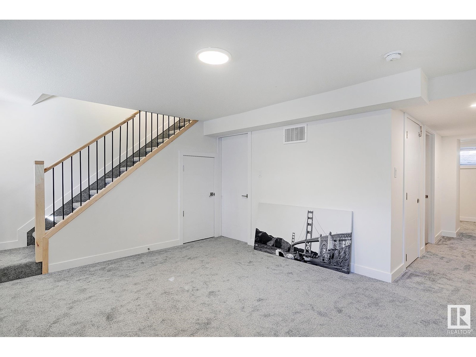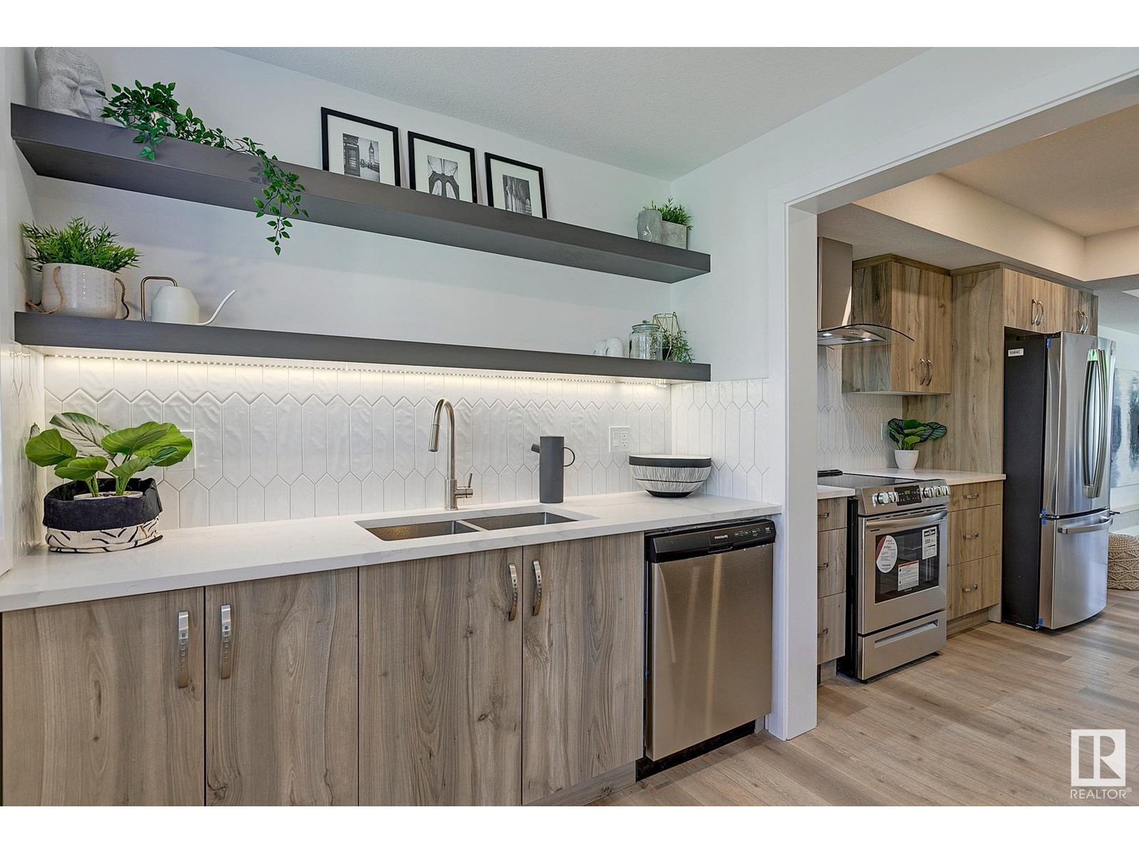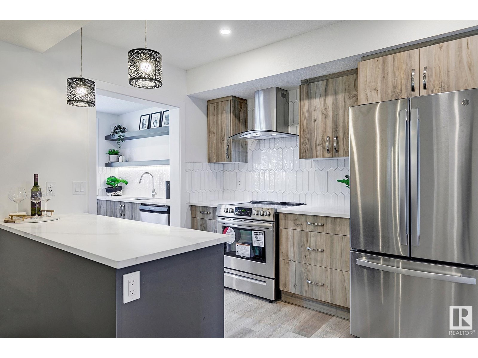 BEAUTIFULLY RENOVATED! Charming 2 storey perfect for living & entertaining! Enjoy hosting company in your contemporary kitchen with stainless appliances, quartz counters, an expansive peninsula & formal dining room. Spend quiet mornings in the cozy breakfast nook w/built in bench. Bright living room has large picture window allowing tons of natural light into the home plus convenient yet stylish electric fireplace. Upstairs houses 3 bedrooms including a generous size master w/private balcony. Second bedroom has a unique built-in bed. This level is complete w/modern 4pce bath. Finished basement offers a comfortable family room, an additional bedroom/den, 3pce bath, laundry & storage. Featuring a ton of upgrades including new shingles'23, upgraded windows, furnace & hot H2O tank, new double car garage, mud room with built-in cabinetry & sunny south facing front deck. Come live in this mature neighbourhood close to river valley & trails! Minutes from Ritchie Market & vibrant Whyte Avenue. HOME SWEET HOME! (id:22211)