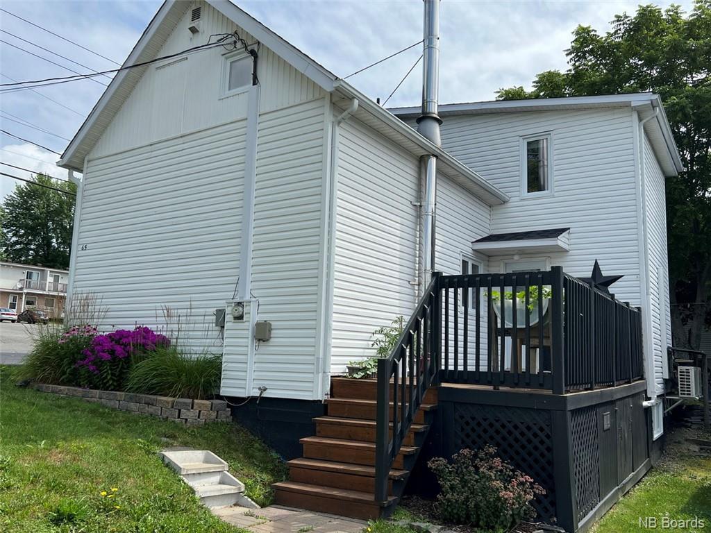 Property very well located, close to the following schools: primary, secondary, CCNB, UMCE as well as the Edmundston hospital. The landscaping is complete with fire pot space, gardening area, balcony at the back and at the front, paved driveway. The interior is a comfort due to the 3 heat pumps and a quite charming decor. On the 2nd floor, you will find two bedrooms, one of which has a walk-in closet and a large full bathroom. On the ground floor, its open-concept space will allow you to entertain your guests while cooking in a spacious kitchen. You will like the basement which gives you additional storage. Whether you are looking for a first home or investing to accommodate students, this property is perfect for you! (id:22211)