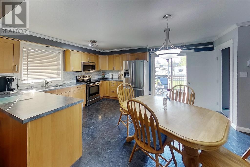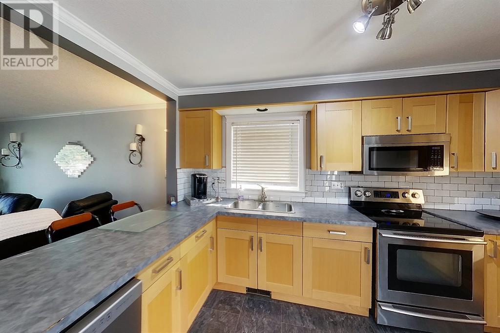 Fantastic opportunity for first-time buyers, investors, or empty nesters! This updated bungalow offers a beautiful open floorplan designed main level with functional kitchen (updated cabinetry, SS Appliances), breakfast nook and separate dining room area with patio doors to the back deck, living room with a large South facing window and wood fireplace, master bedroom with 2pc ensuite, 2 additional bedrooms and a 4pc bathroom. The basement is fully developed with another full kitchen, dining room, large family/games room, bedroom, 4pc bathroom and separate laundry room. This home has a great layout with a back door split that allows for a separate entrance to the basement for entry to the suite. Huge, landscaped backyard to enjoy outdoor activities, a double & single detached garage, front paved driveway and back alley access for additional parking and RV parking. (id:22211)