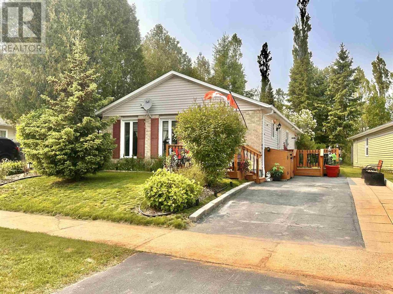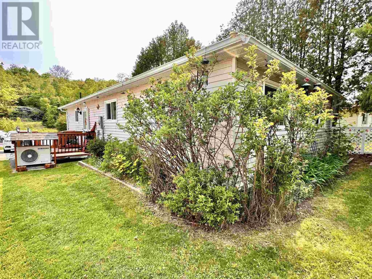 What a great place to call home! This impeccably maintained 2 bedroom, 1 bathroom slab bungalow is located in the newer subdivision of Elliot Lake. As you pull into the driveway of this beautiful home, you will be greeted by impeccable landscaping, trees, and flowers showing pride of ownership! The main floor is a generous size and is filled with light! A galley kitchen, open concept living room/dining room, a generous size primary suite, a second bedroom as well as a utility room main floor laundry is all nested in this home! What else can you ask? Updated… Yes, this house has seen many updates over the years, including roof (2020), crown molding (2024), fireplace, laminate flooring and updated plumbing, new toilet, paint and so much more. Conveniently located close to ATV/snowmobile trails as well as walking trails. Close to Nordic Lake and is a minute walk away from the local convenience store. Don’t miss out and booked a showing today! (id:61201)