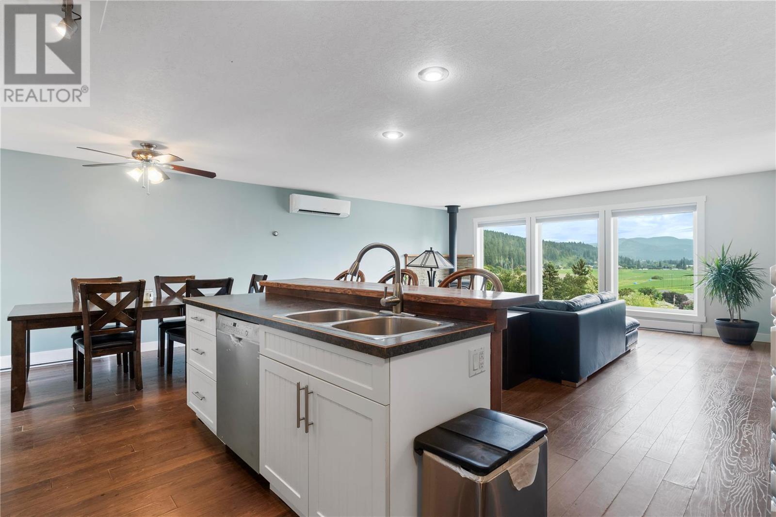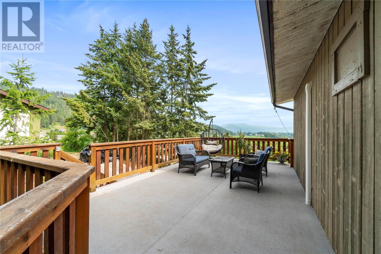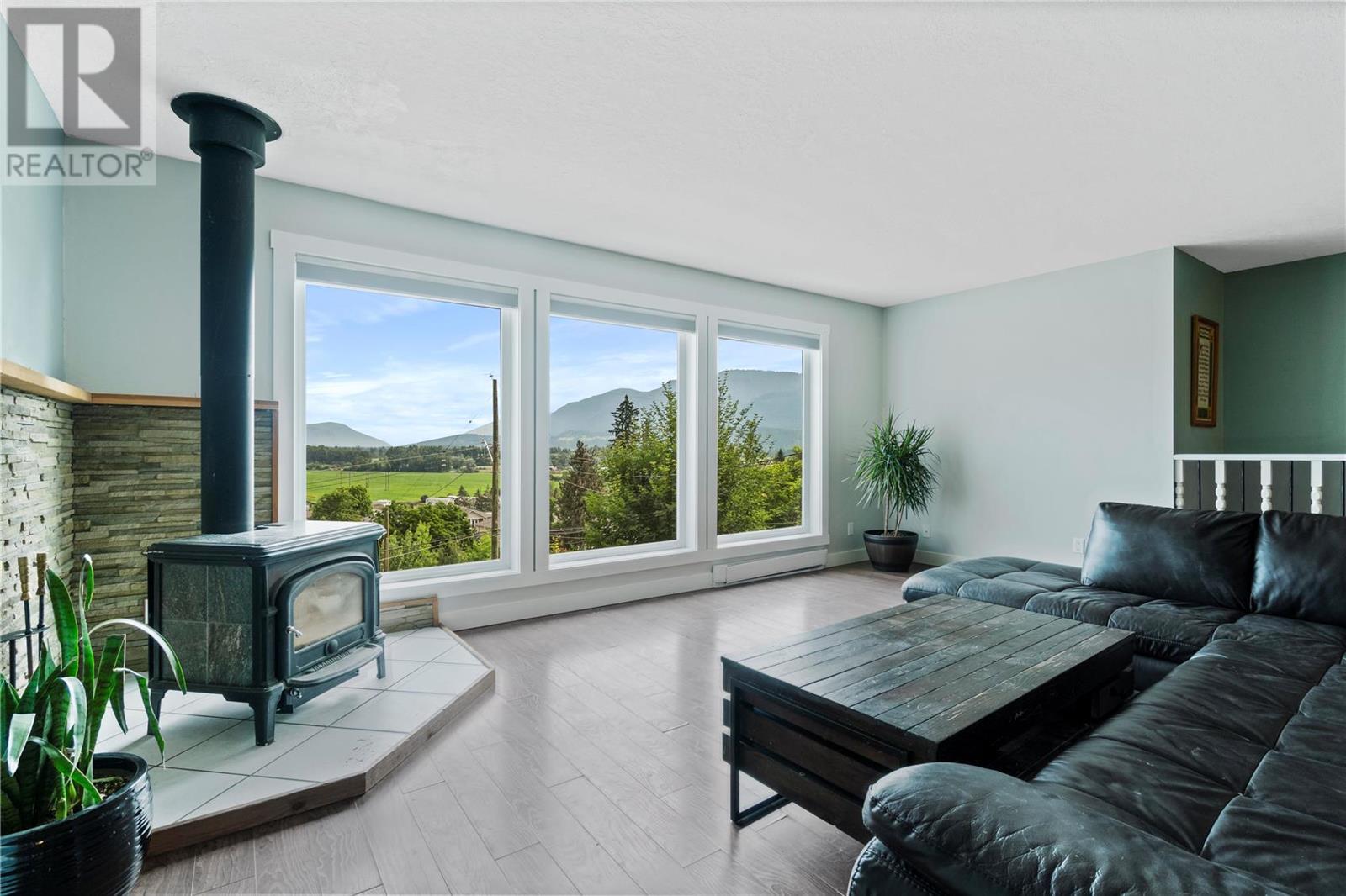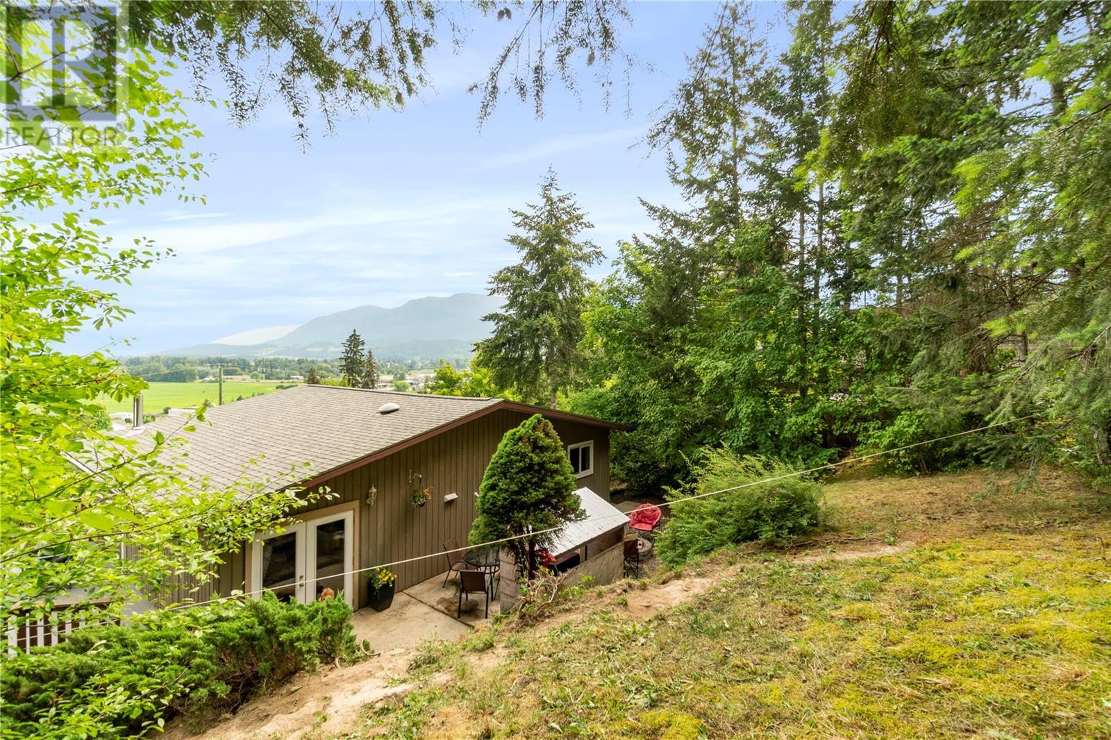 INVESTMENT ALERT! Priced under BC Assessment Value for a quick sale and possession! Spectacular view of Enderby cliffs and valley to the North East & West. This 3 bedroom and 2 bathroom home has an open floor plan with lots of light and a wood stove in living room. Garden doors off the dining room leads you to the private patio which backs onto to a treed backyard. Garden shed included. Most recent updates are a new Roof in 2015, Mini Split Heat pump 2021, Windows June 2019, Bali Blinds 2015. Listing price reflects the laminate flooring requires replacement and the deck requires a repair due to a defective seam. Offer presentation scheduled for July 06, 2023 after 2:00 PM. Irrevocable Direction Regarding presentation of Offers on file. (id:22211)