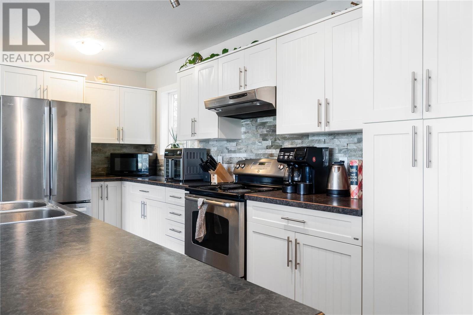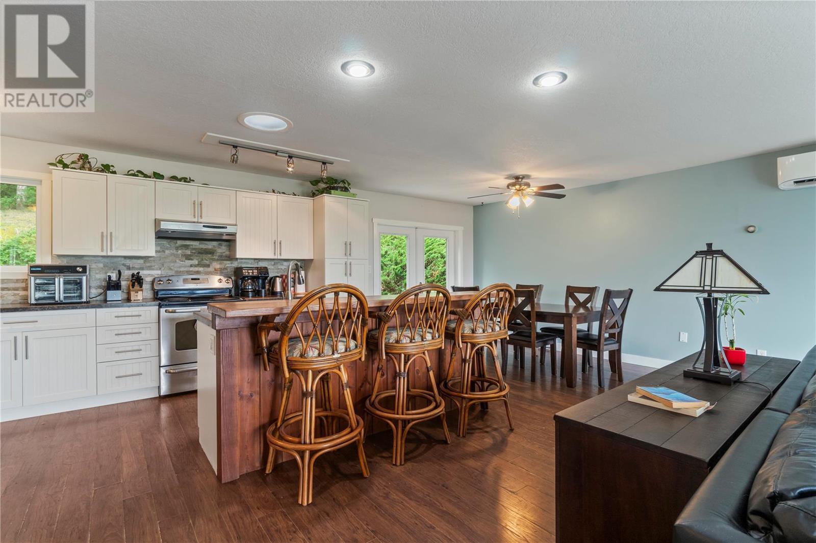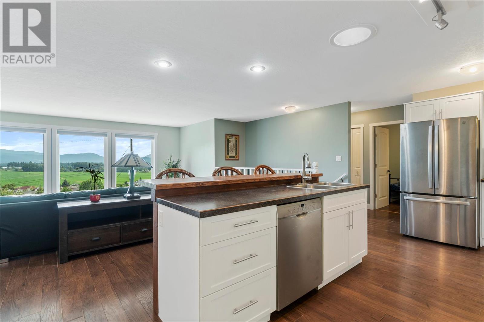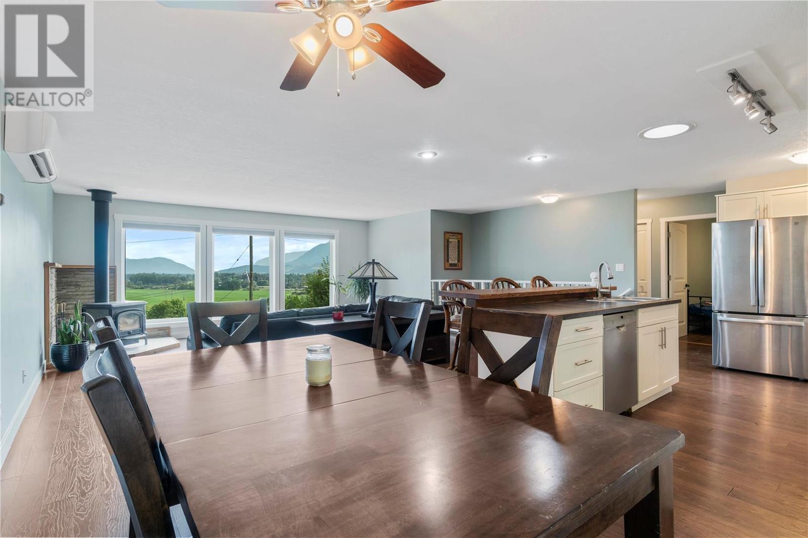 INVESTMENT ALERT! Priced under BC Assessment Value for a quick sale and possession! Spectacular view of Enderby cliffs and valley to the North East & West. This 3 bedroom and 2 bathroom home has an open floor plan with lots of light and a wood stove in living room. Garden doors off the dining room leads you to the private patio which backs onto to a treed backyard. Garden shed included. Most recent updates are a new Roof in 2015, Mini Split Heat pump 2021, Windows June 2019, Bali Blinds 2015. Listing price reflects the laminate flooring requires replacement and the deck requires a repair due to a defective seam. Offer presentation scheduled for July 06, 2023 after 2:00 PM. Irrevocable Direction Regarding presentation of Offers on file. (id:22211)