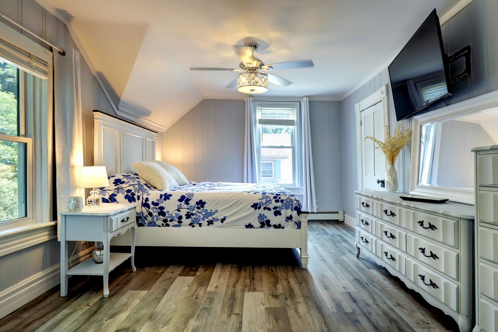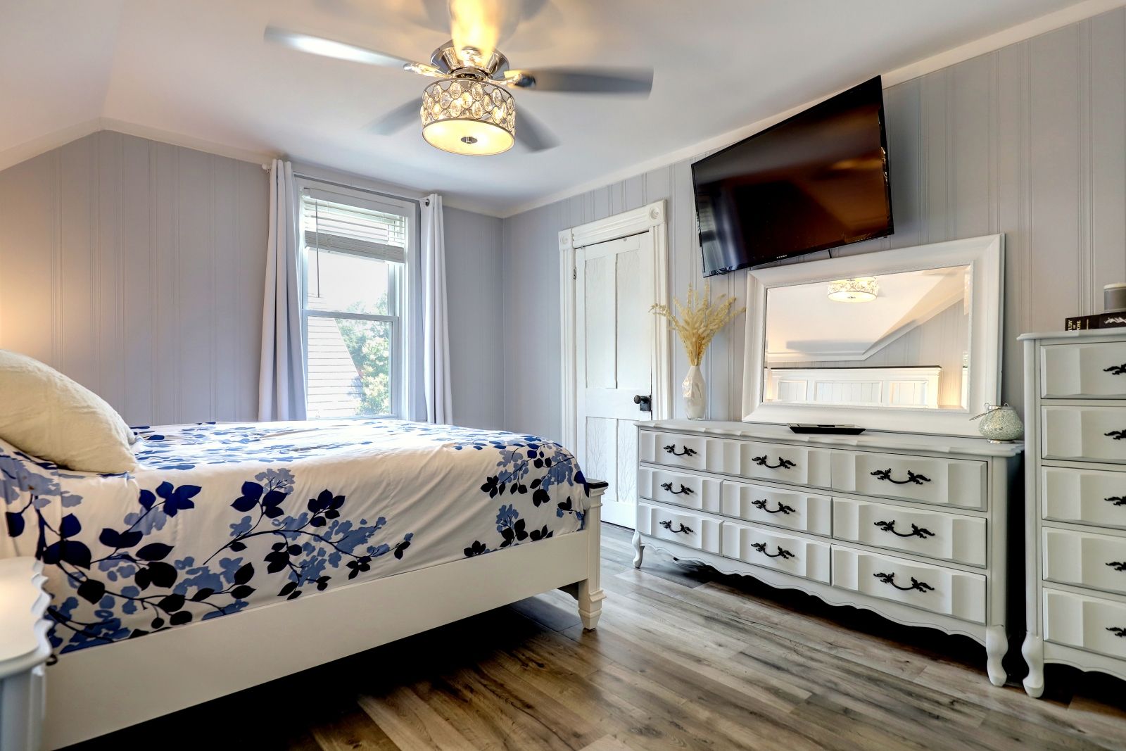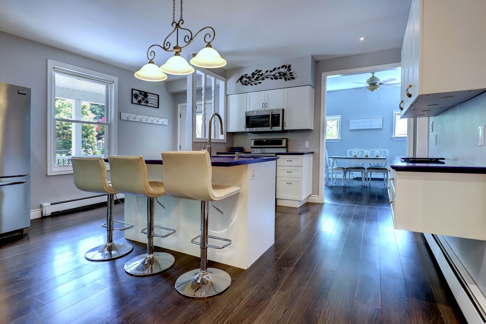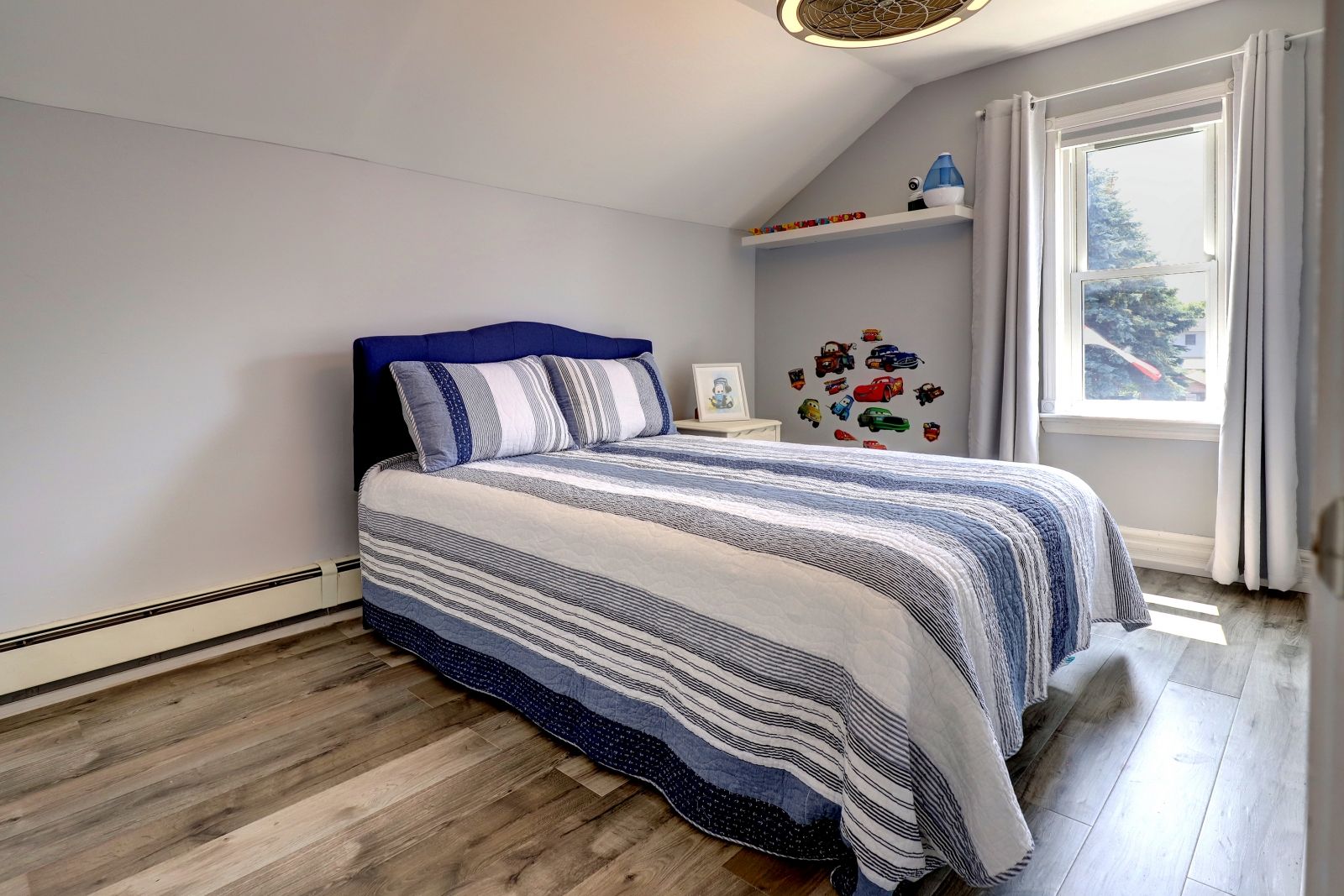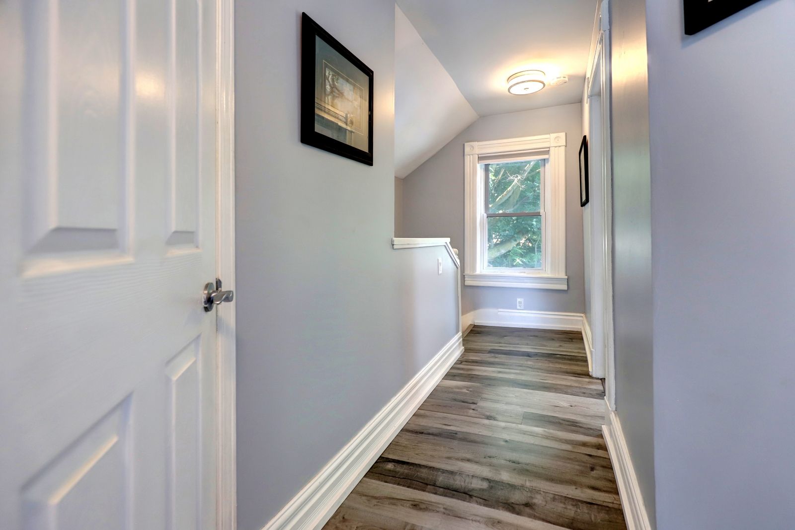 Mixed-use zoning may also permit professional services, a home-based or live-work business or Legal Duplex Opportunities.This home features 3 good size bedrooms and a family bathroom on the second floor. The main floor features a renovated kitchen with centre island & stainless-steel appliances. The open concept allows you to connect with the living room and see out to your fully fenced yard with mature trees. A double door pantry is perfect for a growing family. There is a second full bath on the main floor and a large laundry room with great storage, folding and clothes hanging areas. Parking for 6 cars on the paved pad is ideal. A covered front porch is fantastic for so many reasons. There is a storage shed in back for the garden/snow tools. Here are a few of the completed renovations. Kitchen, Bathrooms, Shingles and blown in attic insulation 2020. Hydronic Baseboard Boiler 2015. Heat Pump on main floor/heat & air 2021. Pleasure to show. Clean and bright. Walk to groceries/school200AMP electrical panel 2015. Windows & Doors replaced over past 10 yrs. Water Heater is Gas-Rented. Lot is L shape 54 ft w x 168 ft deep w/ mature trees & has a great location to add garage. Tiny portion of front lot has CVC conservation.