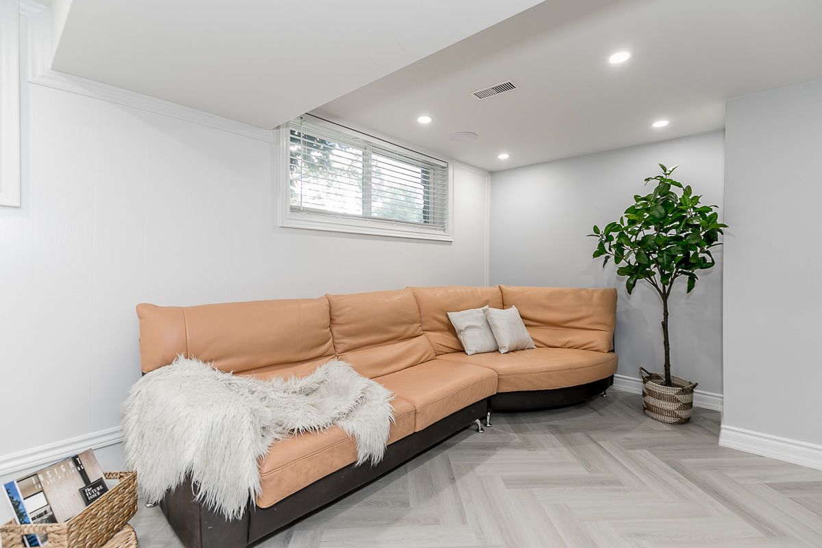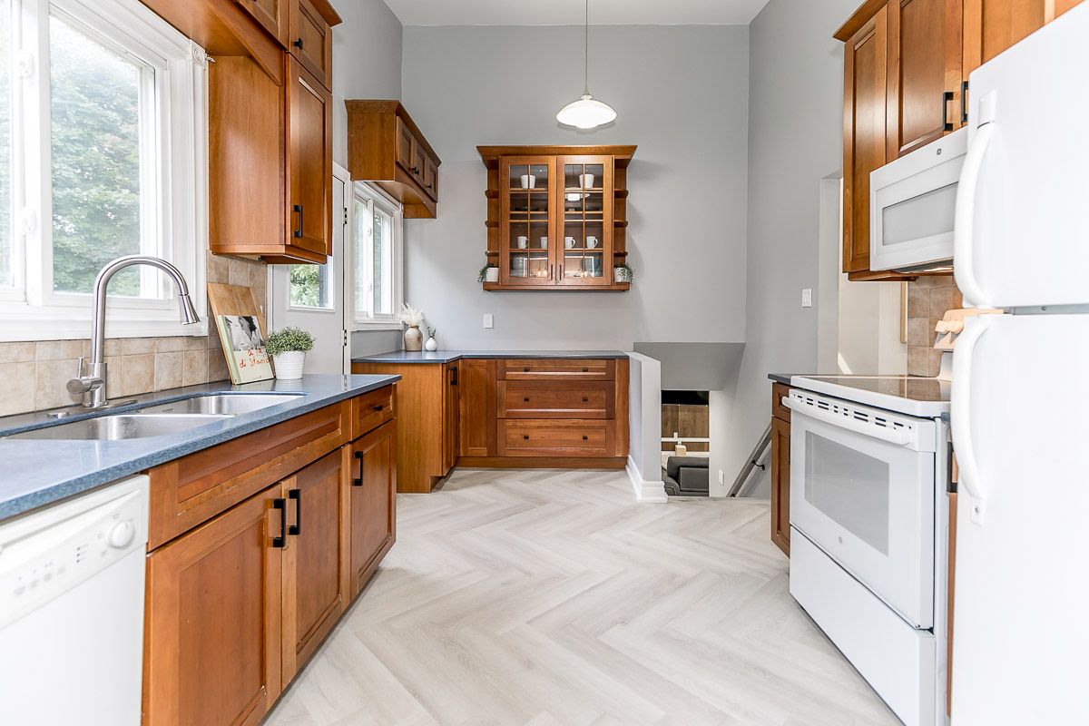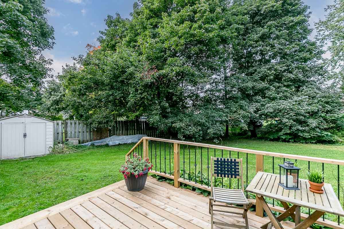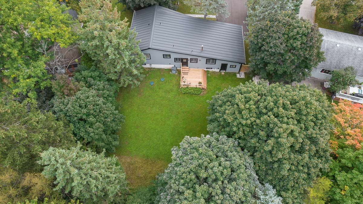 As you step in, the sleek herringbone flooring sets the stage for the elegance that defines this home. Pot lights throughout create an inviting & well-lit ambiance. The living area boasts soaring vaulted ceilings, creating an airy & open atmosphere. Large windows flood the space with natural light, offering views of the mature treed lot. Enjoy tranquil evenings on the deck, cooking with your built-in gas line, in your private oasis.