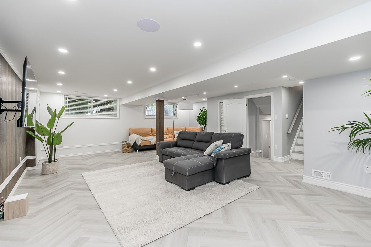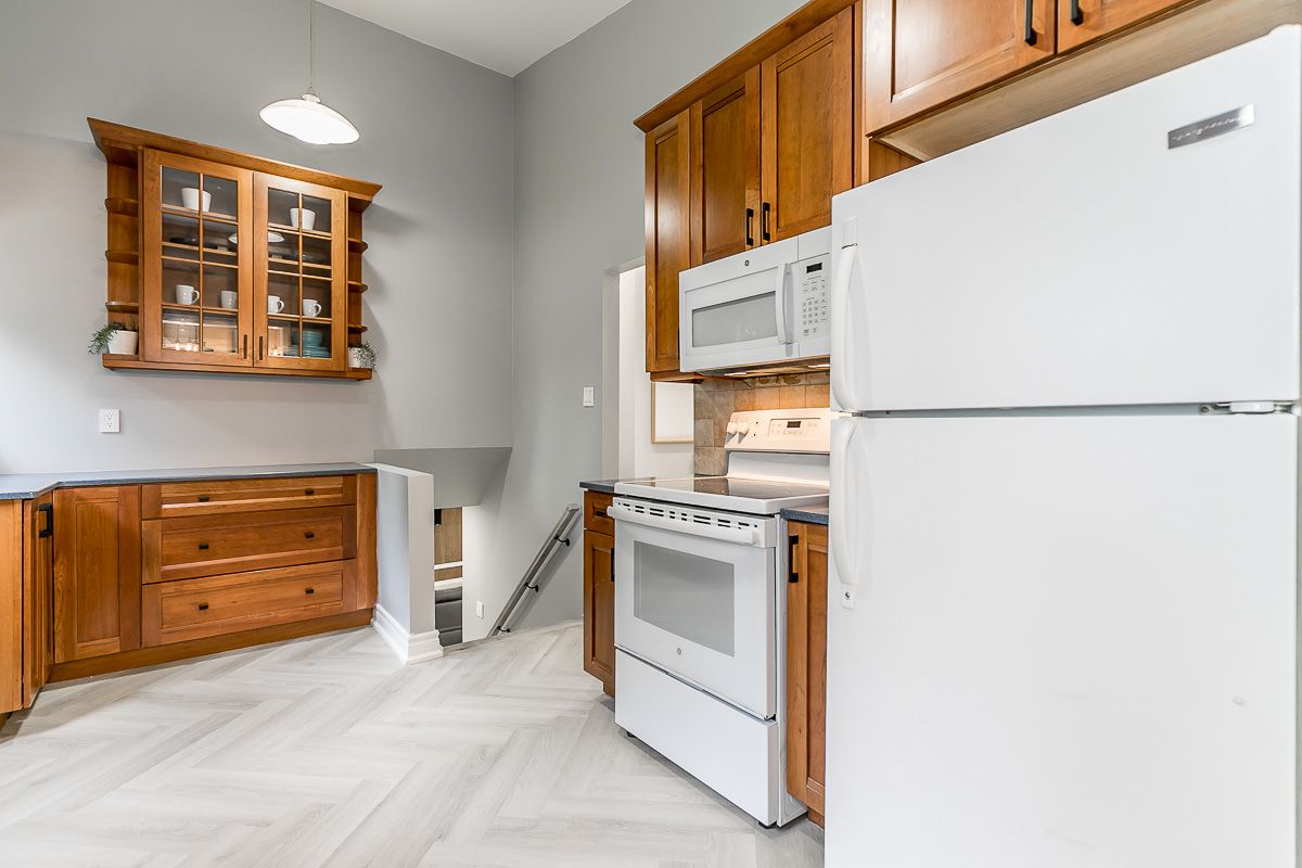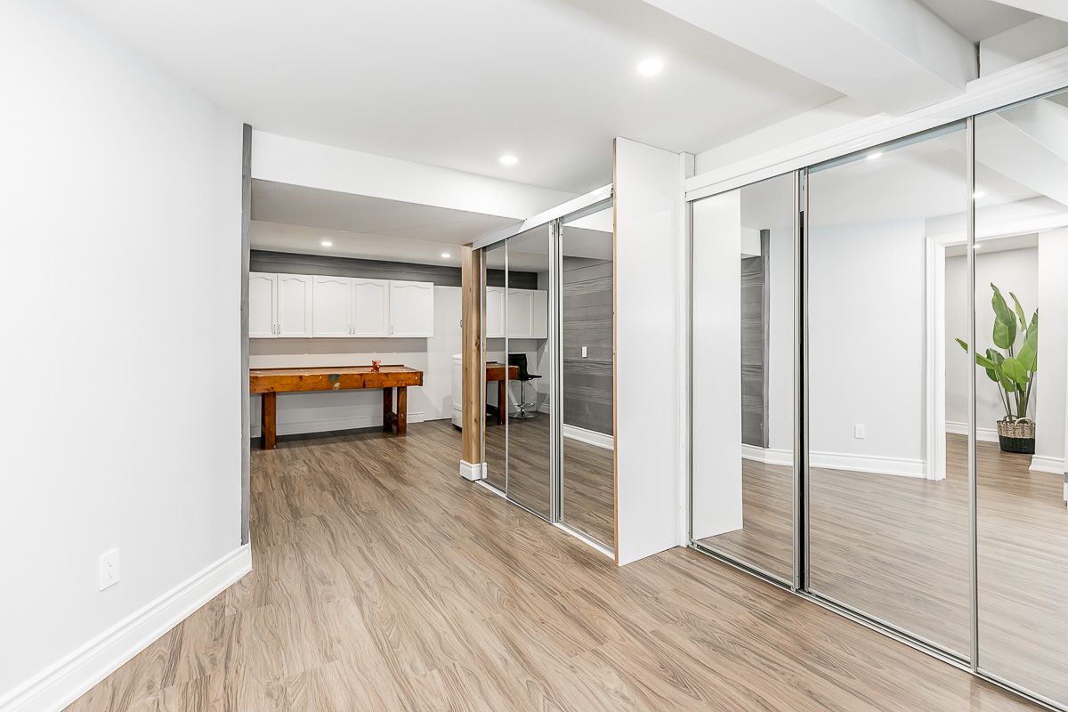 As you step in, the sleek herringbone flooring sets the stage for the elegance that defines this home. Pot lights throughout create an inviting & well-lit ambiance. The living area boasts soaring vaulted ceilings, creating an airy & open atmosphere. Large windows flood the space with natural light, offering views of the mature treed lot. Enjoy tranquil evenings on the deck, cooking with your built-in gas line, in your private oasis.