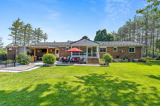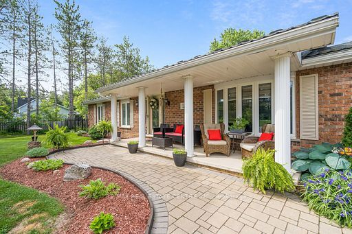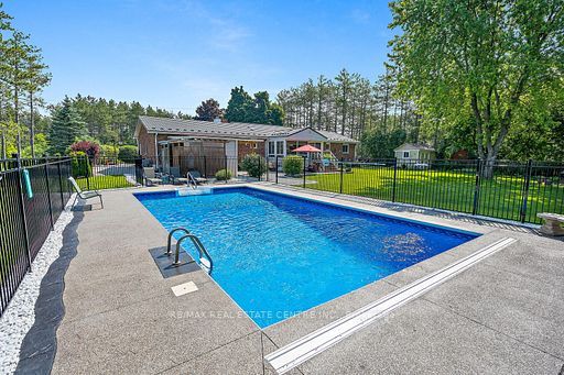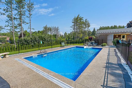 Set on the edge of the Pine ridge Estates this Custom Bungalow with 2 car garage set back from the road is a showstopper. With large open concept tiled kitchen with tall cabinets. Lighting above and below the cabinets, pot lights, as well as a skylight brings in so much sunshine to this already bright home. With 2+2 bedrooms, walk in closet, large master en-suite. Large dining room for guests. Glassed in sunroom with vaulted ceilings overlooking the entertainment area and treed backyard. 2 outdoor sitting / entertaining areas, 1 large, covered area for family bbq's. The covered bar area is ready for you to view for sports in any season. Custom Concrete patio with gardens surrounds the large pool area installed in 2019. 2018-Beautiful Front Door, Steel Roof (50 Yr Warrantee), Soffit, Facia, Solar Tube Into The Kitchen, Water Softener. 2017- En-Suite Update, Consistent Water 60Lb Pressure.2015 Sunroom.