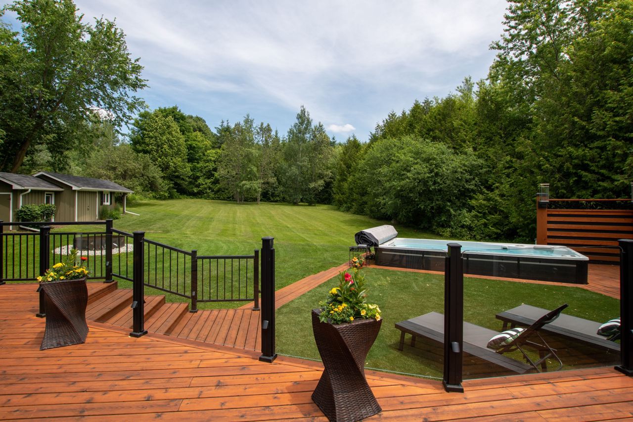 Stunning home with gorgeous property located on the edge of charming Erin. Spacious bungalow with large principal rooms with a great layout. Room for the whole family, plus room for in-laws or nanny in the separate main level self contained apartment, with its own kitchen, laundry and walkout to private deck or rent it out for some added income. Nothing of this immaculate home has been left out of the extensive renovations & upgrades. Hardwood floors, custom kitchen with Cambria quartz counters, slate flooring, island w/ pot filler, vaulted ceilings, finished rec room, outdoor kitchen w/ granite countertops & sink, outdoor heaters, solar panels, cedar decking, artificial turf, 19 ft swim spa, patterned walkways & steps with programmable heated pads so no salting or shoveling, lots of parking for you and you're guest. Truly one of a kind & must be seen to get the entire true feeling of what it would be like to live here. show this one to your fussiest buyers, they will be impressed.Has 4 heating options forced air oil furnace, propane f/p, wood f/p, and solar power ductless zoned heating and a/c, Huge wood shop or gym area hidden behind the two car garage. Propane backup generator runs entire home for days if needed