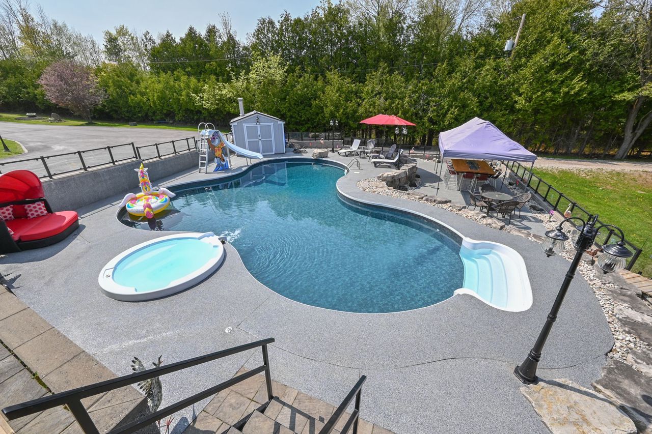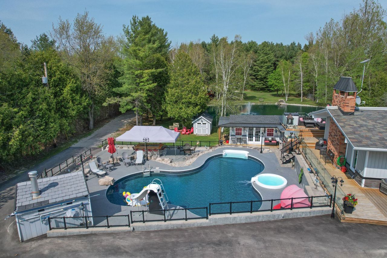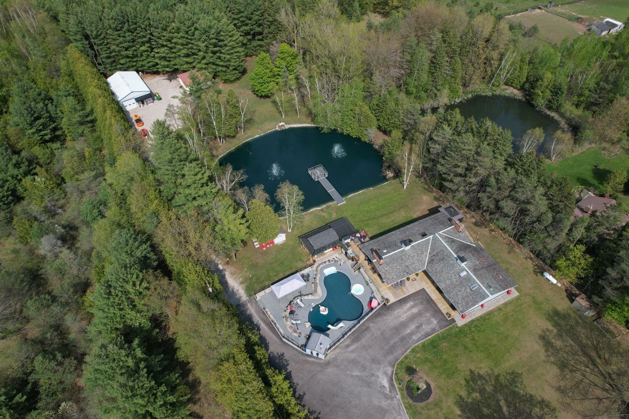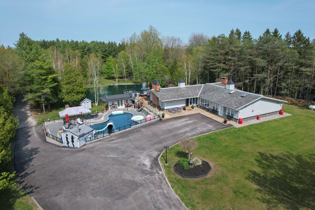 No Need For A Cottage When You Have Your Very Own Resort At Home! Beautiful Custom Wood Gates Welcome You To This Large 4,000 sq.ft (finished living space) Ranch Style Bungalow That Has Been Beautifully Updated Top To Bottom, No Detail Spared! Situated On 9.94 Acres Backing Onto The Forest W/ A Pathway To A Steam Elora Cataract Trail. Beautiful Views From Every Window And Walkout In This Home. Large Updated Kitchen Walks Out To The Deck And Features Views Of The Spring Fed Pond And Inground Pool! Beautiful Ceramic Tile And Engineered Hardwood Throughout The Main Floor. An Entertainers Dream Kitchen With An Oversized Island, 2 Sinks, Quartz Counter Tops And Cupboard Space Galore! Relax By The Fireplace, Watch A Movie In The Theatre Room, Or Play Some Pool In The Rec Room. 4 Beds, 3 Baths. Each Bedrm Has Its Own Walkout. Massive Primary Bed W/6Pc Ensuite And Walk In Closet Of Your Dreams!Long Driveway Leads To The Large Heated Shop Situated At The Back Of The Property, And A Bonus Bunkie. Home Also Features A Slate Roof, Beautiful Wood Fence, Geothermal Heating, Hot Tub And So Much More!