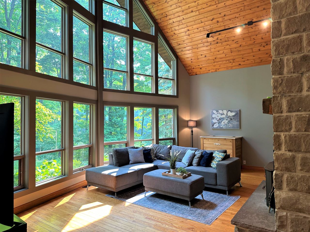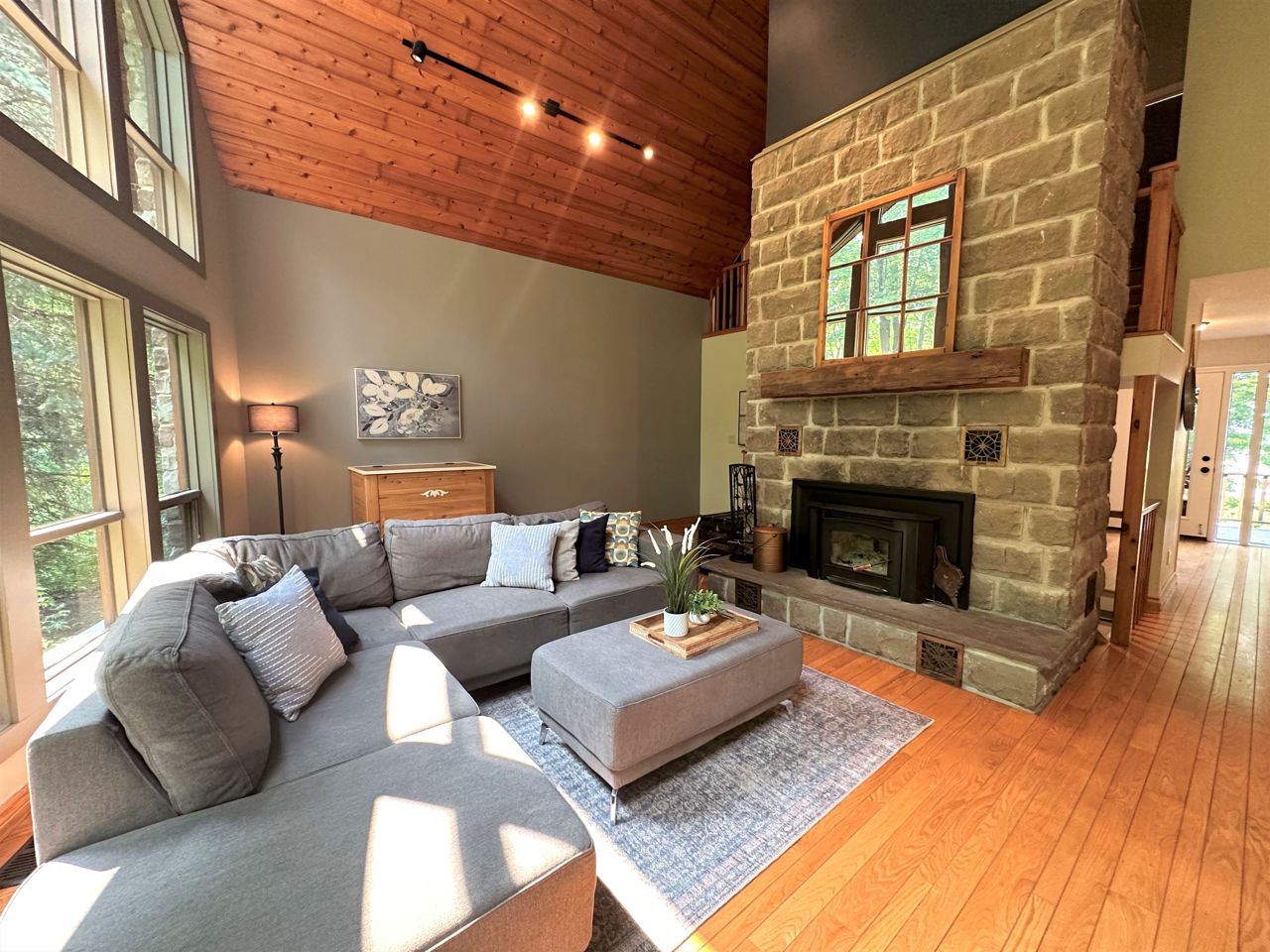 Floor/Ceil Fireplace Hardwood Floor Vaulted Ceiling
