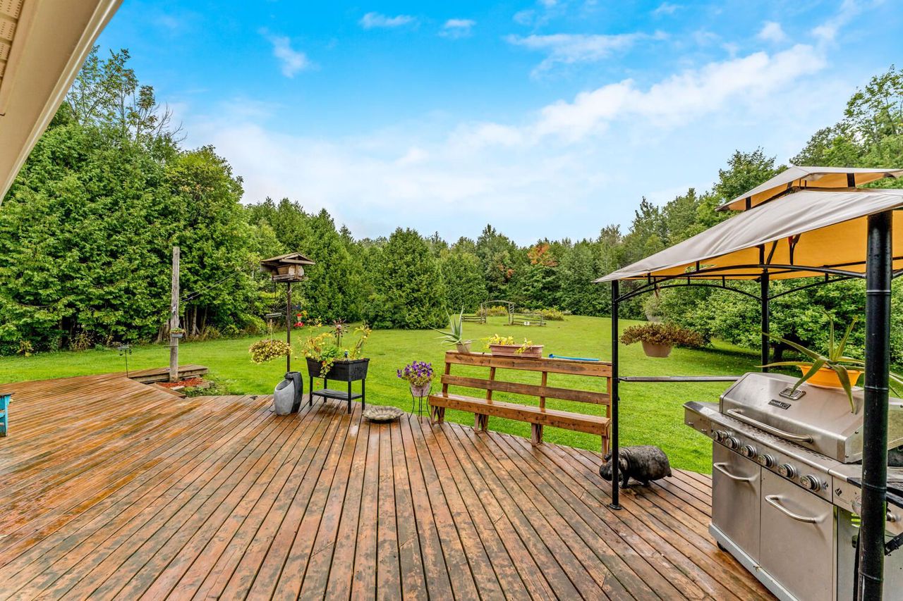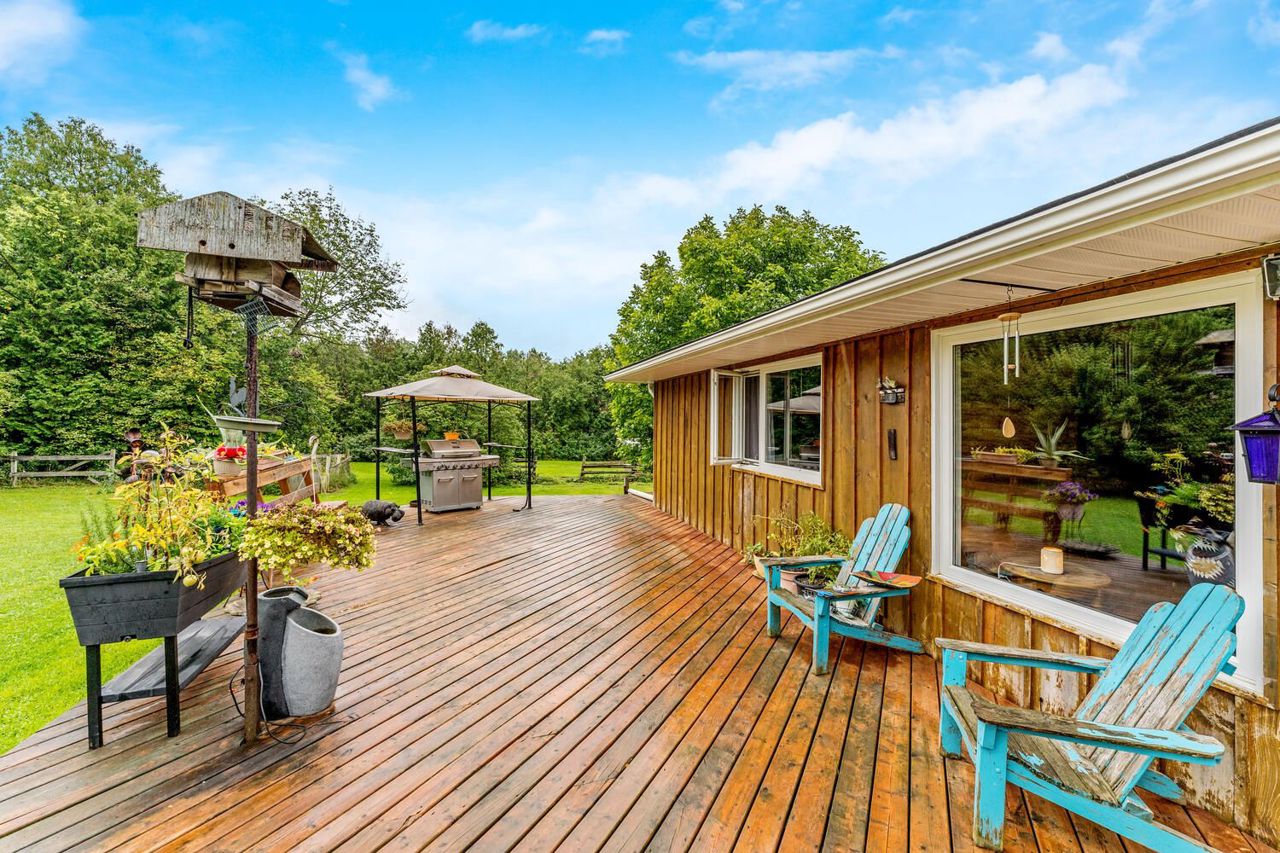 Experience Serene Living In This Picturesque Countryside Property, Spanning Across 22 Acres Of Lush Greenery. As You Make Your Way Down The Long Driveway, You'll Be Greeted By A Freshly Painted Bungalow That Boasts An Open Concept Design, Complete With New Flooring And Ample Natural Light. The Family Room Features A Walkout To A Spacious Front Deck Where You Can Soak In The Tranquil Views. The Galley Style Kitchen Overlooks The Cozy Living Room With A Wood Stove And Another Walkout To The Backyard Deck. The Main Floor Laundry Is Conveniently Located And Offers Ample Storage Space, With Side Door Access And Entry To The Garage. The Primary Bedroom Is Generously Sized And Includes A Private Ensuite Bathroom, While Two Additional Bedrooms Complete The Home.The Large Private Backyard Is Perfect For Entertaining Family And Friends, And If You're Looking For More Adventure, The Town Of Erin And Belwood Lake Conservation Area Are Just A Short Drive Away.