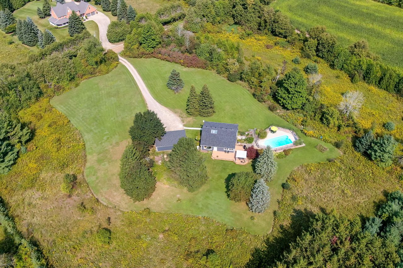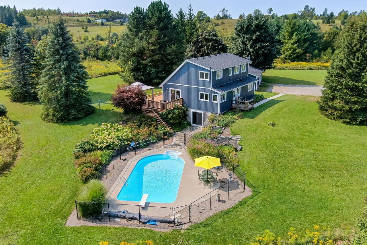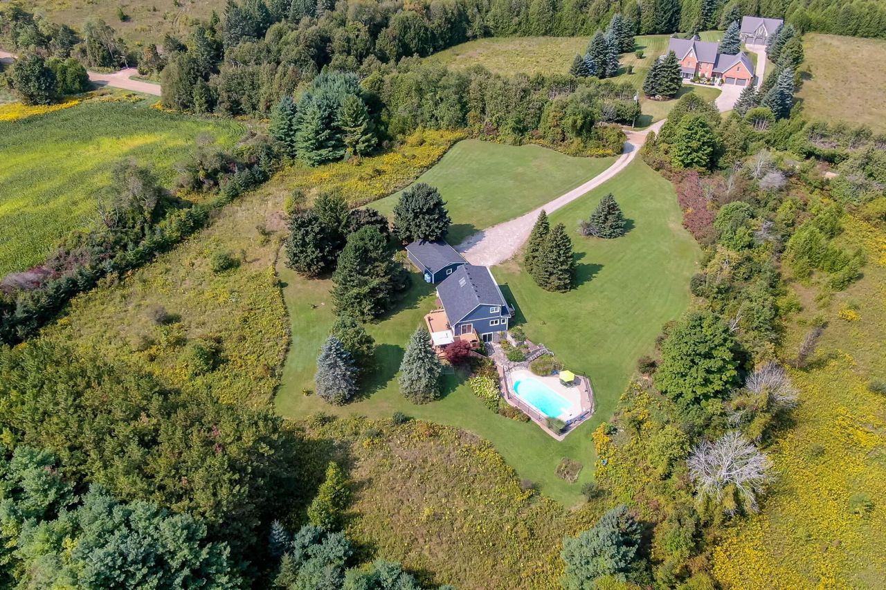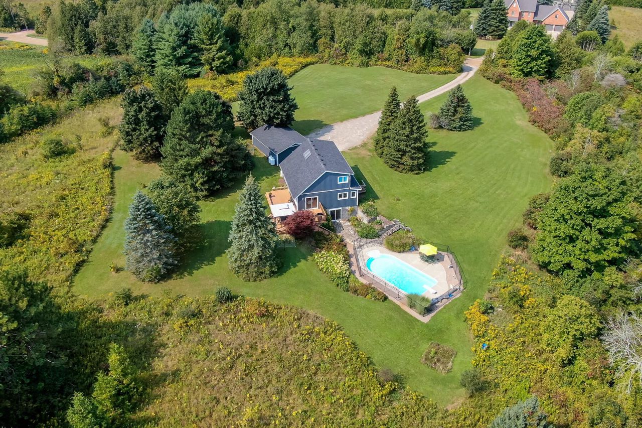 The perfect country package ... privacy, pool, 3-car detached garage, efficient geothermal system, character home all on 4+ beautiful acres. Prime location just minutes from the quaint village of Erin and close to Orangeville, Georgetown and Acton plus a perfect commuter location to Guelph. Tucked away on a quiet country road sits a pretty open concept home with vaulted ceilings, skylights, a main floor bedroom plus three additional bedrooms on the second floor, a walkout lower level ideal for in-laws with its own kitchenette, bedroom and bathroom. The main floor kitchen was updated in 2020 complete with stainless steel appliances and granite counters. There are country views from every window and loads of sunlight pouring in. The geothermal heat/cooling system makes for affordable utility costs. The investment has been made and you reap the rewards! You'll love the Generac generator too ... no worry living! Picture perfect grounds with numerous perennial gardens, tons of trees, a fenced-in pool area plus a large entertainer's deck. Room in the 3-car garage for your toys or workshop and there is plenty of parking for all your cars! 200 amp service, vinyl siding 2023, some new flooring and new shingles 2024. So much to offer and move-in ready!