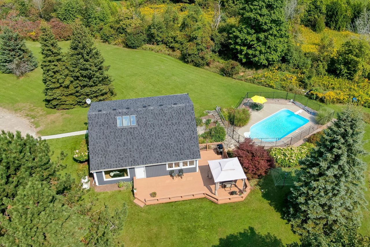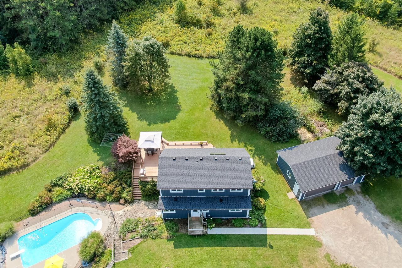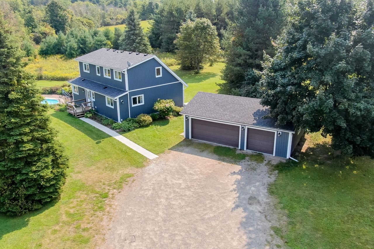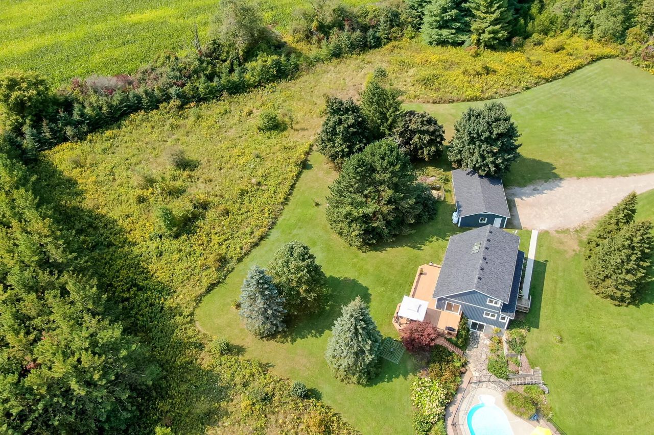 The perfect country package ... privacy, pool, 3-car detached garage, efficient geothermal system, character home all on 4+ beautiful acres. Prime location just minutes from the quaint village of Erin and close to Orangeville, Georgetown and Acton plus a perfect commuter location to Guelph. Tucked away on a quiet country road sits a pretty open concept home with vaulted ceilings, skylights, a main floor bedroom plus three additional bedrooms on the second floor, a walkout lower level ideal for in-laws with its own kitchenette, bedroom and bathroom. The main floor kitchen was updated in 2020 complete with stainless steel appliances and granite counters. There are country views from every window and loads of sunlight pouring in. The geothermal heat/cooling system makes for affordable utility costs. The investment has been made and you reap the rewards! You'll love the Generac generator too ... no worry living! Picture perfect grounds with numerous perennial gardens, tons of trees, a fenced-in pool area plus a large entertainer's deck. Room in the 3-car garage for your toys or workshop and there is plenty of parking for all your cars! 200 amp service, vinyl siding 2023, some new flooring and new shingles 2024. So much to offer and move-in ready!