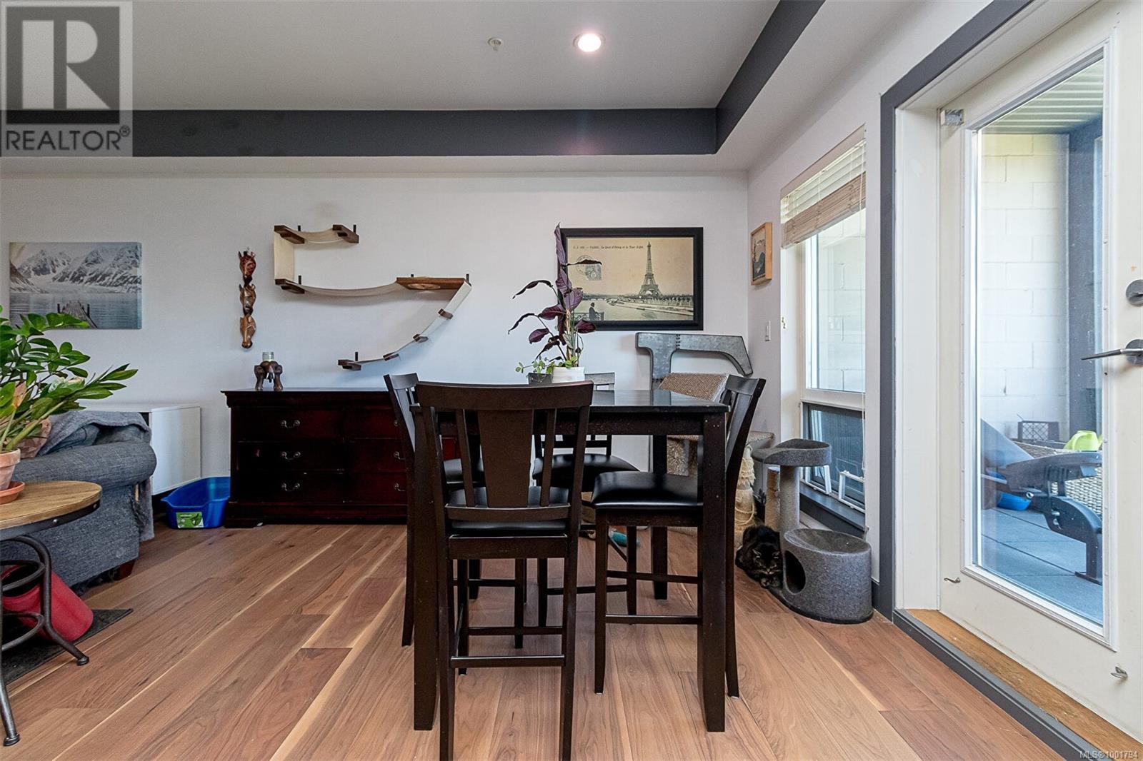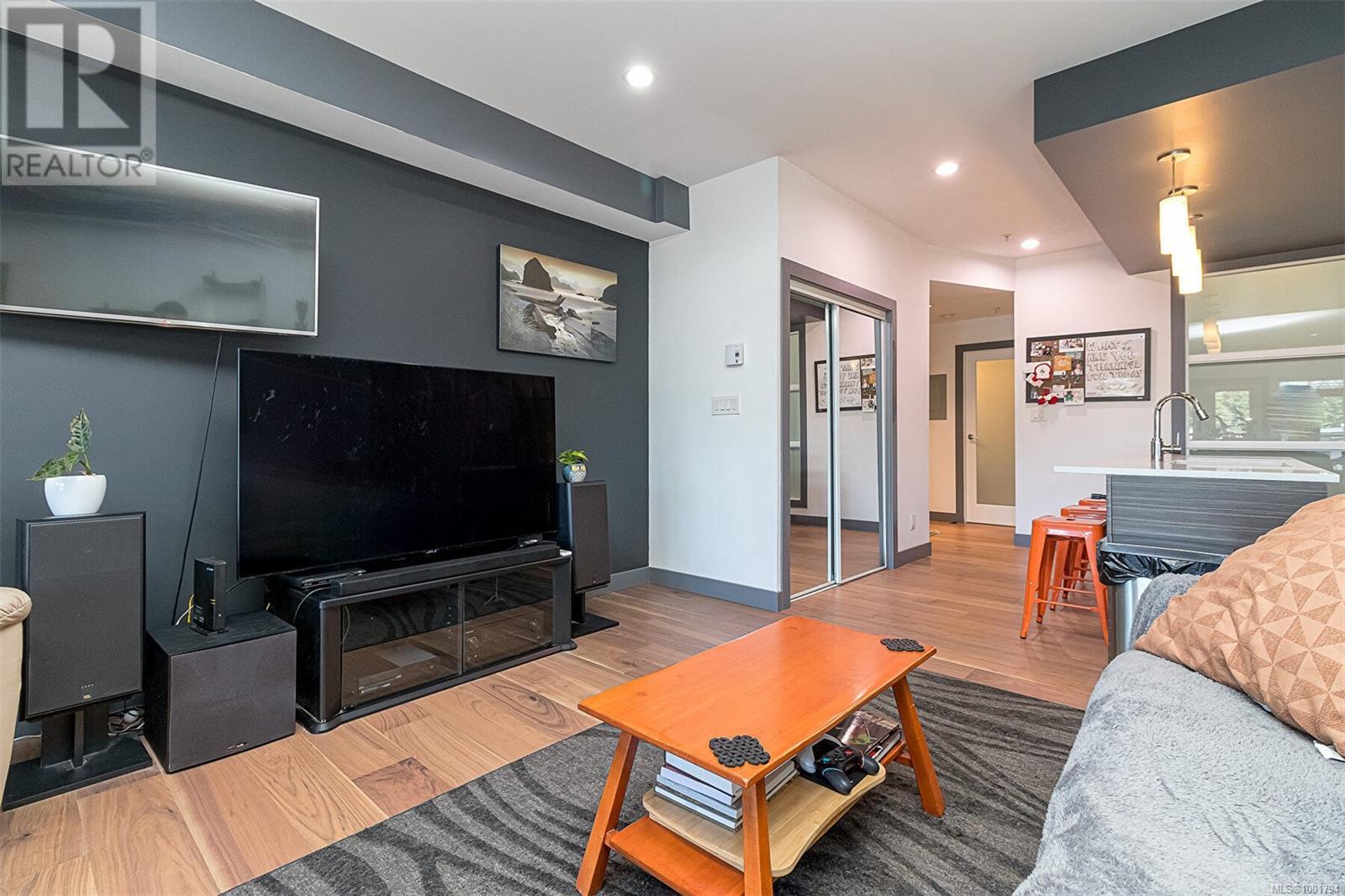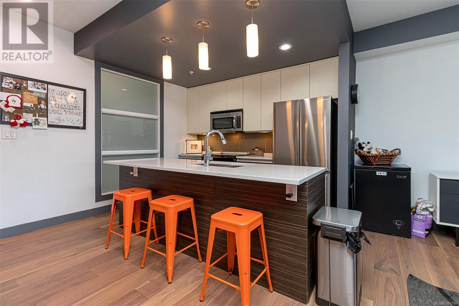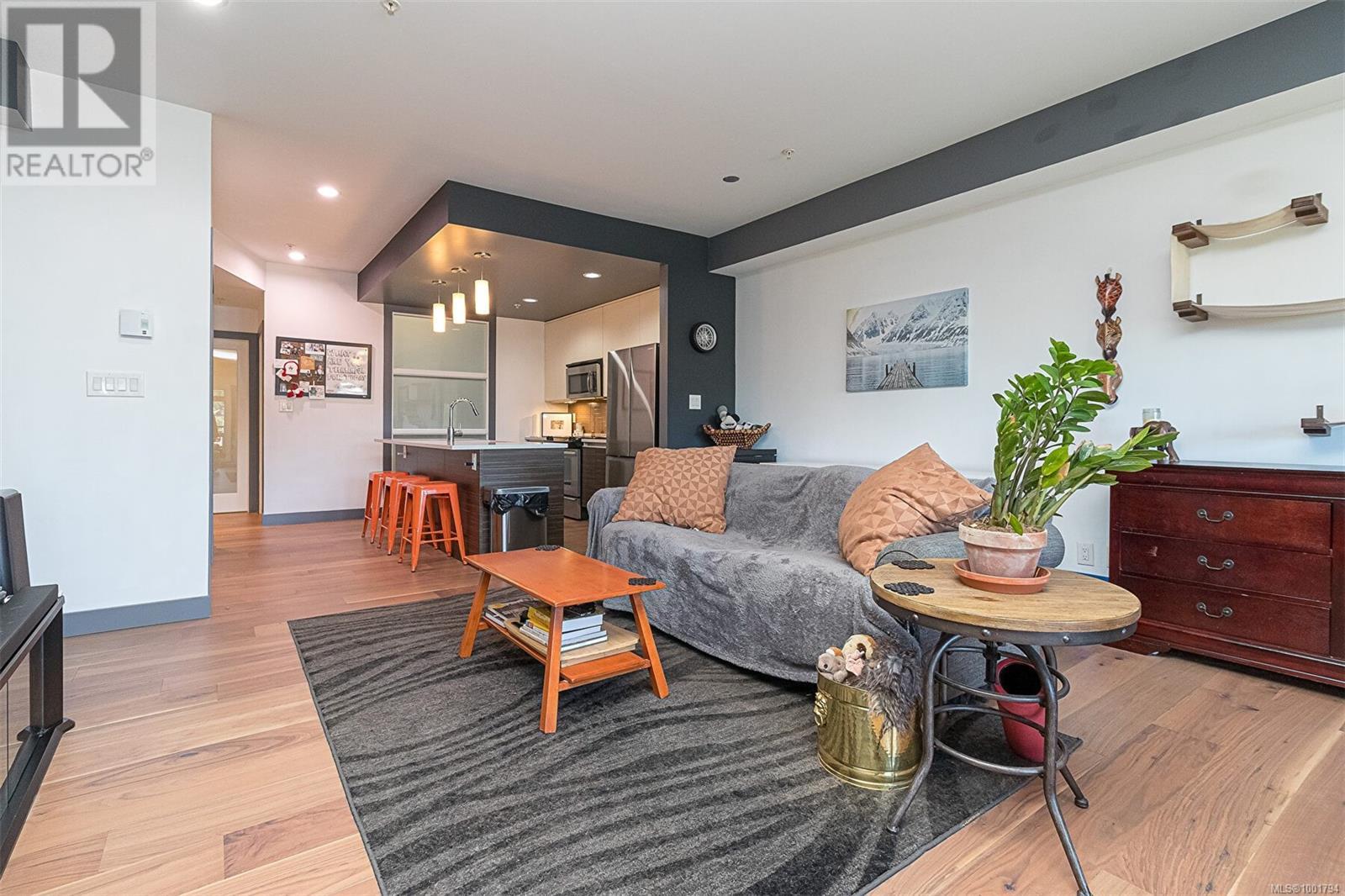 Did you think spacious 1-bedroom condos were a thing of the past? Well then, you are in for a treat!! Not only is this unit over 800 sq/ft, but it was also built this century. Conveniently located in a soon-to-be Esquimalt hub of activity, it is on major bus routes, close to shopping, and beautiful Gorge Park. The spacious floorplan means that you can entertain more than one guest at a time, and everyone can sit down to eat AT THE SAME TIME!! This unit is located at the back of the building, offering the convenience of access to Tillicum Rd without the noise. The large covered deck is a great spot for relaxing or BBQing all year round, and the wall of windows makes the home bright and welcoming. This unit comes complete with modern finishings, ample storage, no rental or age restrictions, and you can bring along a furry friend. Gated parking, in-suite laundry, newer appliances, and beautiful flooring make this a stupendous option in the next hub of Esquimalt. (id:61201)