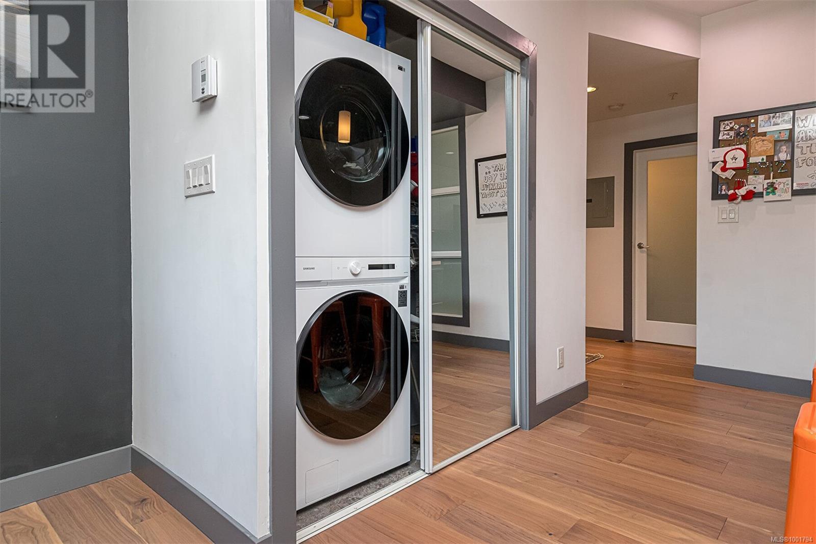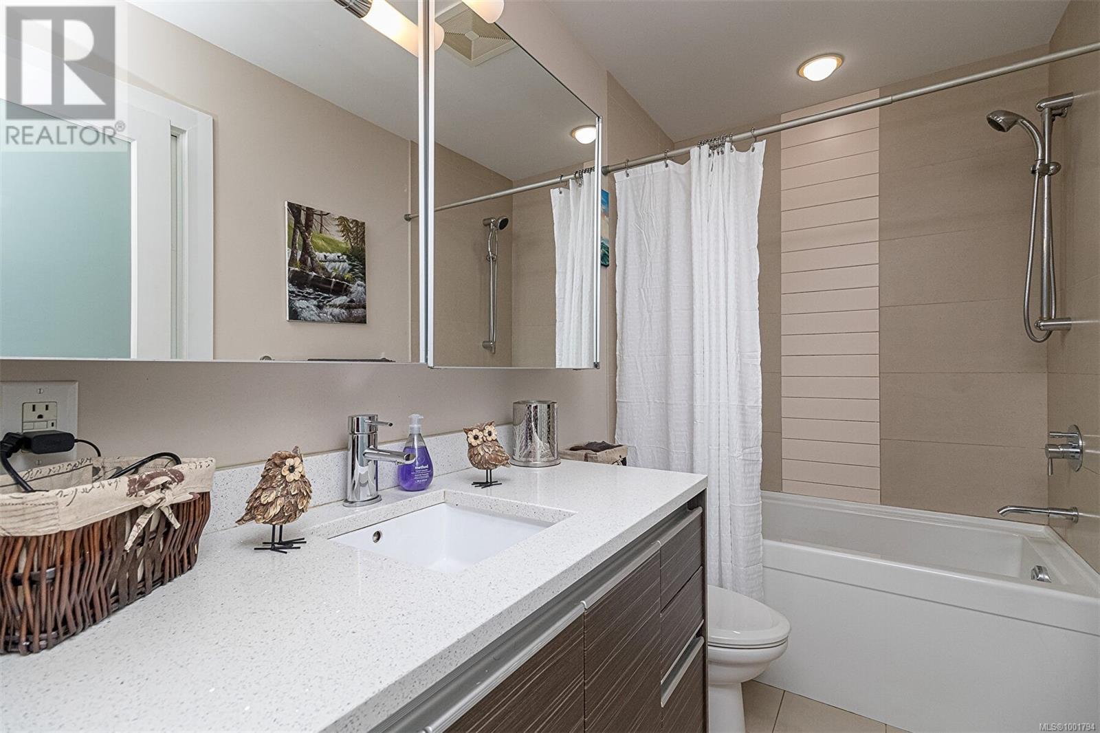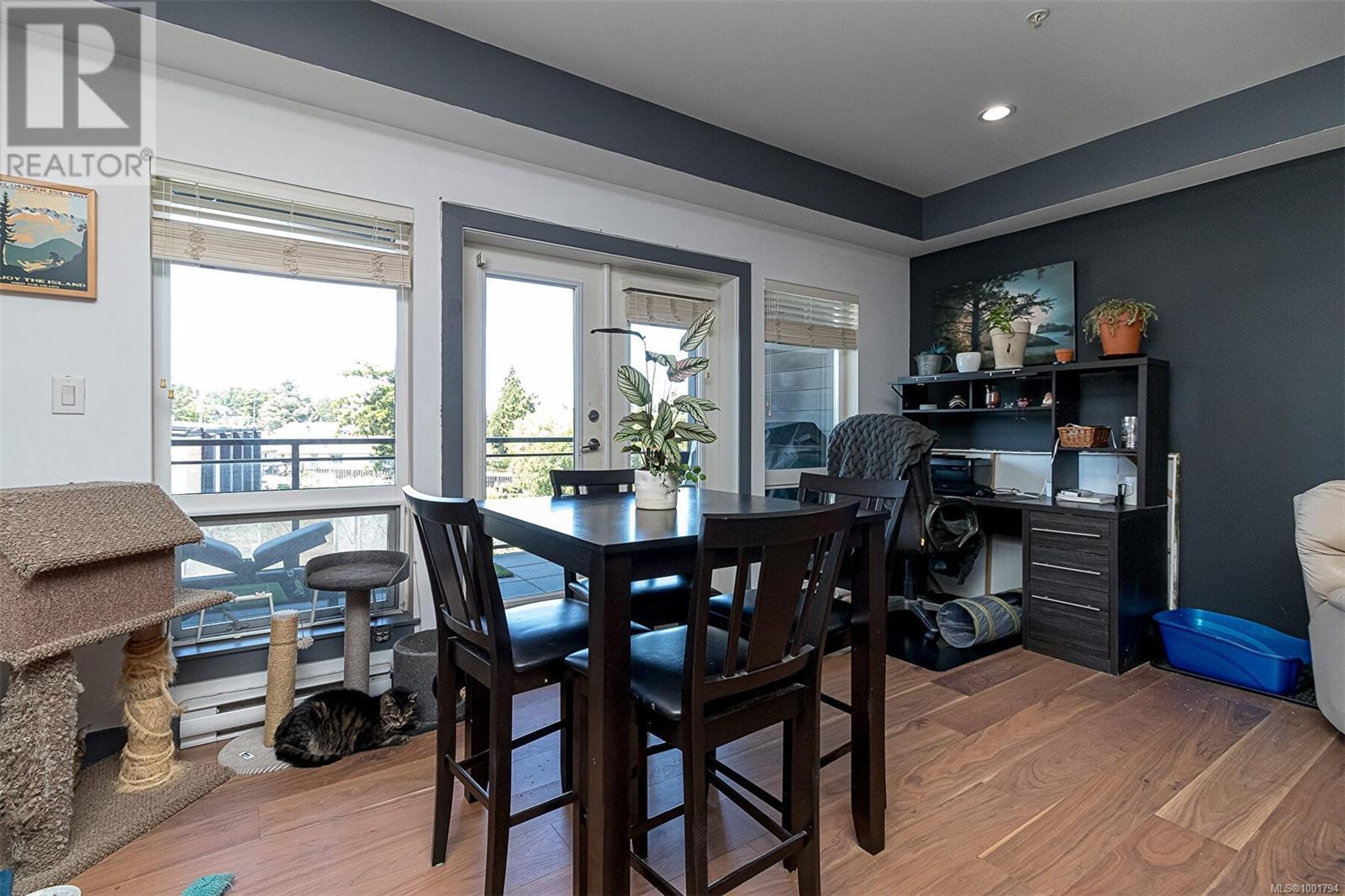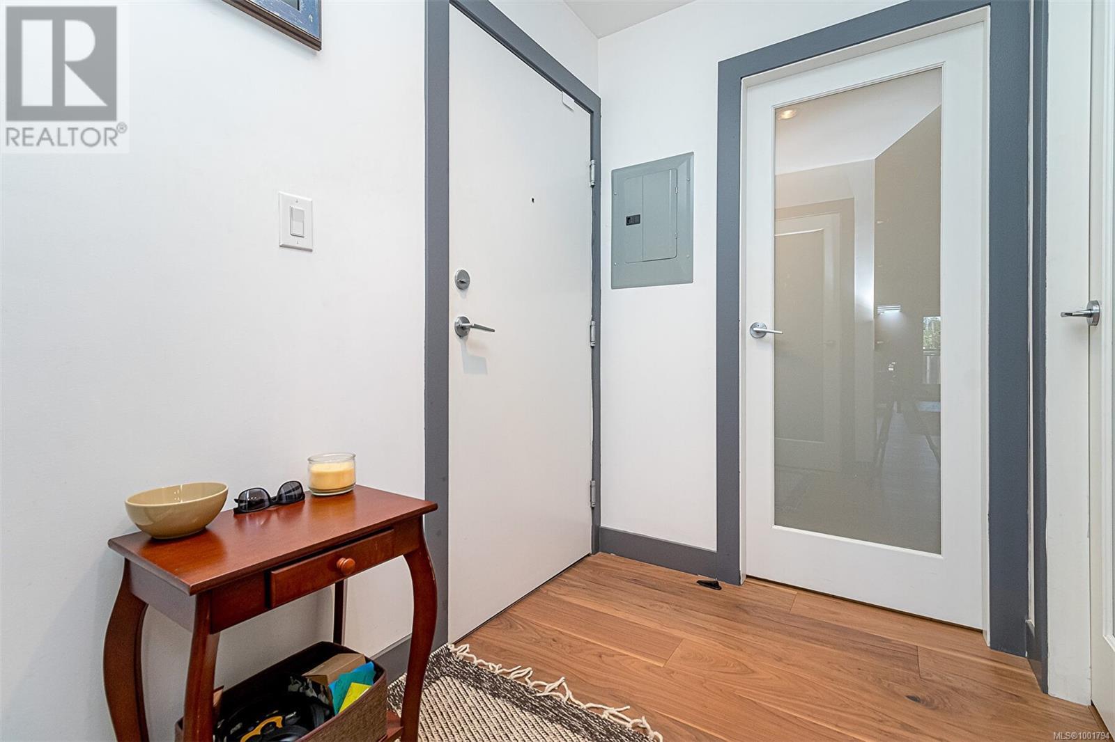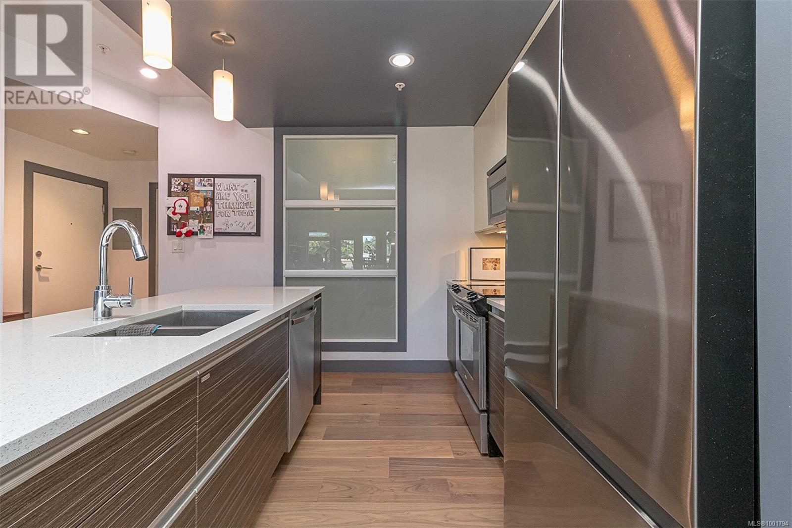 Did you think spacious 1-bedroom condos were a thing of the past? Well then, you are in for a treat!! Not only is this unit over 800 sq/ft, but it was also built this century. Conveniently located in a soon-to-be Esquimalt hub of activity, it is on major bus routes, close to shopping, and beautiful Gorge Park. The spacious floorplan means that you can entertain more than one guest at a time, and everyone can sit down to eat AT THE SAME TIME!! This unit is located at the back of the building, offering the convenience of access to Tillicum Rd without the noise. The large covered deck is a great spot for relaxing or BBQing all year round, and the wall of windows makes the home bright and welcoming. This unit comes complete with modern finishings, ample storage, no rental or age restrictions, and you can bring along a furry friend. Gated parking, in-suite laundry, newer appliances, and beautiful flooring make this a stupendous option in the next hub of Esquimalt. (id:61201)