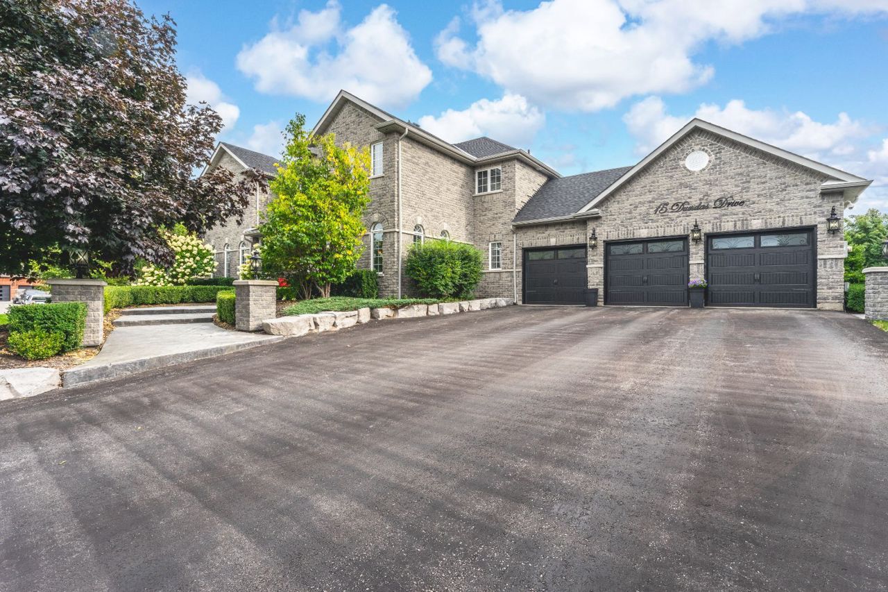 EXPANSIVE LUXURY HOME AMIDST A WEALTH OF LOCAL AMENITIES! Welcome to 15 Dundas Drive. This home blends country & city living, just 10 mins from Barrie in a tranquil, family-oriented enclave with easy Hwy 400 access. A spacious corner lot with stunning landscaping offers parking for over 15 cars & a 3-car garage with backyard access. A grand 2-story foyer leads to open-concept living spaces with hardwood floors, crown moulding & pot lights. The main floor features an office & formal dining room, while the kitchen boasts high-end s/s appliances & a patio walkout. Centred around a gas f/p, the living room is perfect for relaxation. The primary suite is a serene retreat with a w/i closet and luxurious 5pc ensuite. Additional bedrooms have their own ensuites & a jack-and-jill bathroom. The lower level offers laminate floors, a rec room, a games room & a bedroom. A stamped concrete patio with a custom pavilion creates an entertainer's paradise with ample pool or tennis court space.