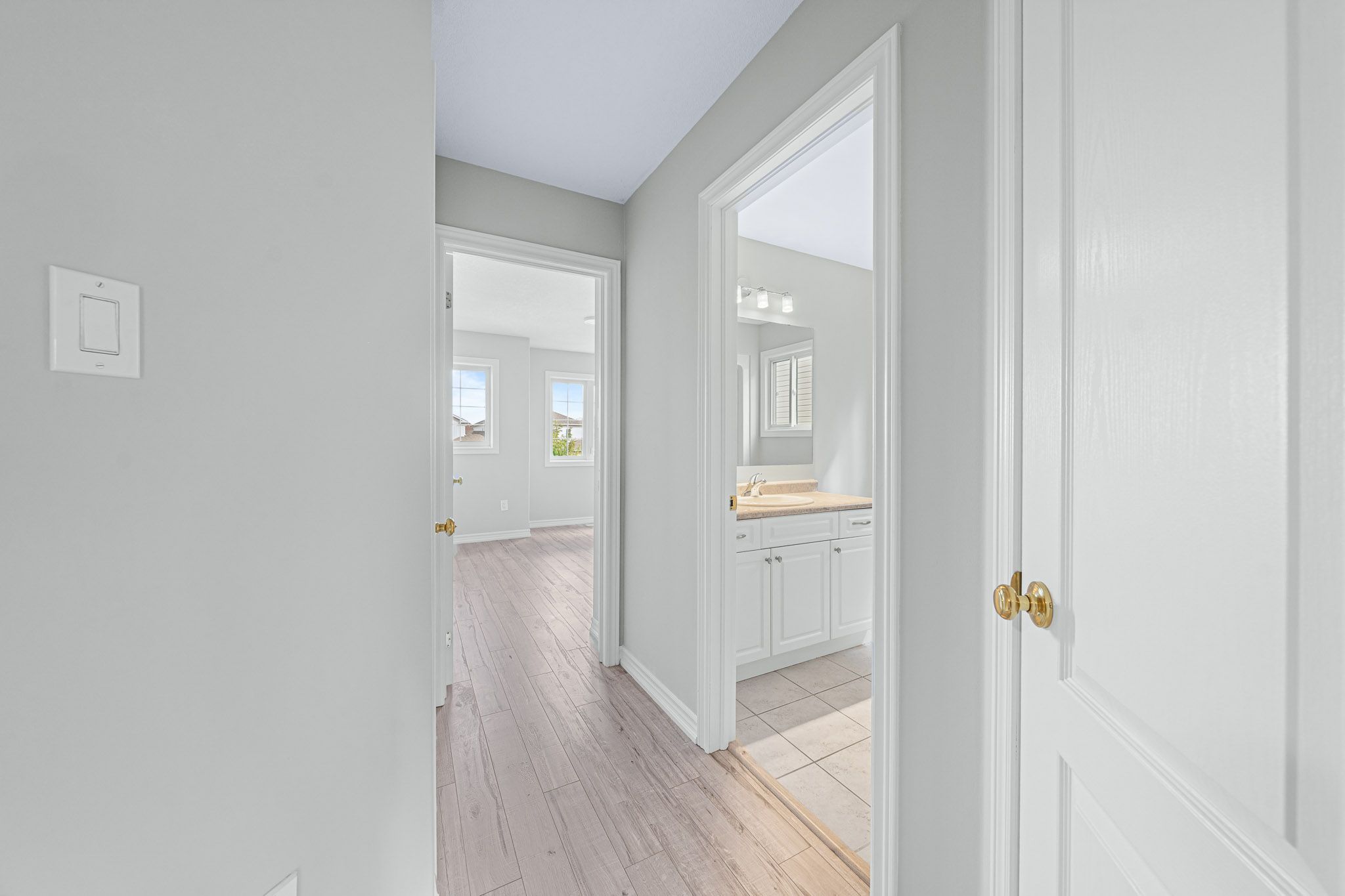 Full of natural light upgraded 3 bed/ 3 bath ready to move in carpet-free home in a quiet area of Angus. Over 2000 sq. ft. of finished freshly painted living space. Large bright foyer w/double closet. Open concept kitchen w/ceramic b/splash, brand new appliances & light fixtures. Huge breakfast area w/walk-out to stone patio & fenced yard w/large garden shed. Cozy living room o/looks b/yard. Updated stairs to 2nd fl w/spacious primary w/5pc ens & W/I closet, 2 other airy bdrms & 4pc bath. Finished bsmt w/large above ground windows, pot lights, lots of storage & laundry room. Inside access to spacious 12 x 20 sq. ft. garage. Close to parks, minutes to Base Borden, local grocery stores & restaurants. Short drive to best amenities of the city of Barrie & Hwy 400. List of upgrades attached to listing.