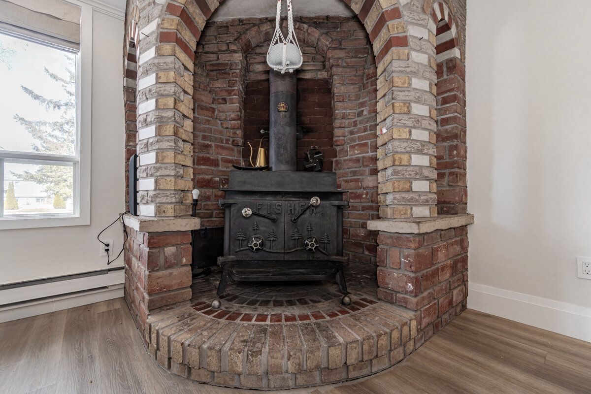 Pot Lights Large Window Wood Stove