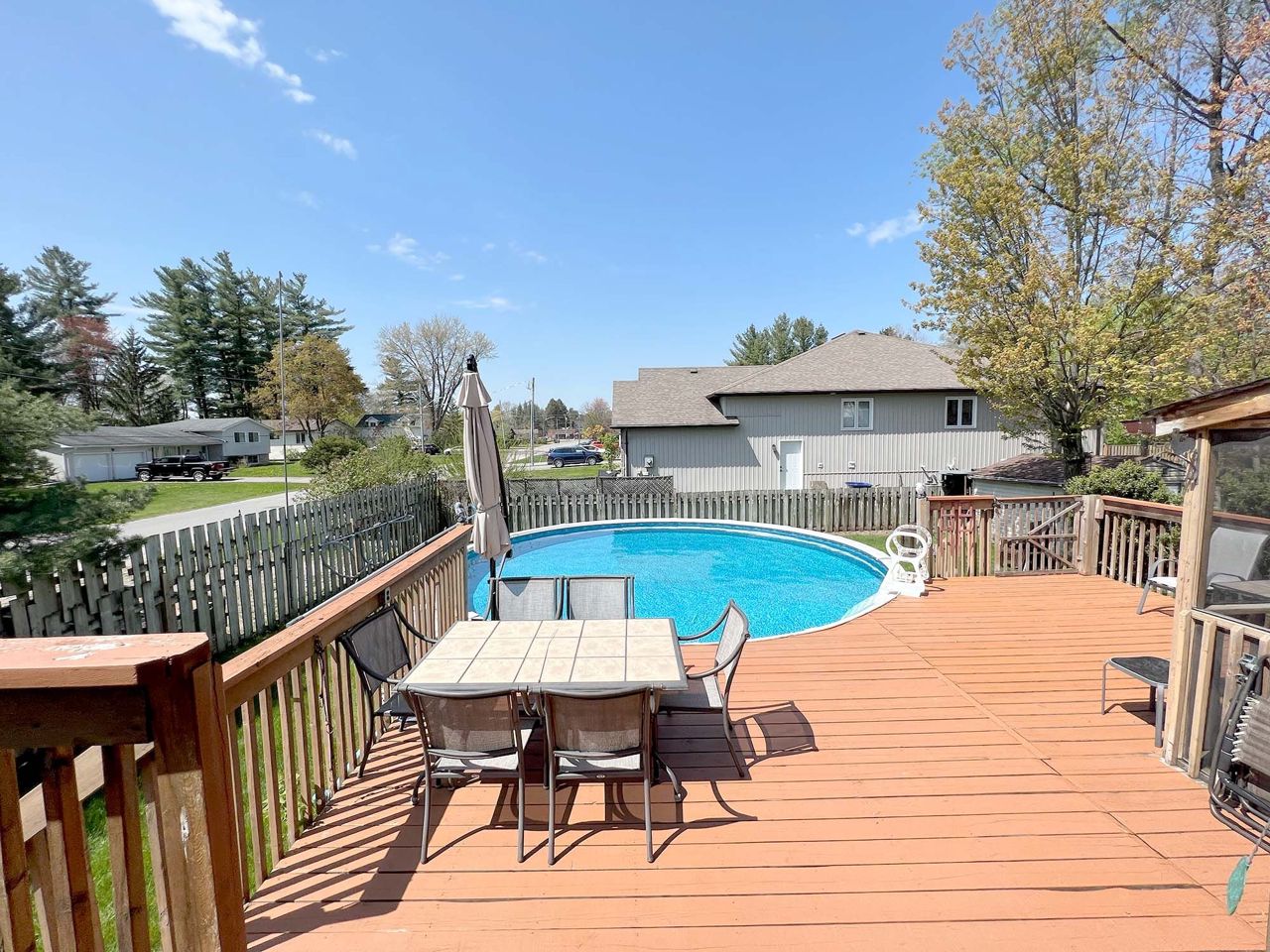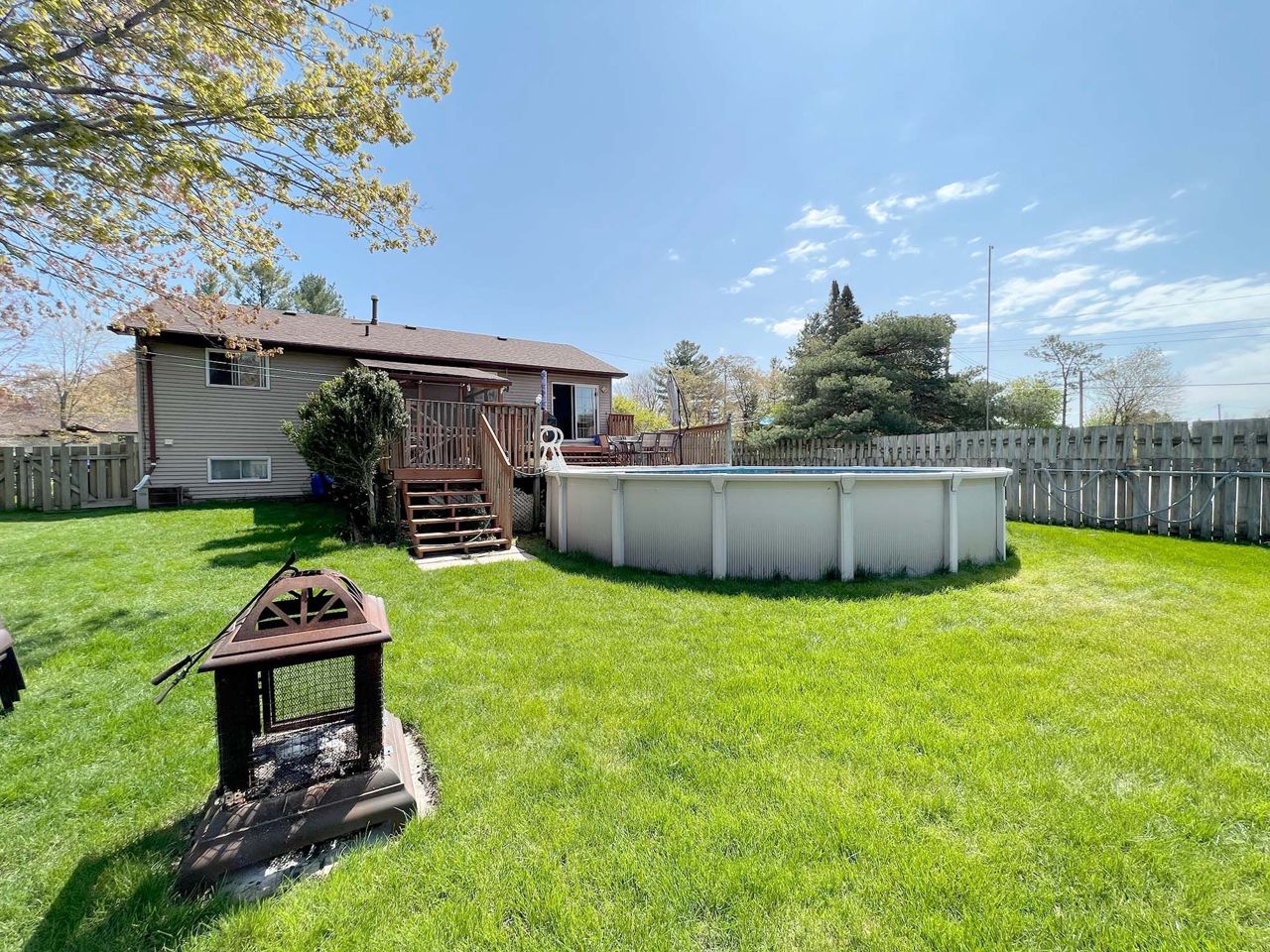 *Great Family Home* This raised bungalow has over 2,000 sq ft of finished living space offering 3+1 bedrooms & 2 full bathrooms. The bright no carpet main floor features a large living room open to the large eat-in kitchen with lots of cabinets & counter space, 3 bedrooms & 1 full bathroom. The fully finished basement has a massive rec room with three sided gas fireplace & built-in shelving, bedroom, full bathroom with standup shower, workshop & laundry/utility room. This home is sitting on a beautiful mature corner lot & is fully fenced with a massive multi-level deck, above ground pool, screened detached sunroom area, & shed. This home screams pride of ownership & is a turn-key property just waiting for new owners to move-in & enjoy. Working sand point well and water system allows watering of lawn at any time and is not using the town supply. Keeps the lawn green and pool filled at very low cost.